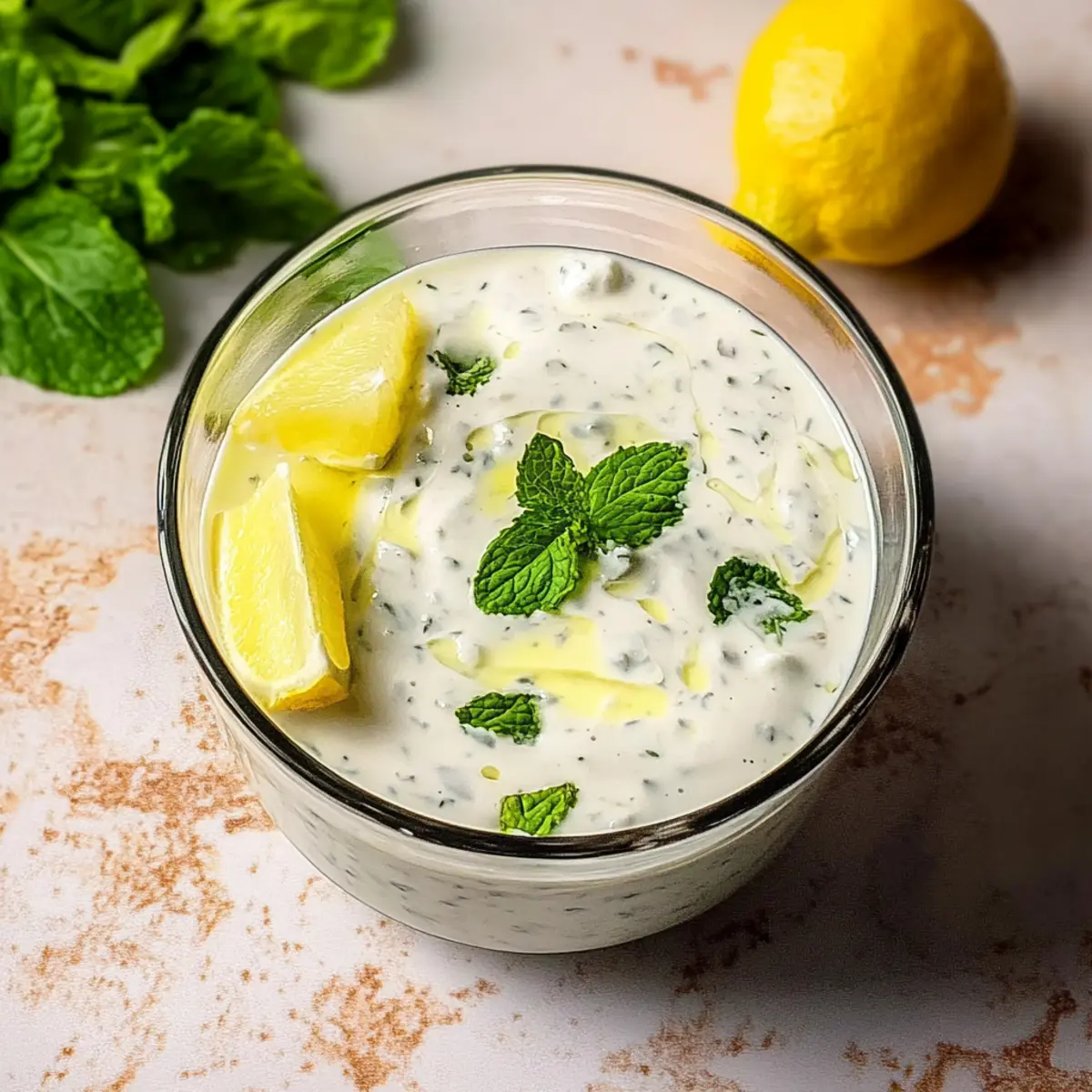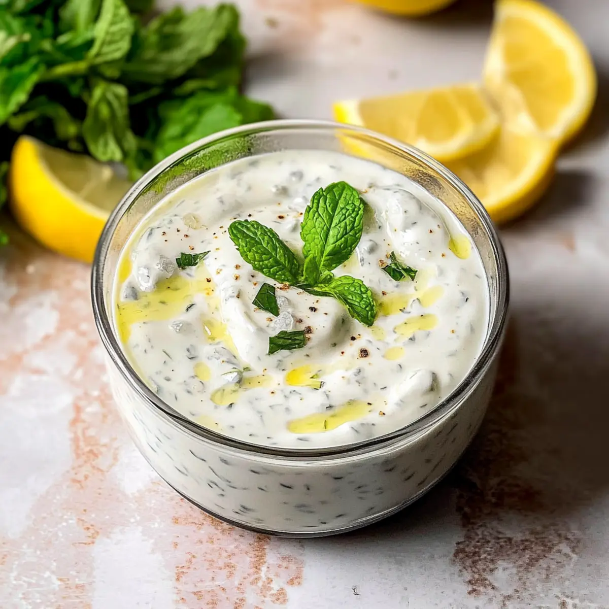 As I whisk together the bright and zesty ingredients for this dressing, my kitchen fills with a fresh aroma that instantly transports me to a sunlit Mediterranean terrace. This 5-Minute Greek Yogurt Dressing is not only a breeze to make, but it also transforms any salad, grain bowl, or roasted veggie dish into a delightful symphony of flavors. Packed with the goodness of Greek yogurt, it offers a healthier, low-fat alternative to those overly creamy store-bought options. Plus, you can whip it up in mere minutes, perfect for those hectic weeknight dinners when you need something nourishing yet quick. Curious about how this quick concoction can brighten your meals? Let’s dive in! Why Choose This Greek Yogurt Dressing? Quick and Easy: This zesty dressing can be ready in just 5 minutes, making it a fantastic option for those busy days or last-minute meal preps. Healthier Choice: Enjoy a guilt-free alternative to traditional dressings with the creamy goodness of Greek yogurt, which is lower in fat and packed with protein. Versatile Use: Perfectly complements not just salads, but also acts as a dip for fresh veggies or a marinade for grilled chicken, enhancing your meals effortlessly. Vibrant Flavors: You’ll love the fresh burst of lemon and herbs like mint and oregano, which transform the simplest of dishes. Experience the Mediterranean vibe with each bite! Storage Friendly: Make a batch and store it in the fridge for up to five days—convenience at its best! When you’re ready to use, just give it a quick shake. Try it today over a bed of mixed greens or paired with your favorite grilled protein, and don’t forget to explore other delicious options like our Caramel Banana Yogurt for a perfectly balanced meal! 5-Minute Greek Yogurt Dressing Ingredients • Dive into the freshness with homemade goodness! For the Base Greek Yogurt – Provides creaminess and tanginess; substitute with unsweetened natural coconut yogurt for a dairy-free option. Lemon Juice – Adds a refreshing acidity; approximately 1 lemon yields about 45 mL of juice for this dressing. Olive Oil (Extra Virgin) – Contributes richness and smooth texture; essential for balancing the tanginess of yogurt. For the Flavor Dried Oregano – Offers a savory, herbaceous touch; fresh oregano provides an even more vibrant flavor. Sea Salt Flakes – Enhances the overall taste; feel free to adjust according to preference. Fresh Mint (finely chopped) – Adds a refreshing note; feel free to substitute with basil or parsley if desired. Garlic (minced) – Provides aromatic depth; omit for a low FODMAP version if necessary. This 5-Minute Greek Yogurt Dressing will elevate your salads and dishes into a realm of flavor you won’t want to miss! Step‑by‑Step Instructions for 5-Minute Greek Yogurt Dressing Step 1: Combine Ingredients In a medium-sized mixing bowl, add 1 cup of Greek yogurt, the juice of one freshly squeezed lemon, and 2 tablespoons of extra virgin olive oil. Along with these, sprinkle in 1 teaspoon of dried oregano, a pinch of sea salt, 2 tablespoons of finely chopped fresh mint, and 1 minced garlic clove. This combination creates a delightful base for your 5-Minute Greek Yogurt Dressing. Step 2: Whisk Together Using a whisk, start blending the ingredients gently to avoid splashing lemon juice. Begin by stirring slowly for about 30 seconds, allowing the yogurt to absorb the flavors. Gradually increase your whisking speed for another 1–2 minutes, until the mixture becomes smooth and creamy, with no lumps remaining. The dressing should have a luscious consistency that’s invitingly thick. Step 3: Taste and Adjust Once your dressing is creamy and well-mixed, pause to taste it. If you’d like a sharper flavor, consider adding a little more lemon juice or salt to suit your palate. For added sweetness, you can incorporate a touch of honey or maple syrup. Give it a quick whisk again to incorporate any adjustments, ensuring your 5-Minute Greek Yogurt Dressing is just right. Step 4: Serve or Store Now that your dressing is perfectly blended and seasoned, you can use it immediately over your favorite salads, grain bowls, or as a dip. If you’re saving some for later, carefully transfer it into an airtight glass container. This dressing can be stored in the fridge for up to 5 days; just remember to give it a vigorous shake or a quick whisk before each use to refresh the texture. Tips for the Best 5-Minute Greek Yogurt Dressing Room Temperature Ingredients: Ensure all ingredients are at room temperature for easier blending and a smoother texture in your 5-Minute Greek Yogurt Dressing. Finely Chopped Herbs: Chop fresh herbs like mint and oregano very finely to distribute their flavor evenly through the dressing and elevate each bite. Prevent Separation: If your dressing separates during storage, simply give it a shake or a quick whisk before use to restore its creamy consistency. Glass Storage: Always store your dressing in a glass container to avoid any chemical leaching that can occur with plastics. Taste Test: Don’t forget to taste and adjust the seasoning after whisking! A bit more lemon or salt can make all the difference in your 5-Minute Greek Yogurt Dressing. What to Serve with Creamy Greek Yogurt Salad Dressing Elevate your meals by exploring delightful pairings that enhance the fresh, zesty flavors. Mixed Green Salad: Toss this dressing over crisp greens for a refreshing crunch and a burst of flavor that brings all the ingredients to life. The creamy texture beautifully clings to the leaves! Grilled Chicken Skewers: Use this dressing as a marinade or dip alongside skewered chicken for a delightful Mediterranean twist. The garlic and herbs in the dressing complement the smokiness of grilled meat perfectly. Roasted Vegetables: Drizzle over a medley of roasted veggies for added richness and gourmet flair. The creamy dressing enhances the caramelized flavors, making each bite even more satisfying. Quinoa Bowls: Mix th