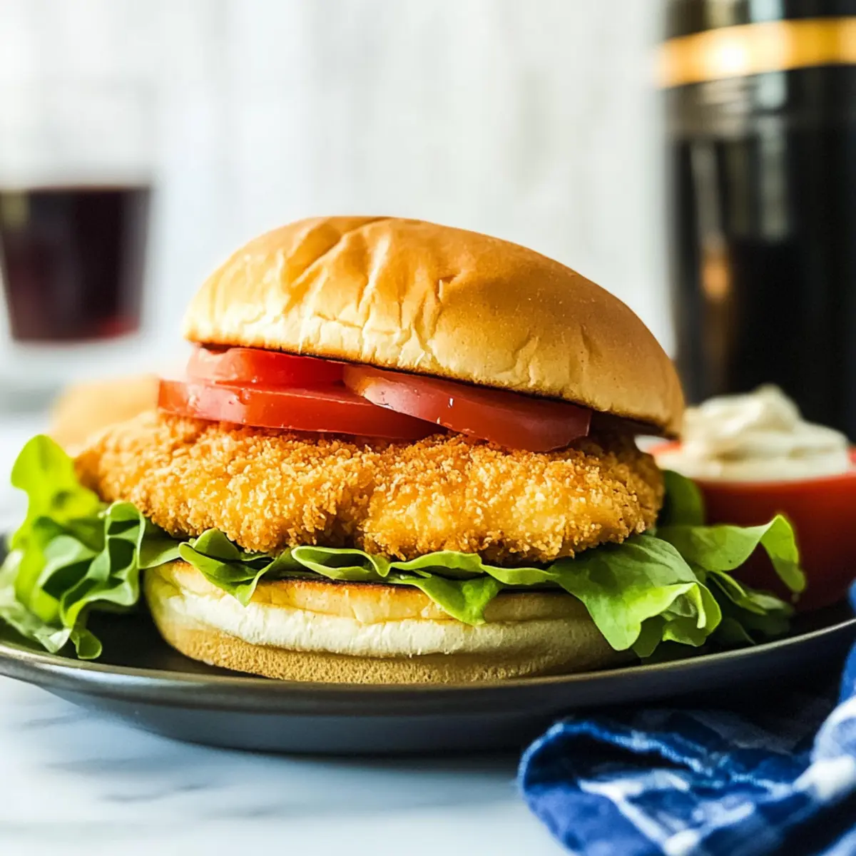 As I rummaged through my fridge, searching for inspiration, I uncovered a few juicy chicken thighs and a bag of panko breadcrumbs—just waiting to be transformed. That’s when the idea for my Crispy Air Fryer Chicken Sandwich sprang to life! This recipe not only gives a delightful crunch but offers a healthier alternative to fast food favorites. In just 25 minutes, you’ll have a stunning meal that the whole family will rave about. Even better, the customization possibilities are endless! Whether you prefer classic lettuce and tomato or like to spice things up with jalapeños and avocado, you can create a sandwich that suits every palate. Curious about how to make this mouthwatering dish? Let’s dive in! Why Choose This Air Fryer Chicken Sandwich? Healthier Alternative: Enjoy a crispy chicken sandwich without the guilt! This recipe offers a satisfying crunch made with panko, providing a healthier take on fast food. Quick & Easy: Whip it up in just 25 minutes, making it perfect for busy weeknights or unexpected guests. Family-Friendly: Everyone will love customizing their sandwiches with various toppings, from classic lettuce and tomato to unique flavors like spicy mayo—adaptable for every taste! Versatile Recipes: Pair your sandwich with delicious sides like Air Fryer Broccoli or homemade sweet potato fries for a complete and satisfying meal. Flavor Packed: With the enticing blend of seasonings and juicy chicken thighs, each bite is a burst of flavor that keeps you coming back for more. Enjoy a homemade meal that rivals your favorite takeout! Air Fryer Chicken Sandwich Ingredients • Prepare your kitchen for a flavor explosion with these essential ingredients! For the Chicken Boneless Skinless Chicken Thighs – Offers juicy, flavorful meat; chicken breasts can be a leaner substitute. Brine (water and kosher salt) – Ensures the chicken remains juicy and packed with flavor; adjust brining time for taste preference. For the Breading Flour – Acts as the base for the coating; feel free to swap in gluten-free flour if needed. Egg – Binds the delicious coating to the chicken; replace with a flax egg for a vegan option. Milk – Adds moisture to your egg wash; any plant-based milk works great, too. Toasted Panko – Provides that amazing crunch; either toast your own or buy pre-toasted. For the Assembly Brioche Buns – Soft and slightly sweet, perfect for sandwiching your crispy chicken; any burger bun can work in a pinch. Seasoning Blend – A mix of garlic powder, onion powder, paprika, kosher salt, oregano, and black pepper—customize for your unique taste! Now that you have all the delicious elements, get ready to impress your family with this amazing Air Fryer Chicken Sandwich! Step‑by‑Step Instructions for Air Fryer Chicken Sandwich Step 1: Prepare the Brine Start by dissolving kosher salt in a pot of hot water, ensuring all the salt is fully dissolved. Once dissolved, allow the brine to cool to room temperature, then submerge your boneless, skinless chicken thighs in it for anywhere from 30 minutes to overnight. This process enriches the chicken’s flavor and keeps it juicy, setting the foundation for your Air Fryer Chicken Sandwich. Step 2: Toast the Panko While the chicken brines, prepare your crunchy coating. In a small bowl, mix toasted panko with melted butter until the breadcrumbs are thoroughly coated. Preheat your air fryer to 400°F and transfer the panko mixture into the basket, cooking for 2-3 minutes until the panko turns a glorious golden brown. Keep an eye on it to prevent burning; this step adds an irresistible crunch to your sandwich. Step 3: Set Up the Breading Station Now it’s time to create a breading station for your chicken. Set out three shallow dishes: one filled with flour, another with a whisked mixture of egg and milk, and the last with your freshly toasted panko. This organized setup will make breading your chicken thighs for the Air Fryer Chicken Sandwich straightforward and efficient—get ready to get your hands a little messy! Step 4: Season the Chicken After brining, remove the chicken thighs and pat them dry to encourage the coating to stick. Drizzle the thighs with olive oil and sprinkle them generously with your seasoning blend, which should include garlic powder, onion powder, paprika, kosher salt, oregano, and black pepper. This step enhances the chicken’s flavor, turning your sandwich into a memorable delight. Step 5: Bread the Chicken It’s time to bread your chicken thighs! Start by dipping each piece into the flour, coating it evenly. Next, transfer it into the egg wash, allowing the excess to drip off before finally pressing it into the toasted panko. Ensure the chicken is well-coated, then place the breaded thighs in the air fryer basket in a single layer to allow for proper cooking and crispiness. Step 6: Air Fry the Chicken With the air fryer preheated, cook the breaded chicken at 400°F for 8-10 minutes, flipping halfway through the cooking time. Use a meat thermometer to ensure the chicken reaches an internal temperature of 165°F. As they cook, enjoy the enticing aroma wafting through your kitchen, promising a delicious Air Fryer Chicken Sandwich soon! Step 7: Assemble the Sandwiches Once the chicken is perfectly cooked, you’re ready to assemble your sandwiches! Lightly toast the brioche buns in the air fryer for about 2 minutes if you like. Place a crunchy chicken thigh onto the bottom half of each bun, and add your favorite toppings such as lettuce, tomato, mayo, and pickles. Top with the other half of the bun, and your delightful Air Fryer Chicken Sandwich is ready to be served! Expert Tips for the Best Air Fryer Chicken Sandwich Preheating is Key: Always preheat your air fryer to ensure a crispy outside and tender inside for your chicken. It makes a world of difference! Don’t Overcrowd: Give each breaded piece space in the basket to allow even cooking. Overcrowding can lead to uneven results for your Air Fry