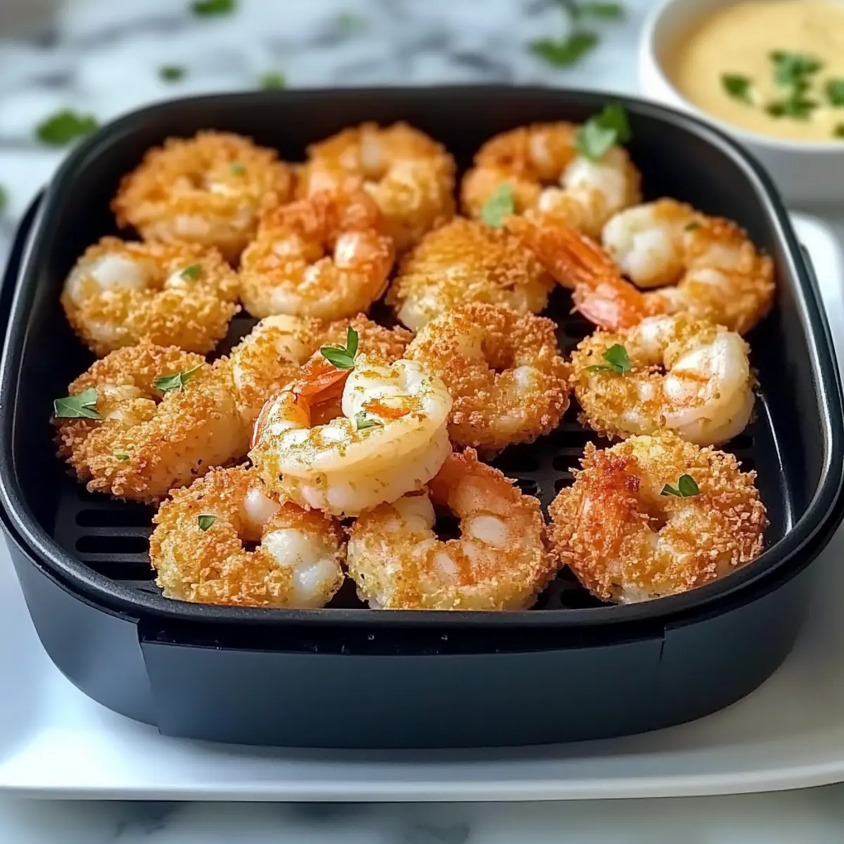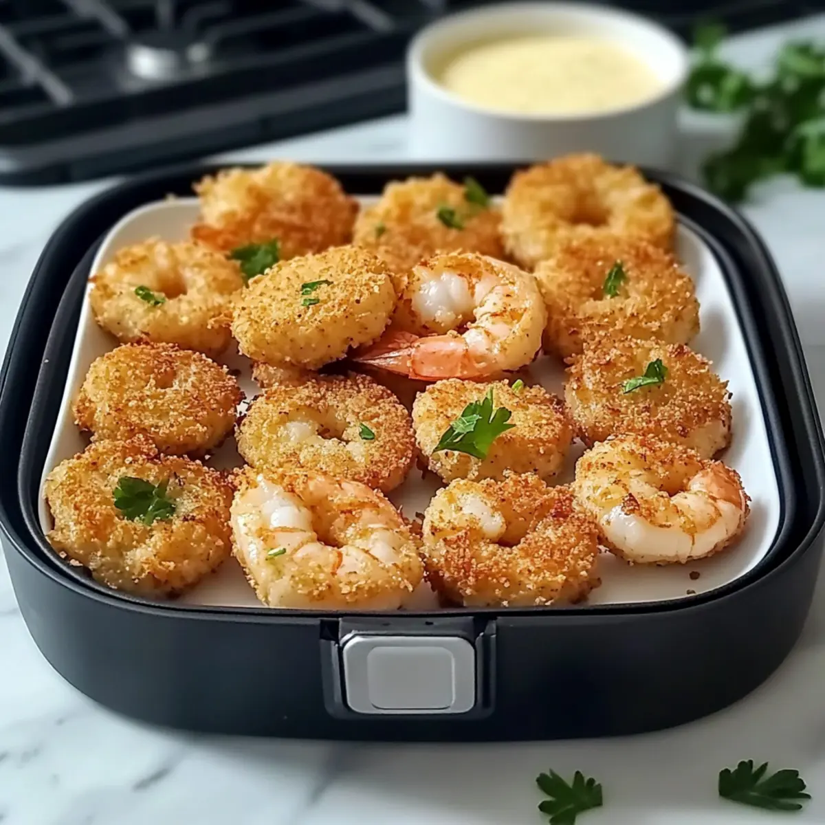 The enticing scent of the sea mingles with a hint of spices in my kitchen, instantly lifting my spirits. Today, I’m thrilled to share my recipe for Crispy Air Fryer Fried Shrimp Cakes, a delightful dish that brings the charm of a gourmet meal right to your dinner table. What I love most about these shrimp cakes is how quickly they come together—perfect for those evenings when you crave something special without the fuss. Plus, they are incredibly versatile, allowing you to customize the flavors to suit your taste, whether you prefer a zesty kick or a milder experience. With their golden-brown crispiness and tender shrimp filling, these cakes are bound to impress any crowd. Curious about what secret ingredient turns this simple seafood into a beloved dish? Let’s dive in! Why Will You Love These Shrimp Cakes? Quick Preparation: These crispy delights come together in a matter of minutes, making them perfect for busy weeknights or last-minute gatherings. Versatile Flavor Options: Customize easily by adding your favorite spices or herbs, like mixing in fresh cilantro or a dash of cayenne for some heat. Guilt-Free Enjoyment: With the air fryer method, you achieve that satisfying crunch without the extra oil, thus indulging in flavor without the guilt. Crowd-Pleasing Treat: Impress friends and family at your next dinner or gathering. Pair these shrimp cakes with a zesty coleslaw or flavorful garlic butter rice for an unforgettable meal! Whether you’re a seafood lover or just seeking to switch up your dinner routine, these shrimp cakes are bound to become a repeat favorite. Don’t forget to check out my featured sides like Homemade Fried Rice to round out your meal! Air Fryer Fried Shrimp Ingredients For the Shrimp Cakes • Frozen Shrimp (large, thawed) – Ensure the shrimp are thawed and patted dry to avoid excess moisture. • All-Purpose Flour – Binds the cakes together for a perfect texture; substitute with gluten-free flour for a gluten-free option. • Old Bay Seasoning – Adds a quintessential depth of flavor; adjust according to spice preference. • Garlic Powder – Provides a savory kick that complements shrimp beautifully. • Dried Parsley – Adds an aromatic touch; fresh parsley can be used for enhanced flavor. • Black Pepper – Enhances overall taste; adjust according to heat preference. • Egg (beaten) – Acts as a binding agent; ground flaxseed mixed with water can serve as a vegan alternative. • Water – Helps achieve the right consistency in the mixture. • Italian Breadcrumbs – Gives the shrimp cakes a crunchy exterior; substitute with gluten-free breadcrumbs for a gluten-free option. • Cooking Spray – Ensures a crisp finish without adding unnecessary oils. Step‑by‑Step Instructions for Crispy Air Fryer Fried Shrimp Cakes Step 1: Prepare the Mixture In a large mixing bowl, combine all-purpose flour, Old Bay seasoning, garlic powder, dried parsley, and black pepper. Stir them together until thoroughly blended. This dry mixture will provide the flavor base for your Crispy Air Fryer Fried Shrimp Cakes, so make sure it’s well incorporated before moving on. Step 2: Add Wet Ingredients Pour in the beaten egg and water into the dry mixture, gently mixing until everything is evenly combined. The mixture should be sticky yet cohesive, making it easy to form patties later. Take your time here—this step is crucial to ensure the shrimp cakes hold together nicely when cooked. Step 3: Fold in Shrimp and Breadcrumbs Now it’s time to fold in your thawed shrimp and Italian breadcrumbs. Use a spatula to combine until the shrimp are well coated, but avoid overmixing to keep a light texture. You want that appealing chunky feel in your Crispy Air Fryer Fried Shrimp Cakes, so be gentle during this step. Step 4: Shape the Patties With your mixture ready, start shaping it into uniform patties, about the size of your palm. Aim for consistency in thickness to ensure even cooking. Lay them on a tray or plate, making sure they remain slightly apart as you form them, which will help when it’s time to air fry. Step 5: Preheat the Air Fryer Preheat your air fryer to 375°F for about 3 to 5 minutes. This step is key to achieving that perfect crispy exterior. While it preheats, lightly spray the basket with cooking spray to prevent the shrimp cakes from sticking during the cooking process. Step 6: Cook the Shrimp Cakes Once the air fryer is preheated, place the patties in a single layer in the basket, ensuring they don’t touch. Cook for 8-10 minutes, flipping them halfway through the cooking time. Watch closely for a golden-brown color; this indicates they are beautifully crisp and ready to enjoy. Step 7: Serve and Enjoy Once cooked, carefully remove your Crispy Air Fryer Fried Shrimp Cakes from the basket. Serve them immediately for the best texture, perhaps with a zesty dipping sauce on the side. These delightful treats are perfect for weeknight dinners or as a crowd-pleasing appetizer at any gathering. Air Fryer Fried Shrimp Variations Feel free to explore your creativity with these shrimp cakes, turning them into your personalized culinary masterpiece! Gluten-Free: Use gluten-free flour and breadcrumbs to enjoy these cakes without dietary restrictions. Add Spiciness: Mix in cayenne pepper or a splash of your favorite hot sauce for a delightful kick that wakes up the taste buds. Increase Herb Flavor: Toss in fresh herbs like dill or cilantro for an aromatic twist, giving each bite a refreshing burst of flavor. Coconut Crunch: Substitute panko breadcrumbs with shredded coconut for a tropical vibe that adds sweetness and texture to each bite. Add Vegetables: Incorporate finely chopped peppers or green onions into the mix for an extra crunch and a pop of color. Seafood Medley: Combine in a bit of crab meat or scallops for a luxurious experience that elevates the flavor profile of the cakes. Baking Option: For those who prefer, bake at 375°F for 15-20 minutes inste