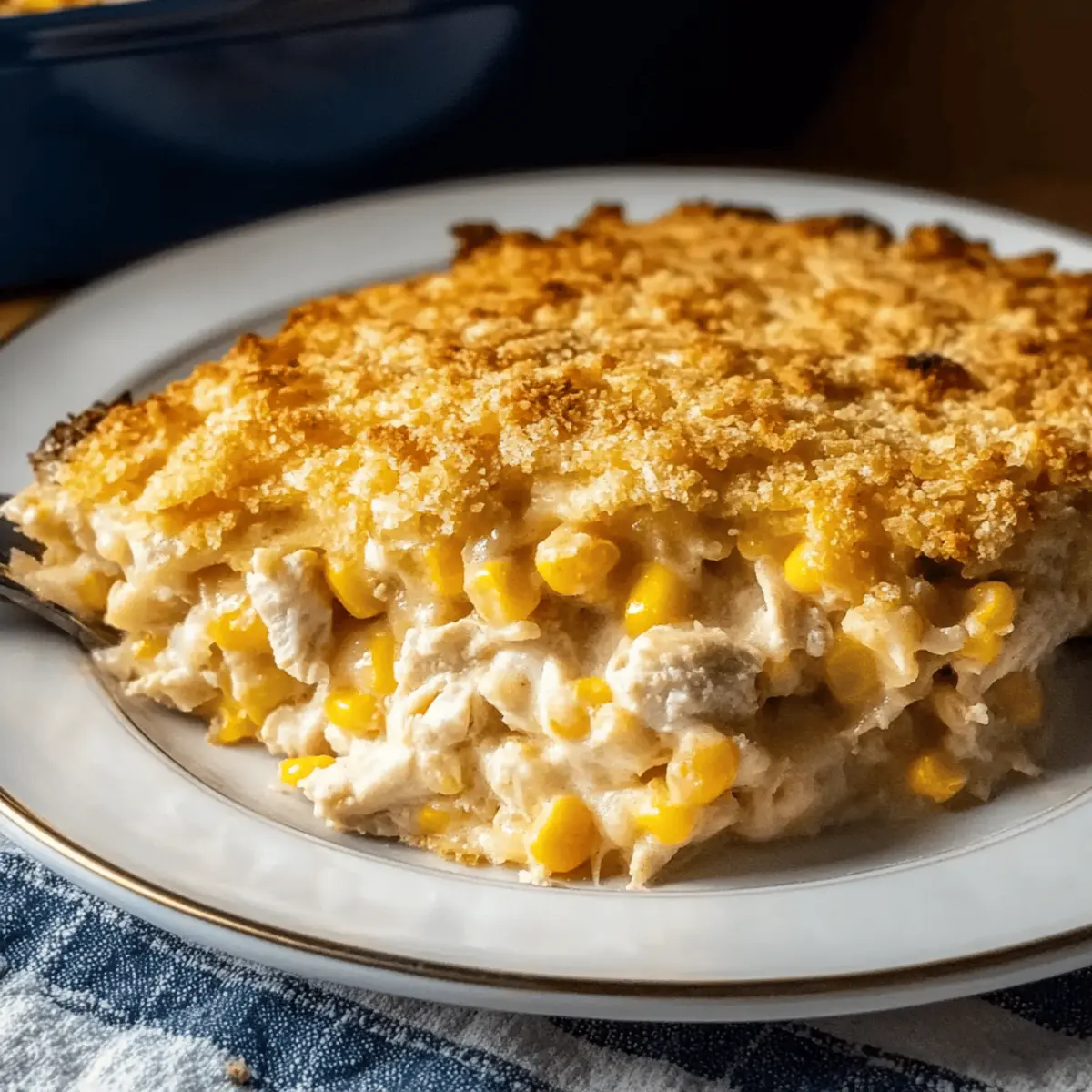 In the heart of Amish kitchens, where home-cooked meals are a cherished tradition, lives the flavorful masterpiece known as Amish Chicken Corn Casserole. This creamy comfort food unites tender, shredded chicken with the sweetness of fresh corn, all enveloped in a rich, buttery sauce and topped with crispy Ritz cracker crumbs—it’s a crowd-pleaser that feeds both the body and soul. Not only is this dish heartwarming and simple, making it a perfect weeknight dinner option, but it also steers clear of any canned soup, turning this casserole into a wholesome family favorite. Whether you’re seeking a cozy meal after a long day or a dish that brings loved ones together, this recipe is sure to be the key to your kitchen success. What secret ingredient will you add to make it your own? Why is Amish Chicken Corn Casserole a Must-Try? Creamy Comfort: This casserole is a warm hug in a dish! The rich, buttery sauce wraps around tender chicken and sweet corn for that classic homemade flavor. No Canned Soup Needed: Enjoy a wholesome meal made from scratch, keeping it healthy and free of processed ingredients. Quick and Easy: With minimal prep time, you can have a delicious dinner ready in under an hour. Perfect for busy weeknights! Crowd-Pleased Flavor: Whether it’s a family dinner or a gathering with friends, this dish is guaranteed to earn you rave reviews. Think about pairing it with a light salad or side of steamed vegetables for a balanced meal. Make Ahead: You can easily assemble it the night before; just bake it fresh when you’re ready! Store leftovers in an airtight container, and reheat for a satisfying meal later in the week. This blend of convenience and comfort makes it an ideal recipe, just like my Garlic Parmesan Chicken — flavorful and fun to share! Amish Chicken Corn Casserole Ingredients For the Casserole Cooked Chicken – Use cooked, shredded chicken for ease, perfect for using leftovers! Sweet Corn – Provides sweetness and texture; frozen or fresh alternatives are great if you want to skip canned! Butter – Essential for making the roux and enhancing flavor; opt for unsalted for better seasoning control. Flour – Thickens the sauce; feel free to substitute all-purpose flour with gluten-free options if needed. Whole Milk – Creates a creamy sauce that enriches every bite; almond or oat milk works for a dairy-free version. Salt – Enhances all flavors; adjust to taste based on your preferences. Pepper – Adds the perfect touch of spice; feel free to add more or less depending on your family’s tastes. For the Topping Ritz Crackers – Provides a crispy, golden topping; crushed breadcrumbs or gluten-free crackers can be used for a different texture. Let this Amish Chicken Corn Casserole bring warmth and comfort to your dinner table, inviting everyone to gather around for a heartwarming meal! Step‑by‑Step Instructions for Amish Chicken Corn Casserole Step 1: Prepare the Roux In a medium saucepan, melt 4 tablespoons of unsalted butter over medium heat until bubbly. Gradually whisk in ½ cup of all-purpose flour, stirring continuously for about 2-3 minutes until it becomes a light golden color. Slowly pour in 2 cups of whole milk, whisking constantly to avoid lumps. Keep cooking for another 4-5 minutes, until the mixture thickens and coats the back of a spoon. Step 2: Mix in Chicken and Corn Once the sauce has thickened, reduce the heat to low and add 2 cups of shredded cooked chicken and 1 cup of sweet corn to the pan. Stir well to ensure everything is evenly coated in the creamy sauce. Season with salt and pepper to taste, enhancing the flavor of your Amish Chicken Corn Casserole. Cook this mixture for an additional 2 minutes to heat everything through. Step 3: Assemble the Casserole Preheat your oven to 375°F (190°C). Carefully pour the chicken and corn mixture into a greased 9×13-inch casserole dish, spreading it out evenly to create a nice base. Next, crush 1 cup of Ritz crackers and sprinkle them generously over the top for that delightful, crispy crust. This will add a wonderful texture to your casserole. Step 4: Bake to Perfection Place the casserole dish in the preheated oven and bake for 25-30 minutes, or until the top is golden brown and bubbly. Keep an eye on the casserole; you want to see it lightly browned without burning. The aromas of the Amish Chicken Corn Casserole will fill your kitchen, teasing your taste buds as you await its deliciousness. Step 5: Let It Rest Before Serving Once baked, remove the casserole from the oven and allow it to cool for about 5-10 minutes. This resting period will help the flavors meld together perfectly and make it easier to serve. Slice it into squares and enjoy this warm, comforting dish, knowing that it’s a homemade masterpiece prepared with love. Storage Tips for Amish Chicken Corn Casserole Fridge: Store leftovers in an airtight container in the refrigerator for up to 3 days to maintain freshness and flavor. Freezer: For longer storage, freeze the casserole after it has cooled completely. Wrap it tightly and it can last for up to 3 months. Reheating: When ready to enjoy, thaw in the fridge overnight and reheat in the oven at 350°F (175°C) until warmed through, ensuring that the creamy texture of the Amish Chicken Corn Casserole is preserved. Make-Ahead: You can assemble the casserole a day in advance and keep it in the fridge until ready to bake, saving time on busy nights. Make Ahead Options These Amish Chicken Corn Casserole preparations are perfect for busy weeknights! You can assemble the casserole entirely up to 24 hours in advance, storing it covered in the refrigerator to keep it fresh. To prepare ahead, make the creamy sauce, mix in the chicken and corn, then pour it into your greased casserole dish. Just before baking, top it with crushed Ritz crackers. When you’re ready to serve, preheat your oven and bake it directly from the fridge, adding an extra 5-10 minutes to the baking time for optimal 