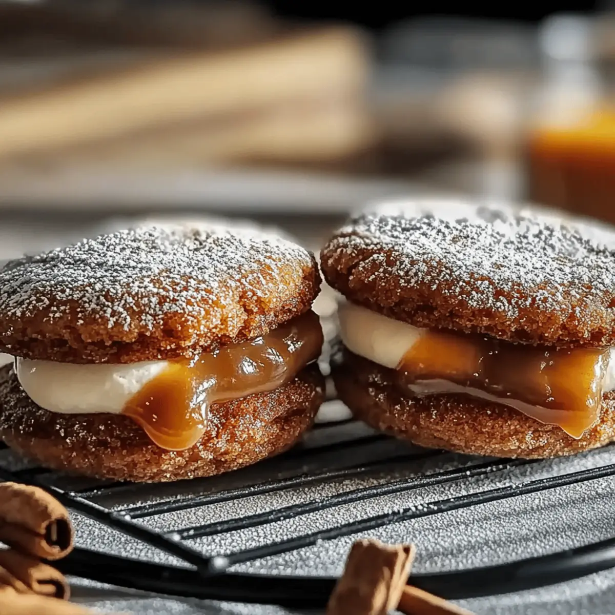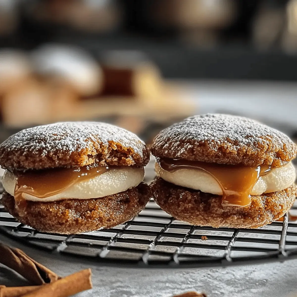 As the leaves start to flutter down and the crisp air makes its debut, I can’t help but crave the warm, comforting flavors of fall. Enter my Apple Cider Whoopie Pie Cookies with Caramel, the perfect sweet treat to embrace the season! These delicious cookies blend the essence of autumn with a soft, cake-like texture and a rich caramel filling that’s just plain irresistible. Not only are they a fun twist on a classic dessert, but they also come together quickly, making them ideal for cozy gatherings. With seasonal spices that evoke feelings of warmth and nostalgia, these whoopie pies are bound to become your new go-to recipe for fall festivities. Are you ready to roll up your sleeves and indulge in these delightful bites? Why are these cookies a must-bake? Unforgettable Flavor: The blend of apple cider, cinnamon, and nutmeg captures the essence of fall in every bite. Gooey Delight: Each whoopie pie is filled with a luscious caramel that oozes warmth and sweetness, elevating your dessert game. Quick and Easy: These cookies come together rapidly, perfect for last-minute gatherings or cozy nights in. Versatile Variations: Think outside the cookie box! Swap in orange juice or cream cheese filling for a unique spin. Crowd-Pleasing Treats: Whether it’s a family gathering or a bake sale, these cookies are sure to impress everyone! Serve them alongside a scoop of vanilla ice cream for the ultimate indulgence. Want to try another delightful fall recipe? Check out my Amish Style Apple and Cinnamon Baked Oatmeal! Apple Cider Whoopie Pie Cookies Ingredients For the Cookies • All-purpose flour – Provides structure to the cookies; a gluten-free flour blend can be used as a substitute. • Baking soda – Acts as a leavening agent to make the cookies rise. • Ground cinnamon – Adds warm spice flavor; can swap with pumpkin pie spice for extra autumn vibe. • Ground nutmeg – Enhances the cookies’ delightful fall flavor profile. • Salt – Balances the sweetness of the cookies. • Unsalted butter – Adds richness and moisture; can substitute with margarine for a dairy-free option. • Brown sugar – Contributes sweetness and depth; light or dark brown sugar can be used interchangeably. • Large eggs – Bind the ingredients together and help achieve the right texture. • Apple cider – Infuses the cookies with apple flavor and moisture; a key ingredient for your Apple Cider Whoopie Pie Cookies with Caramel. • Vanilla extract – Provides a sweet, aromatic flavor that complements the cider. For the Caramel Filling • Unsalted butter – Helps create a rich and smooth caramel filling. • Brown sugar – Sweetness and richness in the filling; use light or dark brown sugar as per preference. • Heavy cream – Adds creaminess to the caramel; makes it gooey and luscious. • Vanilla extract – Enhances the flavor of the caramel filling; you can also use a bit of sea salt for a salted caramel twist. Step‑by‑Step Instructions for Apple Cider Whoopie Pie Cookies with Caramel Step 1: Preheat the Oven Begin by preheating your oven to 350°F (175°C). This ensures that the cookies bake evenly and achieve that perfect soft texture. While the oven heats up, gather your baking sheets and line them with parchment paper to prevent sticking, making clean-up a breeze. Step 2: Mix Dry Ingredients In a medium bowl, whisk together 2 cups of all-purpose flour, 1 teaspoon of baking soda, 1 teaspoon of ground cinnamon, ½ teaspoon of ground nutmeg, and a pinch of salt. This step combines the dry ingredients, ensuring a uniform distribution of flavors. Set this mixture aside while you prepare the wet ingredients for your Apple Cider Whoopie Pie Cookies. Step 3: Cream Butter and Sugar In a large mixing bowl, beat ½ cup of softened unsalted butter and 1 cup of brown sugar together on medium speed for about 3-5 minutes. The mixture should become light and fluffy, creating an airy texture for your cookies. This crucial step is what helps the whoopie pies rise beautifully while baking. Step 4: Add Wet Ingredients Incorporate 2 large eggs one at a time into the butter and sugar mixture, mixing well after each addition. Then, blend in ½ cup of apple cider and 1 teaspoon of vanilla extract until the mixture is smooth and evenly combined. This infusion of wet ingredients will help achieve a wonderfully moist cookie texture. Step 5: Combine Dry and Wet Mixtures Gradually add the dry flour mixture to the wet ingredients, stirring gently until just combined. Be careful not to overmix, as this can lead to denser cookies. The batter should be soft and thick, ready to form into rounds for your Apple Cider Whoopie Pie Cookies. Step 6: Scoop the Cookie Batter Using a cookie scoop, drop rounded balls of dough onto the lined baking sheet, making sure to space them about 2 inches apart. This gives the cookies room to spread while baking. The uncooked dough will have a lovely pale color that hints at the scrumptious autumn flavors to come. Step 7: Bake the Cookies Place the baking sheet in the preheated oven and bake the cookies for 12-15 minutes. You’ll know they’re done when the edges are lightly golden, and the centers appear soft and slightly puffy. Remove them from the oven and let them cool on the baking sheet for a few minutes before transferring to a wire rack. Step 8: Prepare the Caramel Filling In a saucepan over medium heat, melt ¼ cup of unsalted butter, stirring in 1 cup of brown sugar and ½ cup of heavy cream. Bring the mixture to a boil, allowing it to simmer for 3-5 minutes until it thickens slightly. Remove from heat and stir in 1 teaspoon of vanilla extract for a rich, gooey caramel filling that complements your cookies. Step 9: Assemble the Whoopie Pies Once the cookies have completely cooled, take one cookie and generously spread a dollop of caramel filling on its flat side. Sandwich it with another cookie, pressing down gently. The result will be a delightful Apple Cider Whoopie Pie Cooki