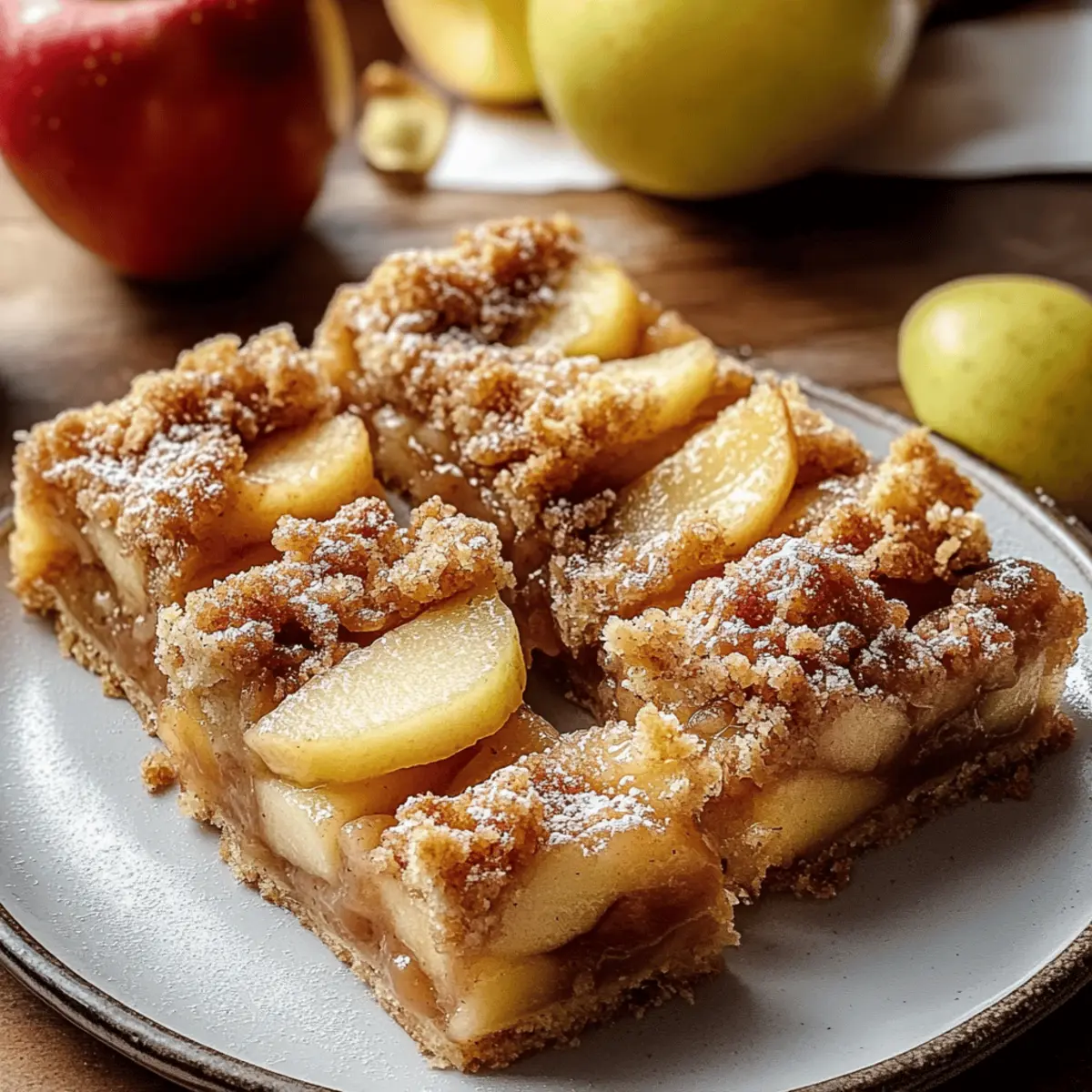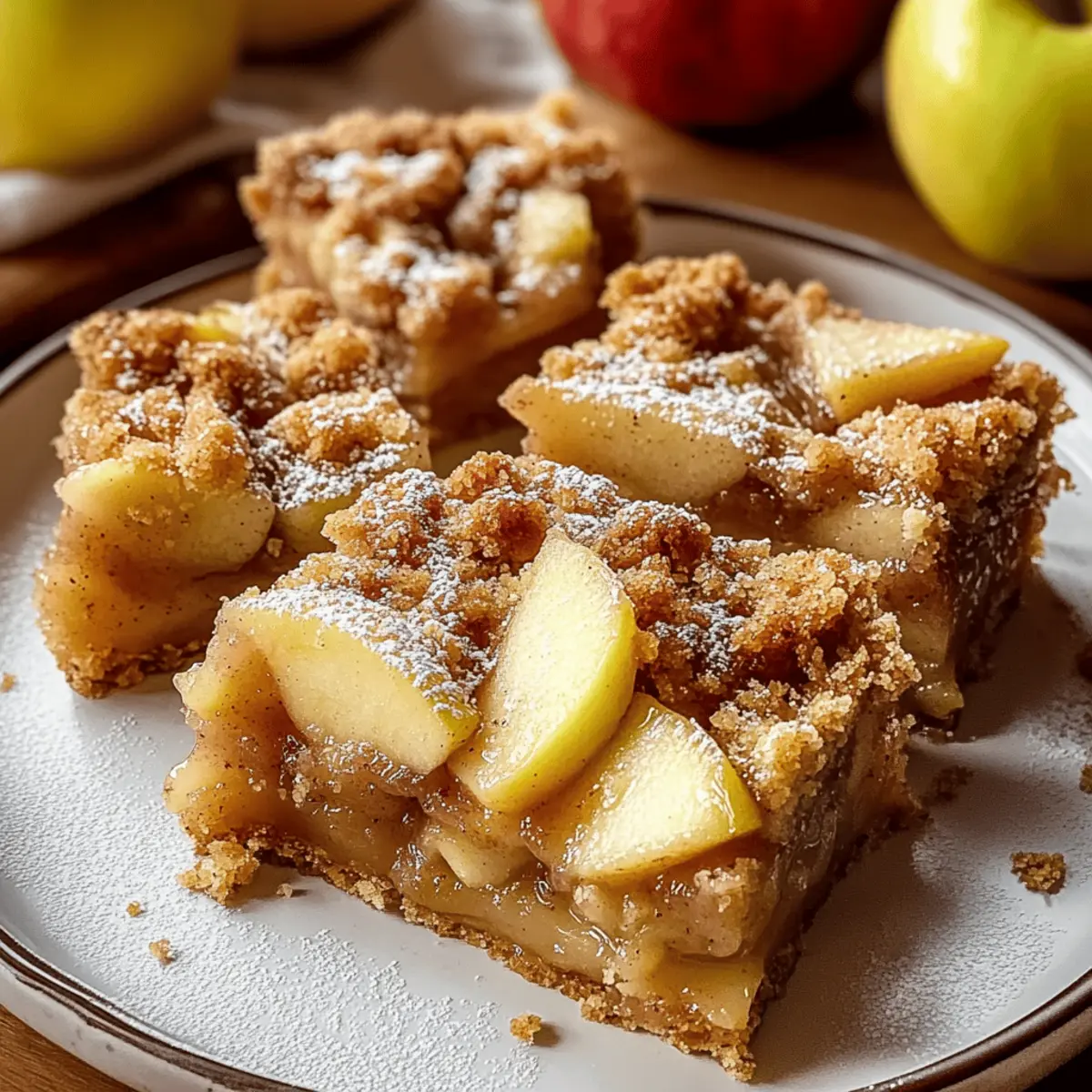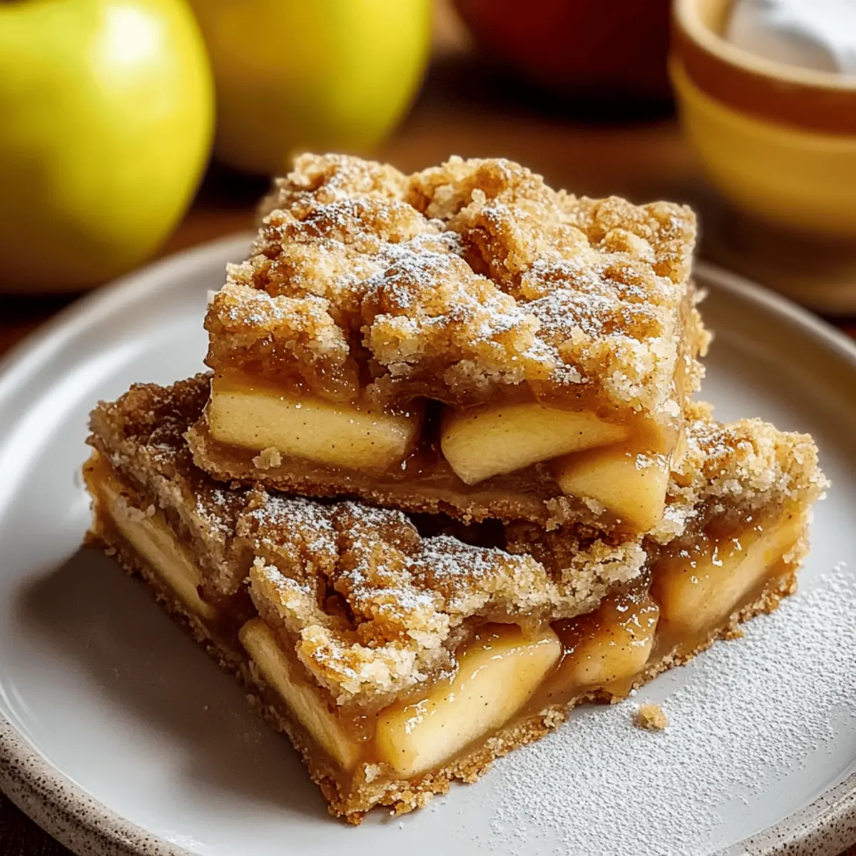 As I rummaged through my kitchen, the intoxicating scent of cinnamon and apples wrapped around me like a warm hug, transporting me straight back to my grandmother’s cozy kitchen. There’s something magical about baking that just makes the heart sing, and today, I’m thrilled to share my take on the classic, Perfectly Spiced Apple Pie Bars. These delightful treats are not only a breeze to whip up, making them perfect for beginners, but they also promise to be a hit at any gathering. With a buttery, crumbly crust and a luscious filling of juicy apples, they offer that satisfying combination of crispiness and tenderness you crave. Plus, the bonus of a gluten-free option means that everyone can join in on the festivities! Ready to fill your home with mouthwatering aromas and create sweet memories? Let’s dive in! Why Are These Apple Pie Bars Irresistible? Simplicity Made Delicious: These Perfectly Spiced Apple Pie Bars require minimal ingredients and are incredibly easy to prepare, making them ideal for beginner bakers. Warm, Inviting Flavors: The combination of tart Granny Smith apples, fragrant cinnamon, and nutmeg offers a flavor explosion that warms the soul and fills your home with inviting aromas. Perfect for Sharing: Whether it’s a family gathering or a cozy night in, these bars are sliceable, serveable, and sure to impress everyone around your table. Pair them with a scoop of vanilla ice cream for an indulgent treat! Versatile Treat: You can easily switch up flavors by adding nuts or even trying dried fruits, like cranberries or raisins, for an exciting twist. Gluten-Free Option Available: Cater to all guests by using a gluten-free flour blend, ensuring no one misses out on this delightful dessert. With so many reasons to love these bars, why not also try them alongside a warm cup of spiced tea or serve them with Oatmeal Apple Pancakes for breakfast the next day? Apple Pie Bars Ingredients • Discover the delicious essentials for your dessert! For the Crust All-Purpose Flour – Provides structure for the crust; can substitute with a gluten-free flour blend for a gluten-free option. Salt – Enhances flavor and balances sweetness. Unsalted Butter – Adds richness to the crust; substitute with vegan butter for a dairy-free version. Granulated Sugar – Sweetens both the crust and filling; reduce for a less sweet treat. Vanilla Extract – Adds aromatic depth; use pure vanilla for best flavor. For the Filling Granny Smith Apples – Provide tartness and crunch; substitute with Honeycrisp for a sweeter taste. Ground Cinnamon – Offers that heartwarming spice; increase for extra flavor! Ground Nutmeg – Adds a lovely depth; allspice can be used if nutmeg isn’t available. Lemon Juice – Prevents browning of apples and brightens flavors; apple cider vinegar can be a substitution. Cornstarch – Thickens the apple filling; all-purpose flour is an alternative, though results may vary. For Optional Topping Caramel Sauce – Drizzle over the bars for extra indulgence; optional for a lighter dessert experience. Step‑by‑Step Instructions for Apple Pie Bars Step 1: Preheat and Prepare Preheat your oven to 350°F (175°C) and grease a 9×13-inch baking dish with butter or non-stick spray. This step is crucial for ensuring your Perfectly Spiced Apple Pie Bars don’t stick. While the oven warms up, gather your ingredients to make the process smoother and more efficient. Step 2: Mix the Dry Ingredients In a medium bowl, whisk together 2 cups of all-purpose flour and ½ teaspoon of salt until well combined. This step helps to disperse the salt evenly throughout the flour, ensuring that your crust has balanced flavor. Set aside the dry mixture, allowing the flavors to meld while you prepare the wet ingredients. Step 3: Cream the Butter and Sugar In a large mixing bowl, cream ½ cup of unsalted butter and ¾ cup of granulated sugar together using an electric mixer until light and fluffy, about 2-3 minutes. The texture should be airy, signaling it’s ready to incorporate the next ingredient. Add 1 teaspoon of vanilla extract while mixing to infuse a warm flavor into the crust. Step 4: Combine the Ingredients Gradually add the flour mixture to the creamed butter and sugar, mixing on low speed until a crumbly dough forms, about 1-2 minutes. Take care not to overmix; the texture should look a little uneven. This dough will be the foundation of your Apple Pie Bars, providing that delightful, buttery crust. Step 5: Press the Crust into the Dish Take approximately two-thirds of the dough and press it evenly into the bottom of the prepared baking dish, forming a solid base for your bars. Use your fingers or the back of a measuring cup to ensure an even thickness. This will create a firm foundation to hold the juicy apple filling. Step 6: Prepare the Apple Filling In a separate bowl, toss about 4 cups of sliced Granny Smith apples with ½ cup of granulated sugar, 1 teaspoon of ground cinnamon, ¼ teaspoon of ground nutmeg, 1 tablespoon of lemon juice, and 2 tablespoons of cornstarch until the apples are well coated. This mixture should be vibrant and fragrant, providing the delicious filling for your Apple Pie Bars. Step 7: Layer the Apple Mixture Spread the apple mixture evenly over the crust in the baking dish, ensuring the slices are in a single layer for even cooking. The vibrant colors and sweet aromas from the apples will make your kitchen feel homely. This arrangement allows the apples to cook uniformly, ensuring a perfect texture. Step 8: Crumble the Remaining Dough Crumble the remaining dough over the apple filling, covering it as evenly as possible. This crumbled topping will create that crispy, inviting finish atop your Apple Pie Bars. Take your time to ensure adequate coverage so that every bite yields that delightful contrast of textures. Step 9: Bake to Perfection Place the baking dish in the preheated oven and bake for 40-45 minutes, or until the top is golden brown and the app