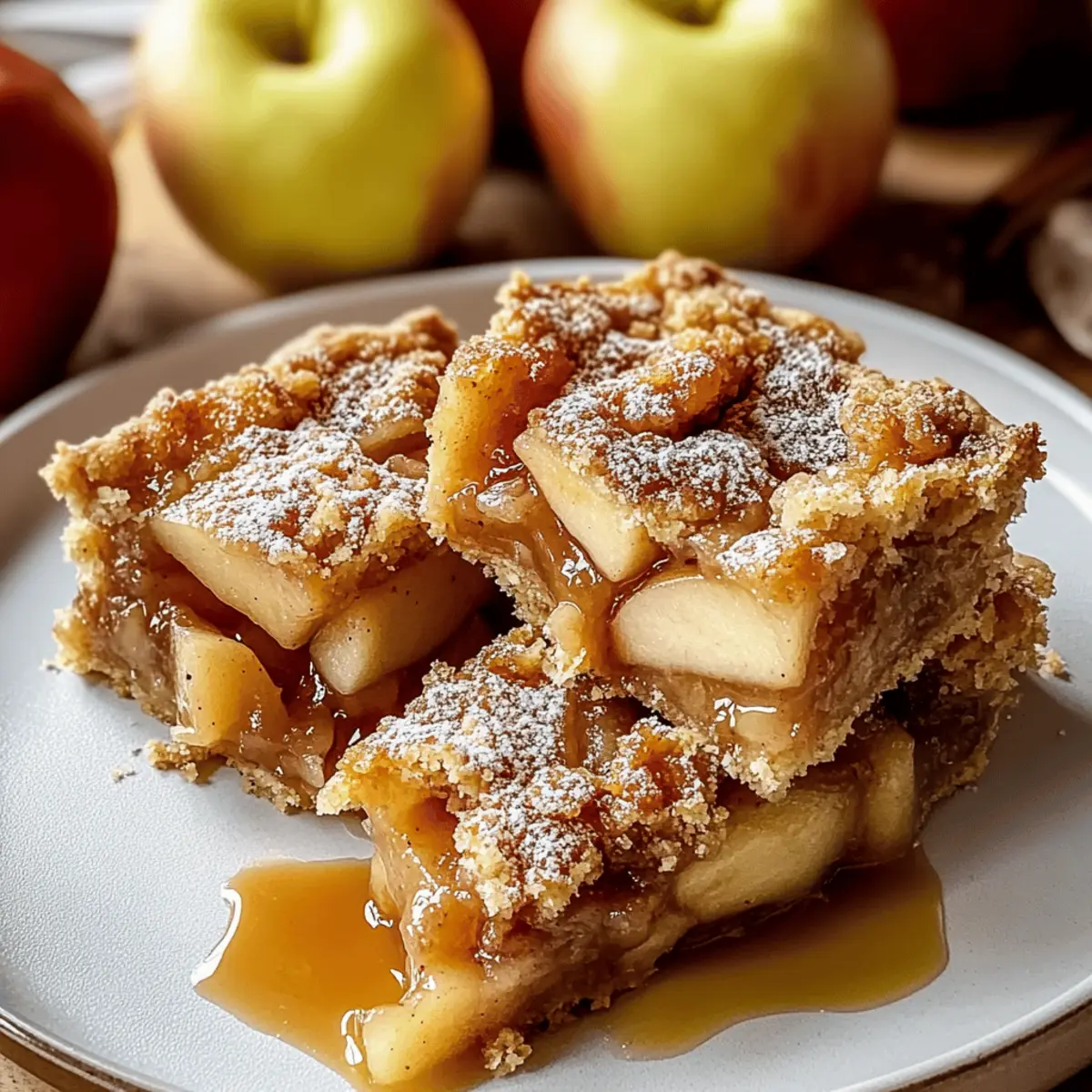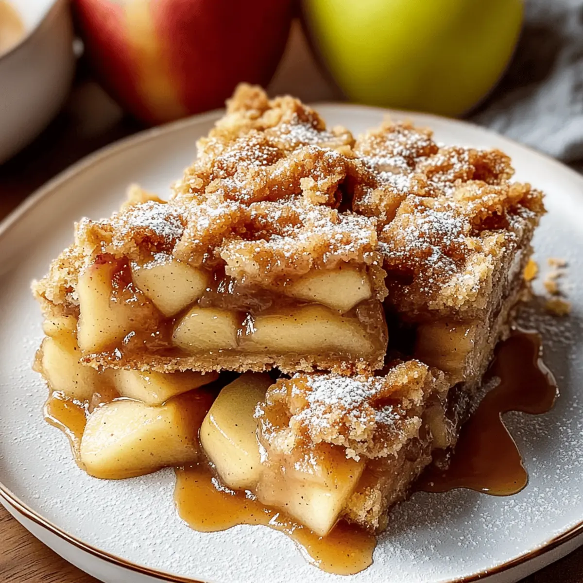 As the first chill of fall dances in the air, my kitchen transforms into a warm sanctuary filled with the aroma of spiced apples and buttery crust. That’s when I turn to my beloved recipe for Apple Pie Bars, a delightful twist on the classic dessert that captures all the cozy flavors of autumn in a convenient, easy-to-serve slice. With the added perk of being beginner-friendly and perfect for make-ahead gatherings, these bars come together with just a handful of ingredients and can even accommodate a gluten-free option! Ready to fill your home with the scent of nostalgia and create a dessert that’s sure to impress friends and family? Let’s dive into the magic of baking these perfectly spiced apple pie bars! Why Are These Apple Pie Bars So Irresistible? Warmth and Comfort: The first bite reveals a delightful mix of flavors, bringing together the sweetness of apples and spices that warm your soul. Beginner-Friendly: With simple steps, even novice bakers can succeed. It’s a great way to ease into baking with confidence! Versatile Options: Swap in your favorite apples or even add raisins for a personal touch. No one can resist their charm! Make-Ahead Magic: Perfect for potlucks and gatherings, these bars can be prepared in advance, allowing you to enjoy stress-free hosting. Want more ideas for your apple baking adventures? Try these Oatmeal Apple Pancakes for breakfast or a slice of Roasted Apple Bread as a sweet snack. Crowd-Pleaser: They disappear quickly, so be ready for compliments and requests for seconds! Enjoy the delight these apple pie bars bring to every occasion! Apple Pie Bars Ingredients For the Crust and Topping • All-Purpose Flour – Forms the base of the crust and topping; for a gluten-free version, substitute with a 1:1 gluten-free flour blend. • Salt – Enhances flavor and balances sweetness. • Unsalted Butter – Provides richness and flakiness; ensure it’s softened for easier mixing. • Granulated Sugar – Sweetens both the crust and filling, balancing the tartness of the apples. • Vanilla Extract – Adds aromatic depth to the dough, making it even more comforting. For the Filling • Granny Smith Apples – Tartness and firmness create a wonderful texture; can substitute with Honeycrisp or Fuji for differing sweetness, but beware of softer textures in baking. • Ground Cinnamon – Provides warmth and comforting spice to the filling, making your home smell inviting. • Ground Nutmeg – Complements the cinnamon, enhancing the overall flavor profile. • Lemon Juice – Brightens the apple filling and prevents browning, keeping the apples fresh. • Cornstarch – Thickens the apple filling; can be substituted with all-purpose flour or arrowroot starch if necessary. For the Drizzle • Caramel Sauce (optional) – Adds a sweet finishing touch to your apple pie bars, making them extra delectable! Step‑by‑Step Instructions for Apple Pie Bars Step 1: Preheat the Oven Begin by preheating your oven to 350°F (175°C). While the oven warms, grab a 9×13-inch baking dish and lightly grease it with butter or cooking spray. This ensures your beautifully baked Apple Pie Bars won’t stick, making it easy to slice and serve once they’re ready. Step 2: Prepare the Dry Ingredients In a medium bowl, whisk together 2 cups of all-purpose flour and 1/2 teaspoon of salt until well combined. This mixture forms the base for both the crust and topping. Set it aside for later use, allowing the ingredients to mingle while you focus on the next steps of your Apple Pie Bars. Step 3: Cream the Butter and Sugar In a large mixing bowl, cream together 1/2 cup of softened unsalted butter and 1 cup of granulated sugar using an electric mixer. Beat this on medium speed for about 2-3 minutes until it’s light and fluffy. Then, blend in 1 teaspoon of vanilla extract, adding a warm aroma that will infuse your Apple Pie Bars with delightful flavor. Step 4: Combine the Dough Ingredients Gradually add the flour mixture to the butter mixture, folding with a spatula until a crumbly dough forms. Be careful not to overmix, as you want to maintain a tender crumb. This dough will serve as the base and crumble topping for your delicious Apple Pie Bars, creating a delightful texture. Step 5: Press the Dough into the Dish Take two-thirds of the crumbly dough and press it firmly into the bottom of the prepared baking dish. Use your fingers or the back of a measuring cup to create an even layer. This will be the sturdy foundation for your apple filling, which is essential for the perfect Apple Pie Bars. Step 6: Prepare the Apple Filling In a large mixing bowl, toss together 4 cups of sliced Granny Smith apples with 1/4 cup of sugar, 1 teaspoon of ground cinnamon, 1/4 teaspoon of ground nutmeg, the juice of half a lemon, and 1 tablespoon of cornstarch. Ensure the apples are coated well, as this mixture will offer a magical burst of flavor in every bite of your Apple Pie Bars. Step 7: Layer the Apples Spread the apple mixture evenly over the pressed dough in the baking dish. Make sure to distribute the apple slices across the surface for even baking. This ensures that each piece of your Apple Pie Bars is filled with that sweet and spiced apple goodness. Step 8: Crumble the Remaining Dough Take the remaining dough and crumble it evenly over the apple filling, covering it entirely for a lovely, crispy topping. The contrasting textures of the crust and filling will showcase the tantalizing layers of your Apple Pie Bars as they bake. Step 9: Bake to Perfection Place the baking dish in the preheated oven and bake for 40-45 minutes. You’ll know they’re done when the top turns a golden brown and the apples become tender. The enticing aroma of baking Apple Pie Bars will fill your home during this time, making it hard to resist. Step 10: Cool and Slice Once baked to perfection, remove the Apple Pie Bars from the oven and let them cool for at least 30 minutes on a wire rack. This cooling period a