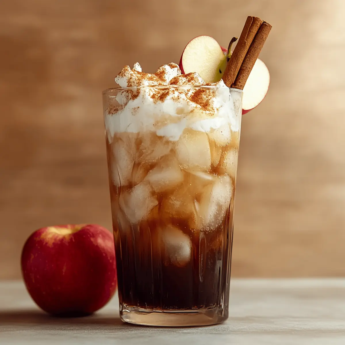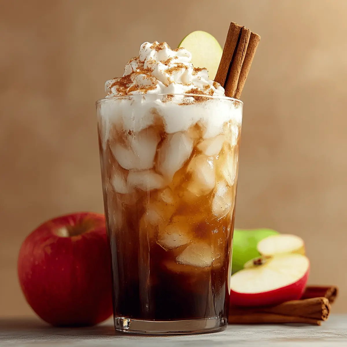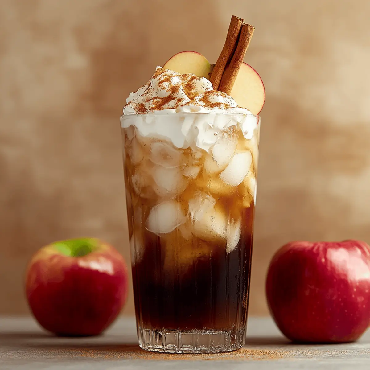 As the first leaves of fall begin to drift from the trees, I’m reminded of cozy afternoons spent with family, sipping sweet comforts that celebrate the season. Enter the Apple Pie Dirty Soda—a delightful fusion of your favorite autumn dessert and a bubbly refreshment. In just minutes, you can whip up this drink, layering spiced apple syrup, crisp soda, and rich cream for an indulgent treat that will charm both kids and adults alike. It’s the perfect quick preparation for gatherings, while also serving as a serene pick-me-up during those brisk evenings. Who wants to cozy up with a glass of nostalgia drizzled with frosty delight? Let’s dive into this creamy, sparkling concoction that captures the essence of fall! Why is this drink the ultimate fall treat? Creamy Indulgence: The Apple Pie Dirty Soda unites all your autumn cravings in one delightful sip. Quick and Easy: With minimal effort, you create a drink that impresses with its layers of flavor. Family-Friendly: Children and adults alike will adore this sweet, nostalgic drink. Versatile Options: Try variations like the Caramel Apple Delight or Bourbon Apple Smash for a personalized twist! Perfect Presentation: Serve in clear glasses to showcase its colorful layers, making it the centerpiece of any gathering. Apple Pie Dirty Soda Ingredients For the Base Chilled cola or cream soda – Provides a sweet and fizzy foundation; cream soda enhances the dessert-like quality but cola works just as well. Apple syrup or spiced apple syrup – Imparts rich apple flavor and sweetness; you can use homemade or store-bought versions for convenience. Apple cider – Adds a tangy, authentic flavor that completes this autumn-inspired drink; consider using Granny Smith apple cider for a tart balance. For the Creaminess Cream, half-and-half, or coconut cream – Creates a silky texture to soften the drink; coconut cream is a fantastic dairy-free option. To Chill Ice – Keep your drink refreshingly cold; make sure to fill the glass to the brim for the best experience. For Garnish (Optional) Apple slice, cinnamon stick, or a pinch of cinnamon – Elevates the visual appeal and enhances aroma; these garnishes make your Apple Pie Dirty Soda look as great as it tastes! Step‑by‑Step Instructions for Apple Pie Dirty Soda Step 1: Fill the Glass with Ice Begin by filling a tall glass (16-20 oz) to the brim with ice. Make sure the ice is fresh and crisp, as it will help keep your Apple Pie Dirty Soda cold and refreshing. This foundation is crucial for achieving that delightful layer effect in your drink, so pack the ice tightly. Step 2: Add Apple Syrup and Cider Next, gently pour the apple syrup over the ice, followed by the apple cider. Tilt the glass slightly while pouring to create beautiful layers that showcase the vibrant colors. The syrup should settle at the bottom, while the cider creates a distinct layer above it. This step adds a rich apple flavor that sets the stage for your drink. Step 3: Incorporate the Soda Slowly add your choice of chilled cola or cream soda on top, pouring it gently over the back of a spoon to reduce foaming. This technique ensures the carbonation remains intact and helps maintain the layers you created with the syrup and cider. You’ll know you’re doing it right when you see the mesmerizing separation of colors. Step 4: Drizzle the Cream For the final creamy touch, carefully drizzle cream, half-and-half, or coconut cream over the back of a spoon again. This method creates a stunning floating effect on top of your Apple Pie Dirty Soda. Limit stirring to just once, allowing for a marbled appearance that adds visual interest and a silky texture. Step 5: Garnish and Serve To elevate the presentation, garnish your drink with an apple slice and a cinnamon stick. A light sprinkle of cinnamon on top enhances the aroma while adding a cozy fall touch. Serve immediately to allow your guests to enjoy the refreshing layers and delicious flavors that embody the essence of autumn! Apple Pie Dirty Soda: Creative Twists Await Feel free to explore these fun variations and make the drink truly your own by adding a personal touch that excites your taste buds! Bourbon Apple Smash: Add 1.5 oz of bourbon for a delightful adult twist. This variation ramps up the complexity, making it perfect for cozy evenings by the fire. Caramel Apple Delight: Substitute apple syrup with salted caramel syrup for a sweet and savory experience. The caramel adds a rich edge that pairs beautifully with the spiced notes of the apple. Pumpkin Pie Remix: Replace the cider with pumpkin spice syrup and add a splash of cold brew coffee. This flavor explosion creates a drink that celebrates both apple and pumpkin in one glass! Skinny Sip: Use sugar-free ginger ale and almond milk for a lighter version without sacrificing flavor. Perfect for those who want to enjoy the essence of fall guilt-free. Kids’ Sparkling “Apple Cider”: Skip the cream entirely and use sparkling apple juice for a fruity, non-dairy treat. This variation allows kiddos to savor the fun of the season in a refreshing way. Spicy Kick: Add a dash of cayenne pepper or a few drops of hot sauce for a surprising kick. The heat from the spicy addition dances playfully with the sweetness, creating an exciting adventure for your palate. And if you love the comforting tastes of apple and cinnamon, don’t forget to check out delicious recipes like Amish Style Apple and Cinnamon Baked Oatmeal or try my Cranberry Apple Slaw for a fresh twist! Expert Tips for Apple Pie Dirty Soda Soda Pouring Technique: Pour soda slowly over a spoon to prevent foaming and maintain the drink’s beautiful layers. This helps keep the Apple Pie Dirty Soda visually appealing. Cream Selection: For the best floating effect, opt for full-fat cream or coconut cream. Both options create a rich texture while enhancing the drink’s creaminess. Syrup Storage: Make your apple syrup in advance—it can be stored for up to 2 weeks in the 