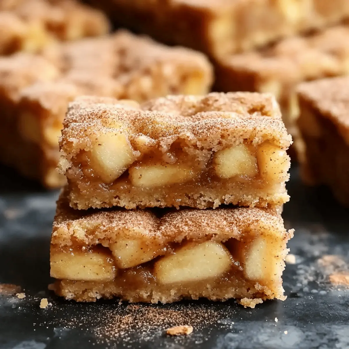 The scent of cinnamon and warm apples wafting through my kitchen is enough to make anyone linger a little longer at the door. Today, I’m thrilled to share my recipe for Easy Apple Snickerdoodle Bars, a delightful twist on the classic snickerdoodle cookie that adds a cozy seasonal flair. With just a handful of ingredients, these bars promise quick prep and a soft, chewy texture that’s ready to win over your family and friends. Each bite brings a perfect balance of sweet apples and comforting spices, making them an ideal dessert for fall gatherings or a simple afternoon treat. Could there be a sweeter addition to your autumn recipe repertoire? Let’s dive into the deliciousness together! Why are Apple Snickerdoodle Bars a must-try? Irresistible Comfort: The blend of soft, chewy texture and warm spices offers an instant cozy feeling, perfect for chilly fall days. Quick and Easy: With minimal prep time, these bars are a hassle-free dessert that anyone can whip up without fuss. Endless Customization: Feeling adventurous? Swap apples for pears or berries, or sprinkle in nuts for a delightful crunch. A Family Favorite: Kids and adults alike will love the familiar snickerdoodle flavor combined with juicy apple goodness—it’s a guaranteed hit at any gathering! Don’t forget to pair these with a delicious treat like Cranberry Apple Slaw for a complete fall feast! Apple Snickerdoodle Bars Ingredients For the Batter Unsalted Butter (1/2 cup, 113g) – Adds richness and moisture. Tip: Soften before creaming for better incorporation. Granulated Sugar (1 cup, 200g) – Provides sweetness and helps create a tender texture. Brown Sugar (1/4 cup, 50g) – Adds depth of flavor and moisture due to its molasses content. Large Egg (1) – Acts as a binder and helps with leavening. Vanilla Extract (1 tsp) – Enhances overall flavor profile. All-Purpose Flour (1 1/2 cups, 180g) – Main structure ingredient. Note: Can substitute with a gluten-free blend. Baking Powder (1/2 tsp) – Leavening agent for a lighter texture. Salt (1/4 tsp) – Balances sweetness and enhances flavors. Ground Cinnamon (1 tsp) – Adds classic snickerdoodle flavor. Ground Nutmeg (1/2 tsp) – Warm spice that complements the apple flavor. Medium Apple (1, peeled and finely diced) – Provides moisture and sweet-tart flavor. Best choices: Honeycrisp or Granny Smith. For the Topping Granulated Sugar (2 tbsp) – Sweetens the topping and creates a crunchy texture. Ground Cinnamon (1 tsp) – Enhances the snickerdoodle experience with more aromatic spice. Enjoy baking your Apple Snickerdoodle Bars and bring the cozy flavors of fall to your kitchen! Step‑by‑Step Instructions for Apple Snickerdoodle Bars Step 1: Preheat the Oven Begin by preheating your oven to 350°F (175°C). While it warms up, grab an 8×8-inch baking pan and line it with parchment paper, allowing some overhang for easy removal later. This step ensures your Apple Snickerdoodle Bars will bake evenly, giving them that delightful chewy texture we all love. Step 2: Cream the Butter and Sugars In a large mixing bowl, combine the softened unsalted butter, granulated sugar, and brown sugar. Using an electric mixer, cream these ingredients together on medium speed for about 2-3 minutes until the mixture is light and fluffy. You’ll notice a creamy consistency forming, which is the perfect base for your bars. Step 3: Incorporate Egg and Vanilla Next, add in one large egg and a teaspoon of vanilla extract to your butter-sugar mixture. Mix at low speed until everything is well combined and smooth, taking about 1-2 minutes. The addition of these ingredients brings a warm, inviting aroma, enhancing the flavor of your Apple Snickerdoodle Bars. Step 4: Mix the Dry Ingredients In a separate bowl, whisk together the all-purpose flour, baking powder, salt, ground cinnamon, and ground nutmeg until well combined. This step will ensure that the leavening agent is evenly distributed throughout the flour mixture, giving your bars a nice rise when baked. Step 5: Combine Wet and Dry Mixtures Gradually fold the dry ingredients into the wet mixture, using a spatula or wooden spoon. Mix until just combined, ensuring not to overmix; a few flour streaks are okay. This will help retain the tender texture of your Apple Snickerdoodle Bars, which is essential for that perfect bite. Step 6: Fold in the Apples Gently fold in the finely diced apple until they are evenly dispersed throughout the batter. Take care not to mash the apple pieces as you mix; you want those luscious bits to remain intact to add juicy bites to your Apple Snickerdoodle Bars. Step 7: Spread the Batter Pour the prepared batter into your lined baking pan. Use a spatula to spread it evenly across the pan, making sure to reach the corners. This even layer will ensure consistent baking throughout, so your bars are deliciously chewy all the way through. Step 8: Prepare the Topping In a small bowl, combine the granulated sugar and ground cinnamon for the topping. Mix well until evenly blended. This mixture will add a crunchy, spiced sweetness to the top layer of your Apple Snickerdoodle Bars, enhancing their overall flavor profile. Step 9: Sprinkle and Bake Sprinkle the cinnamon-sugar mixture evenly over the batter in the pan. Bake in your preheated oven for 25 to 30 minutes, or until the edges are golden brown and a toothpick inserted in the center comes out clean. The scent of cinnamon and apples will fill your kitchen as they bake, making it hard to wait! Step 10: Cool and Cut into Squares Once baked, carefully remove the pan from the oven and let it cool completely in the pan. This step is important for achieving the right texture when you cut your Apple Snickerdoodle Bars into squares. After cooling for about 30 minutes, use the parchment overhang to lift the bars out and slice them into delightful squares. Expert Tips for Apple Snickerdoodle Bars Mixing Technique: Avoid overmixing the batter, as this can lead to tough bar