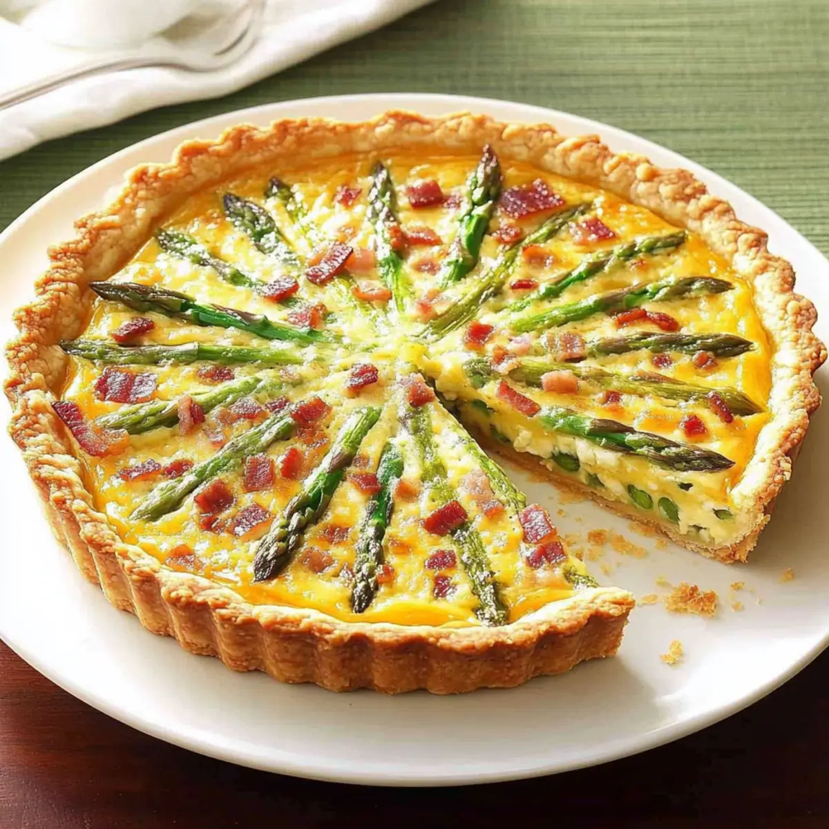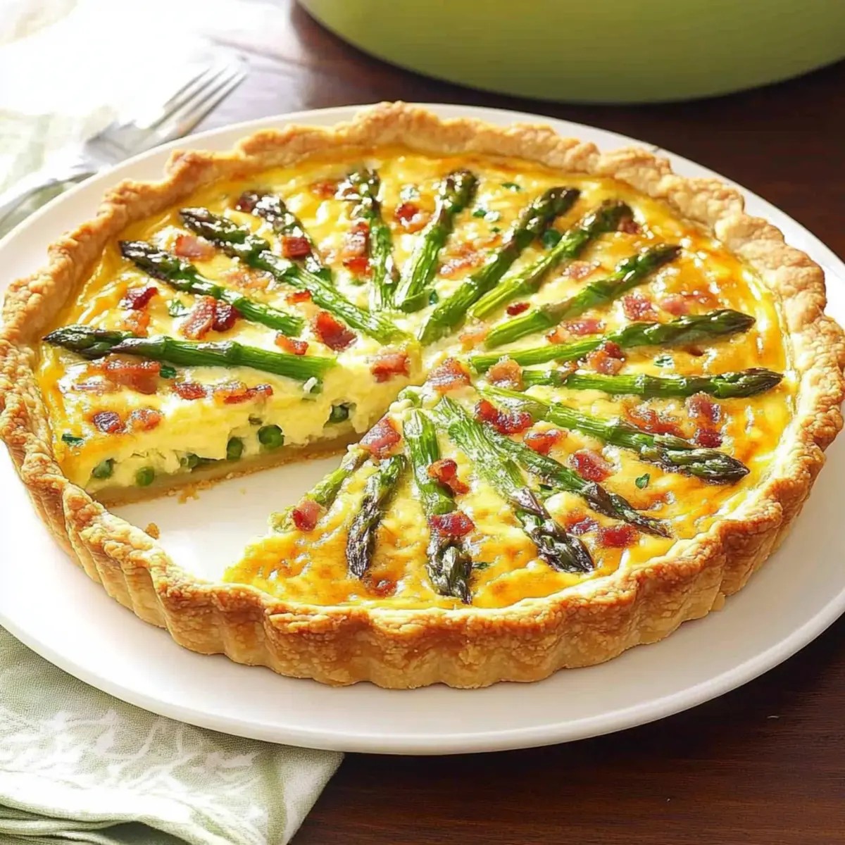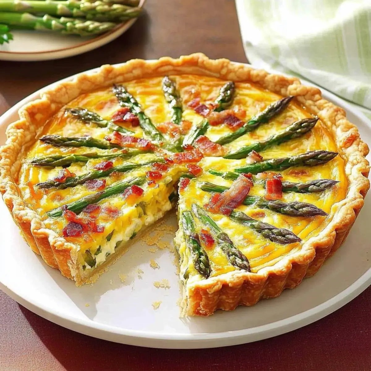 Place the tart in the preheated oven and bake for 25–30 minutes, or until the custard is set and the top is lightly golden. Allow the Asparagus, Bacon & Shallot Tart to cool for 10 minutes before slicing, letting the flavors deepen and easing the cutting process for neat portions.
