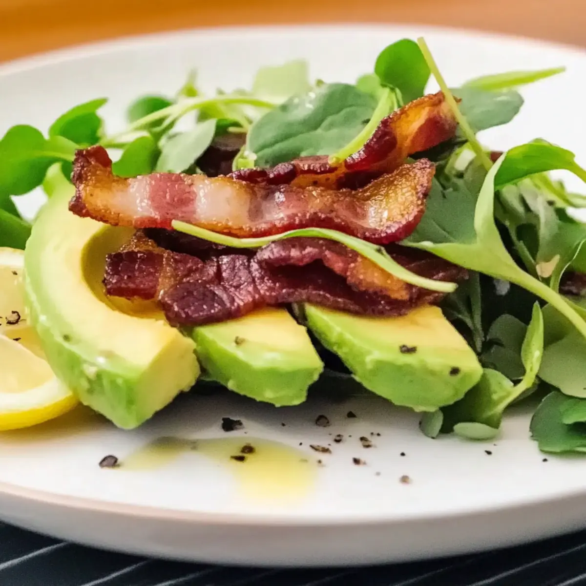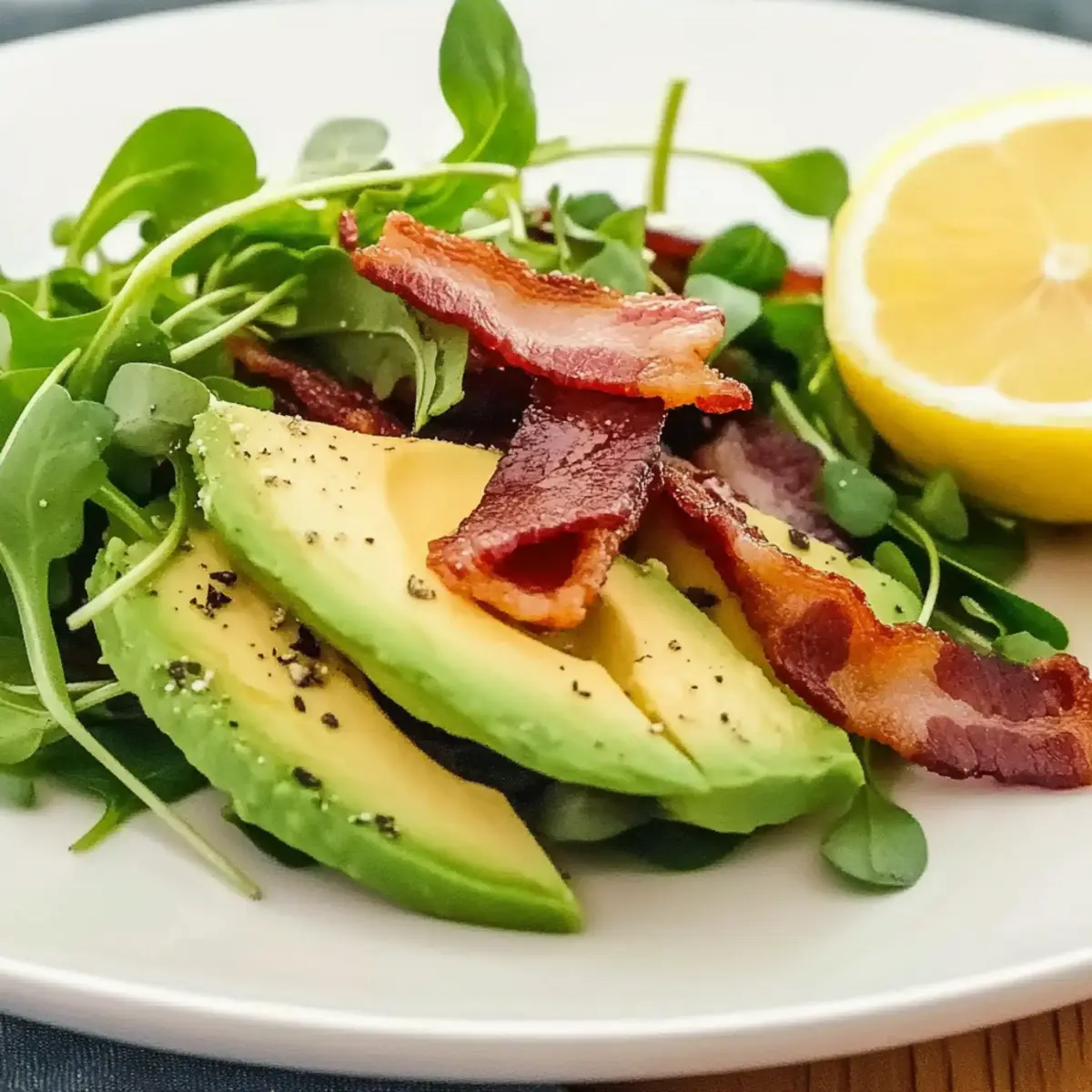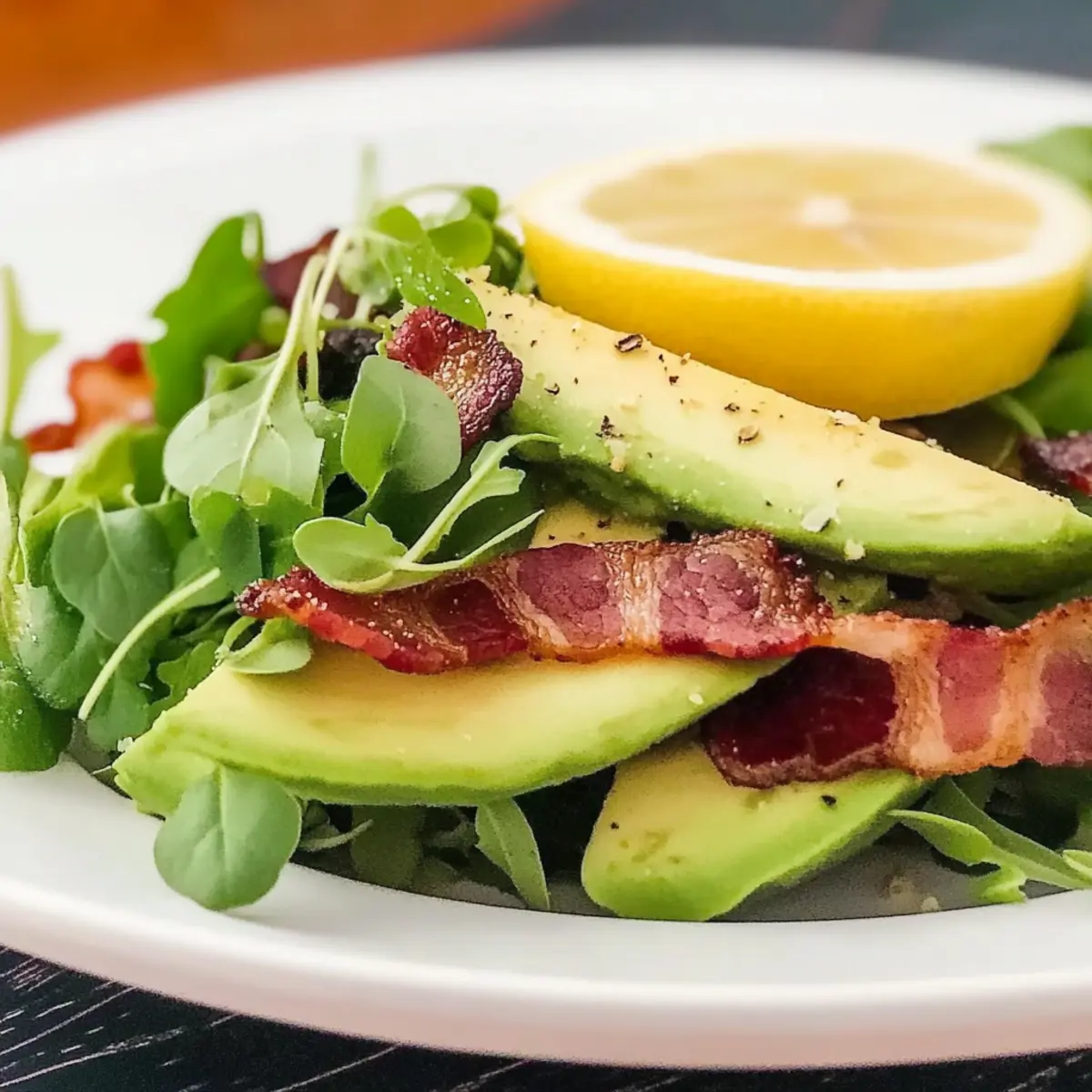 While tossing a fresh salad, I stumbled upon a delightful twist that turns a simple dish into a flavor-packed masterpiece. The Low Carb Bacon Avocado Salad combines creamy avocado and irresistibly smoky bacon, drizzled with a zesty hint of lemon. This salad is not only a fantastic option for a light lunch, but it’s also a great side dish that can win over even the biggest salad skeptics. Packed with healthy fats and protein, it supports low-carb diets while keeping you feeling satiated. Plus, it’s gluten-free and naturally delicious! Whether you’re meal prepping for the week or impressing guests, this Bacon Avocado Salad is both quick to whip up and guaranteed to become a staple in your kitchen. Curious about how to create this refreshing delight? Let’s dive into the recipe! Why is this salad a must-try? Flavor Explosion: The combination of creamy avocado with smoky bacon creates a salad that’s sure to please your taste buds. Quick & Easy: This dish can be assembled in minutes, making it a perfect choice for busy weeknights or last-minute gatherings. Healthy Indulgence: Packed with healthy fats and protein, this salad fits seamlessly into low-carb and gluten-free diets. Versatile Additions: Feel free to customize with crumbled feta or seasonal veggies like cherry tomatoes for a fresh twist! Crowd-Pleasing Delight: Even those skeptical of salad will be converted; serve it alongside grilled chicken from Chicken Caesar Salad for a complete meal! Bacon Avocado Salad Ingredients • Dive into the essentials of this creamy delight! For the Salad Avocado – Provides creaminess and healthy fats; use ripe Hass avocado for the best flavor. Bacon – Adds smokiness and protein; bacon bits or smoked salmon are great alternatives. Watercress – Offers a peppery bite and fresh greens; arugula can be swapped for a similar taste. Shallots – Adds a mild onion flavor; green onions make a perfect substitute. Pink Peppercorns – Light, fruity pepper flavor; if allergic to mango or nuts, black pepper works too. For the Dressing Avocado Oil – Provides richness; olive oil can be used if preferred. Lemon Juice – Brightens the flavor with acidity; always opt for freshly squeezed juice. Salt (Maldon/Kosher) – Enhances all flavors in the salad. Embrace the unique combination in this Bacon Avocado Salad that’s sure to impress! Step‑by‑Step Instructions for Bacon Avocado Salad Step 1: Gather Your Ingredients and Tools Start by collecting all ingredients for your Bacon Avocado Salad. You will need a cutting board, a sharp knife, and a bowl for mixing. Lay out your ripe Hass avocado, crispy bacon, fresh watercress, shallots, pink peppercorns, avocado oil, lemon, and salt. This preparation will help streamline the cooking process and ensure you have everything within reach. Step 2: Wash and Prepare the Greens Next, rinse the watercress thoroughly under cold running water to remove any dirt. Pat it dry with a clean kitchen towel or use a salad spinner for faster drying. Once clean, trim any tough stems and set aside the fresh greens. This will create a crisp base for your Bacon Avocado Salad, enhancing both texture and flavor. Step 3: Slice the Avocado Carefully slice the ripe Hass avocado in half, removing the pit. Scoop out the creamy flesh gently with a spoon and slice it into even wedges or cubes, depending on your preference. The avocado’s vibrant green color should be uniform, indicating perfect ripeness. Arrange the slices on a plate as you prep the other components, keeping them fresh and ready for assembly. Step 4: Mince Shallots and Peppercorns Mince a small shallot finely, ensuring you create pieces that mix well into the salad without overpowering it. If you’re using pink peppercorns, gently crush them to release their fruity aroma and flavors. This step adds a delightful zing to your Bacon Avocado Salad, balancing the richness of the avocado and bacon. Step 5: Squeeze Fresh Lemon Juice Cut a lemon in half and squeeze the juice into a small bowl, straining out any seeds. You’ll want about a tablespoon of fresh lemon juice to drizzle over the salad. The acidity from the lemon juice brightens the dish, preventing the avocado from browning while enhancing overall flavor—this truly complements your Bacon Avocado Salad. Step 6: Assemble the Salad On a large plate, drizzle a couple of tablespoons of avocado oil as a base. Layer the sliced avocado evenly over the oil, followed by generous pieces of cooked bacon, fresh watercress, and the minced shallots. Sprinkle the crushed pink peppercorns over the top for added flavor and visual appeal, making your Bacon Avocado Salad vibrant and inviting. Step 7: Drizzle Lemon Juice and Season Now, take the bowl of fresh lemon juice and drizzle it over the assembled salad to add brightness. Lightly sprinkle Maldon or kosher salt to taste over the top, enhancing all the flavors in your Bacon Avocado Salad. The salt will bring out the natural sweetness of the avocado and the smokiness of the bacon. Step 8: Serve Immediately For the best taste and freshness, serve your Bacon Avocado Salad right away. This salad is meant to be enjoyed fresh, as the avocado and watercress don’t store well once mixed. Grab a fork and dive into this creamy, crunchy delight, savoring each bite of your homemade creation. Bacon Avocado Salad Variations Feel free to get creative with the flavors and textures in this salad to make it uniquely yours! Creamy Addition: Crumbled feta or goat cheese can enhance the creaminess of your salad, adding a tangy flair that pairs beautifully with the bacon. Nutty Crunch: Add toasted pine nuts for a delightful crunch. Their nuttiness complements the avocado’s richness, making each bite a savory experience. Fresh Upgrades: Incorporate thinly sliced radishes or juicy cherry tomatoes for added freshness. These vibrant ingredients not only enhance flavor but add a pop of color. Pickled Peppers: Serve with pickled items like red onions 