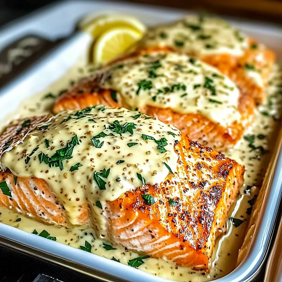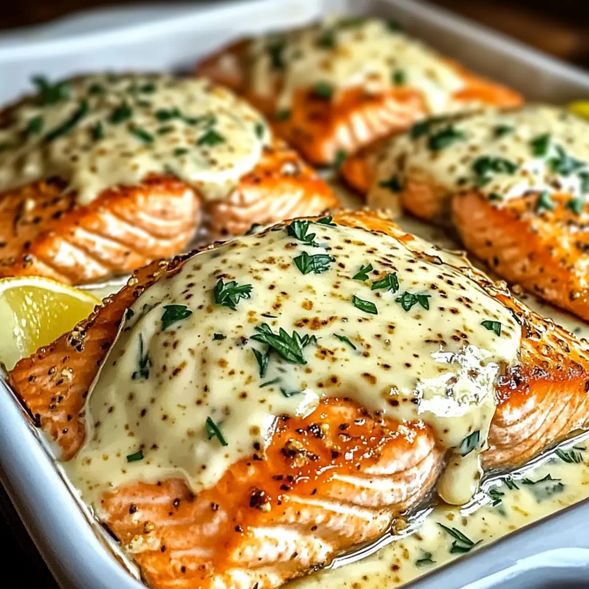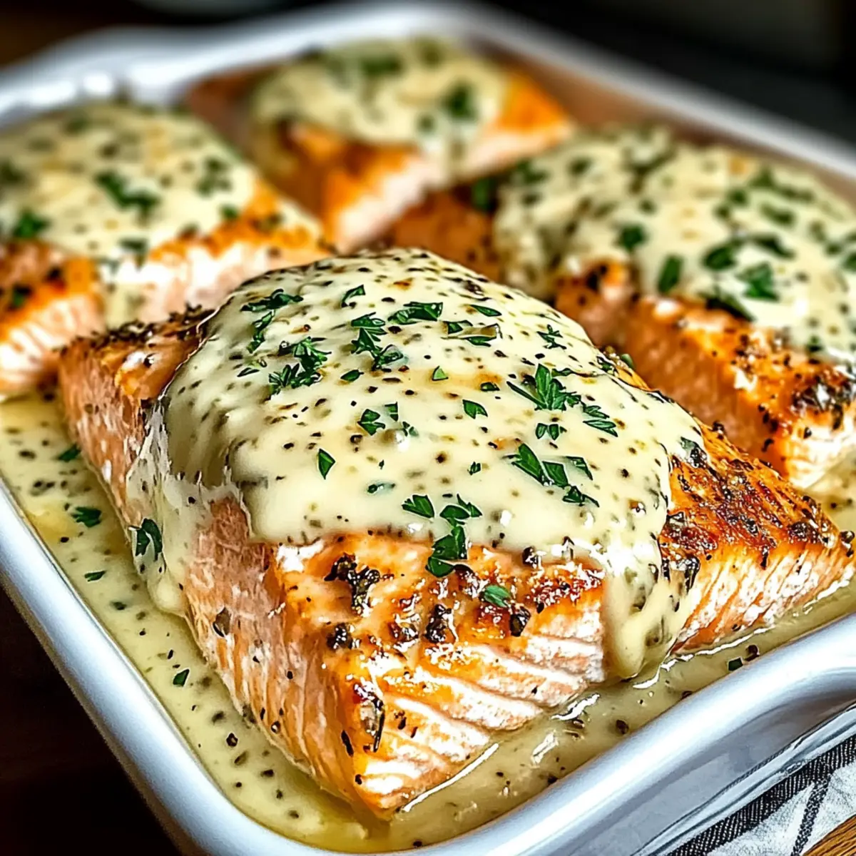 As I pulled a warm, fragrant dish from the oven, I was instantly transported to a cozy bistro along a bustling street. Enter Baked Boursin Salmon — a dish that captures the essence of gourmet cooking right in your own kitchen. This high-protein, healthy fats meal effortlessly elevates any weeknight dinner, making it perfect for those who crave something special without the fuss. With its creamy and aromatic Boursin cheese topping, complemented by zesty lemon and fresh herbs, this salmon recipe invites your creativity, allowing for a host of variations to suit your taste. Whether you’re feeding a crowd or enjoying a quiet night in, this delightful dish guarantees satisfaction and a sense of achievement in both flavor and presentation. Are you ready to discover how simple it is to impress with Baked Boursin Salmon? Why is Baked Boursin Salmon a must-try? Deliciously Simple: This recipe requires minimal effort while delivering maximum flavor, making it an ideal choice for busy weeknights. High-Protein Goodness: Packed with omega-3s, this dish not only supports your health but also satisfies your cravings. Customizable Options: Feel free to switch up the cheeses or herbs, allowing you to create a fresh spin on the classic flavor. Gourmet Feel: The creamy Boursin topping elevates the meal, making it feel like you’re dining at a fancy restaurant. Perfect Pairings: Serve it alongside garlic roasted vegetables or a lovely quinoa salad to round out your dinner experience! If you’re exploring additional quick weeknight meals, consider trying these Baked Parmesan Zucchini or opt for a heartwarming Baked Ziti Cheesy to satisfy the family! Baked Boursin Salmon Ingredients For the Salmon Salmon fillets – High in omega-3s; skin-on is recommended for added flavor. Olive oil or melted butter – Adds moisture; can substitute with avocado oil for a unique taste. Salt and black pepper – Essential for enhancing the flavor of the salmon. For the Creamy Topping Boursin cheese – Provides creaminess and rich flavor; can be swapped with cream cheese or goat cheese for variety. Minced garlic – Introduces aromatic depth; fresh garlic is preferable for potency. Lemon zest and juice – Brightens the dish with acidity; lime juice makes a great alternative. Fresh herbs (optional) – Enhances freshness; dill or chives are wonderful choices to incorporate. For the Crispy Finish Parmesan cheese (optional) – Adds a crispy layer on top for extra flavor depth, making your Baked Boursin Salmon even more delightful. With these ingredients at hand, you’re on your way to creating a fabulous Baked Boursin Salmon that’s bound to impress! Step‑by‑Step Instructions for Baked Boursin Salmon Step 1: Preheat the Oven Begin by preheating your oven to 400°F (200°C). This crucial step ensures that the Baked Boursin Salmon cooks evenly. Set your oven’s timer for 15 minutes to allow for proper heating. By the time you’re ready to bake, your oven will be perfectly prepared to deliver a flaky, delicious outcome. Step 2: Prepare the Baking Dish While your oven heats up, grease a baking dish with olive oil or line it with parchment paper for easy cleanup. This step not only prevents sticking but also adds a hint of flavor to the salmon. Make sure to spread the oil evenly across the surface to ensure the Baked Boursin Salmon cooks beautifully without sticking. Step 3: Mix the Boursin Topping In a medium-sized bowl, combine the creamy Boursin cheese, minced garlic, lemon zest, lemon juice, and half of the olive oil. Stir until the mixture is smooth and well combined. This delightful topping will infuse the salmon with creamy flavors, creating an irresistible crust once baked. The mixture should be fragrant and creamy, perfect for spreading over the salmon. Step 4: Prepare the Salmon Fillets Take your salmon fillets and carefully pat them dry using paper towels. This step is vital as it enhances browning and flavor absorption. Drizzle the remaining olive oil over the salmon, then season generously with salt and black pepper. Visual cues here should include a glistening appearance from the oil and an even coat of seasoning for that flavorful touch. Step 5: Assemble the Dish Place the seasoned salmon skin-side down in the prepared baking dish. Using a spatula, evenly spread the creamy Boursin mixture over each fillet, covering them generously. This creamy layer will caramelize beautifully during baking, giving your Baked Boursin Salmon an attractive and flavorful top. The contrast between the seasoned salmon and creamy topping should be visually appealing. Step 6: Bake the Salmon Slide the baking dish into your preheated oven and bake the Baked Boursin Salmon for 15-20 minutes. Keep an eye on the salmon; it’s ready when it flakes easily with a fork and reaches an internal temperature of 145°F (63°C). The top should be lightly golden, signifying that the creamy topping is perfectly cooked. Step 7: Rest and Garnish Once baked, carefully remove the dish from the oven and let the salmon rest for about 2 minutes. This allows the juices to redistribute, enhancing the flavor and texture. Garnish your Baked Boursin Salmon with fresh parsley and lemon wedges for a vibrant finish that adds brightness to your plate. The aroma will be tantalizing, inviting everyone to enjoy this delightful dish. Expert Tips for Baked Boursin Salmon Pat Dry: Always pat the salmon fillets dry before seasoning to enhance browning and flavor absorption, preventing a soggy finish. Check Doneness: Use an instant-read thermometer for perfect results; salmon should flake easily and reach 145°F (63°C) for optimal tenderness. Make Ahead: Prepare the creamy Boursin mixture a day or two in advance for convenience without sacrificing flavor in your Baked Boursin Salmon. Fresh Ingredients: Ensure all ingredients are fresh, particularly the salmon, as it significantly influences the taste and quality of the final dish. Creative Variations: Don’t hesi