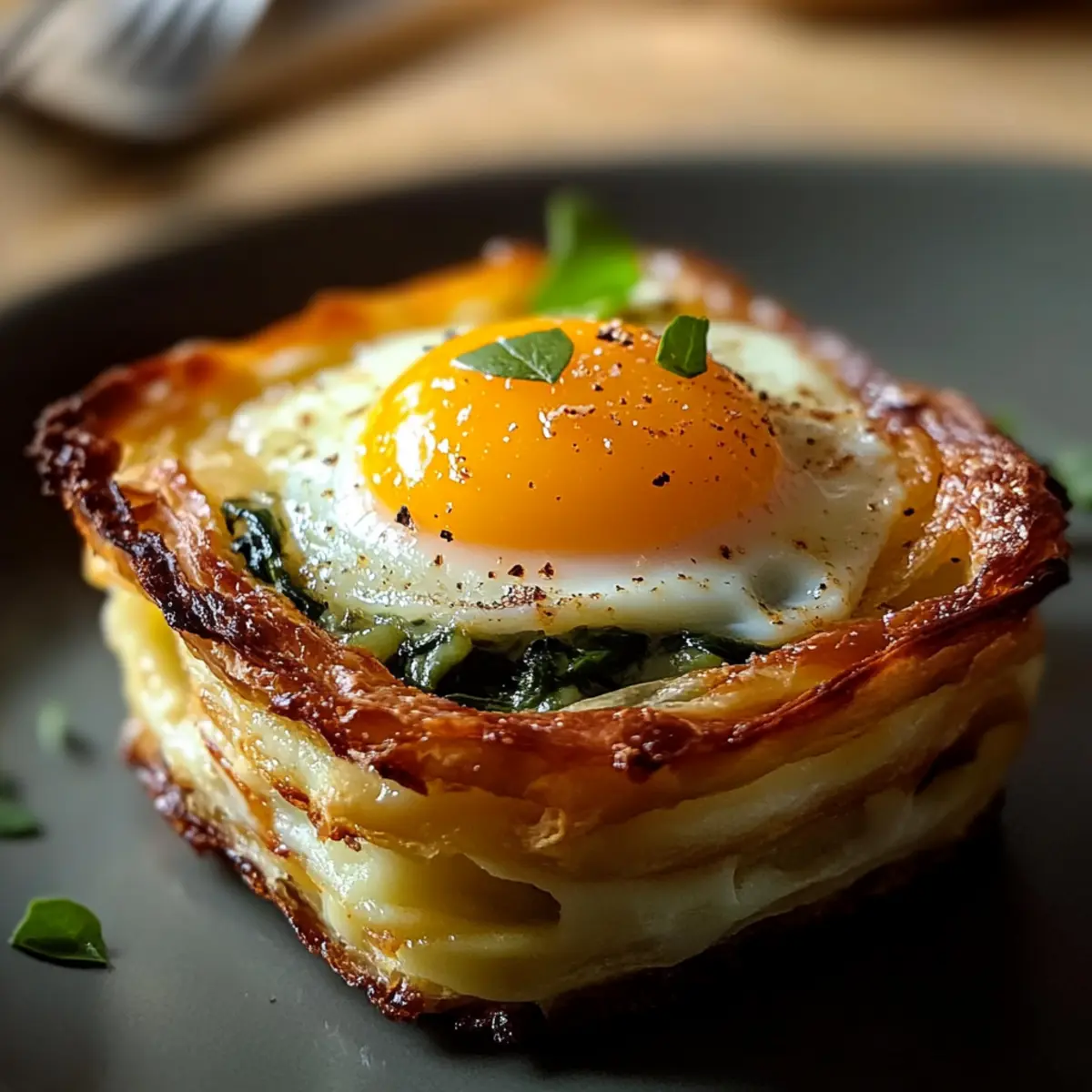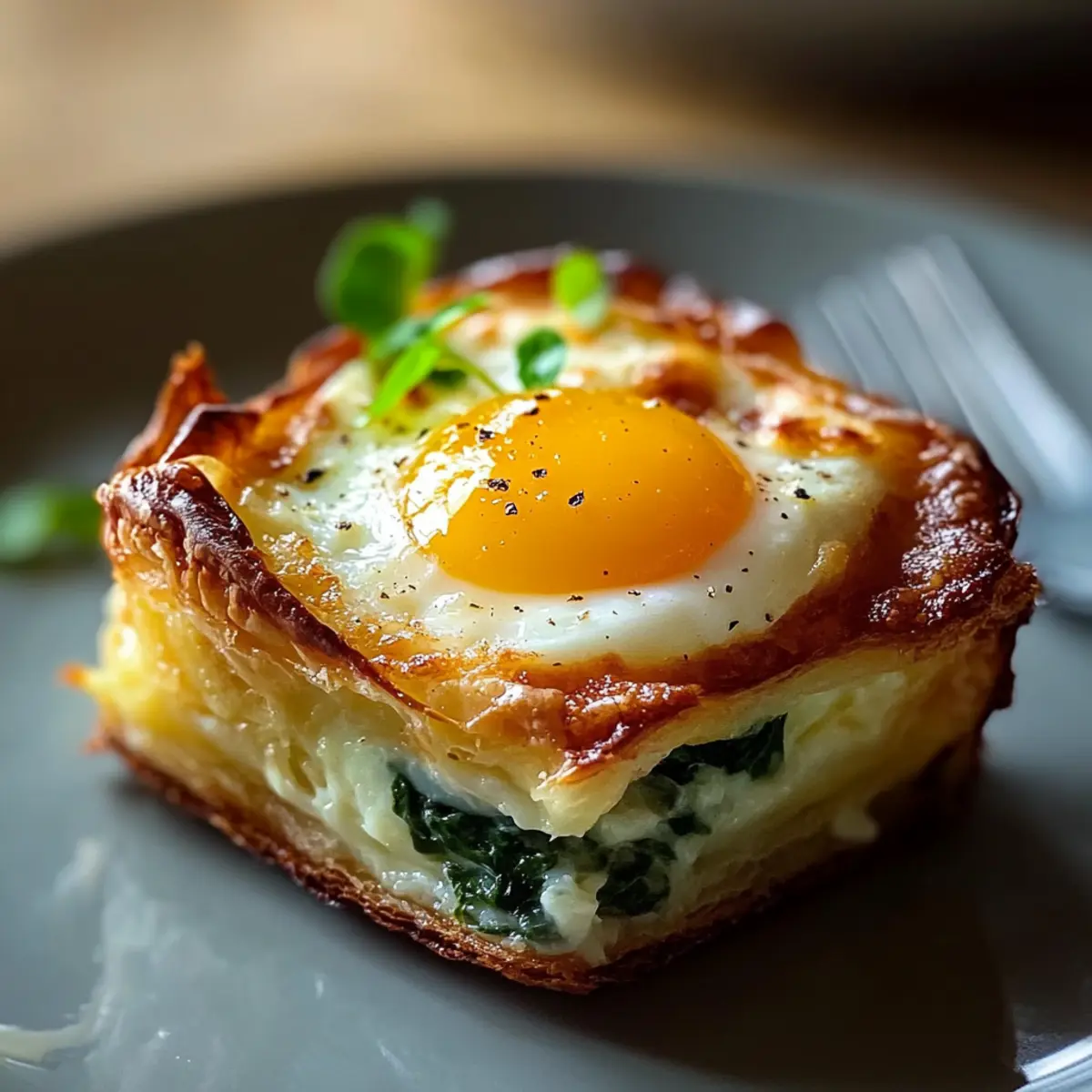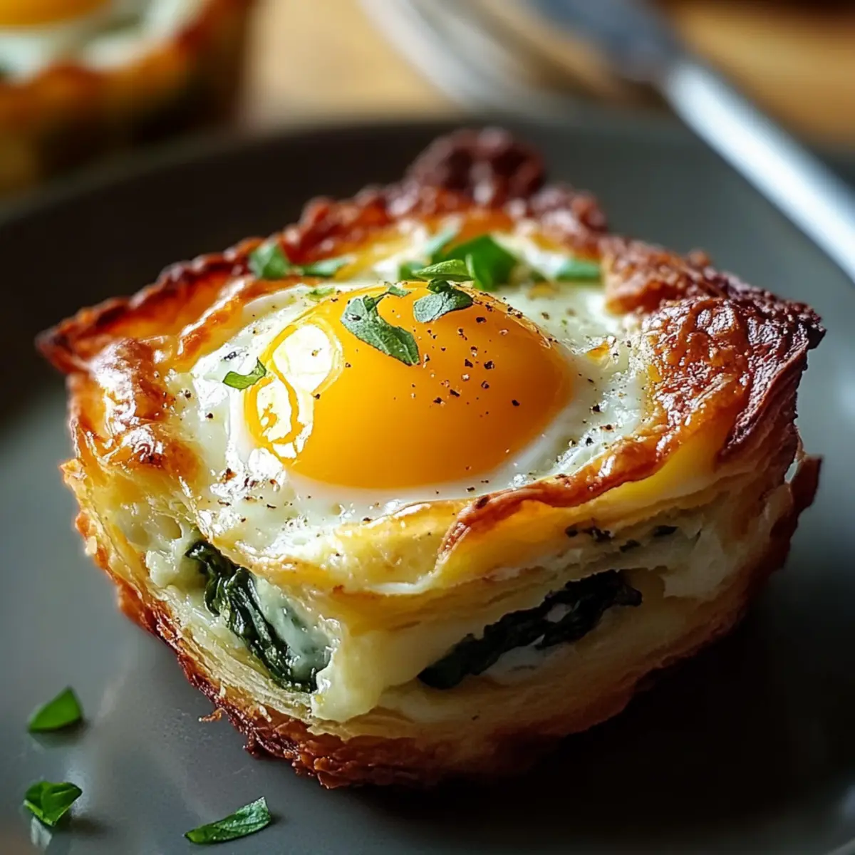 Experience Baked Eggs Napoleon, a stunning brunch dish with flaky pastry cups and creamy spinach filling that will impress your guests.