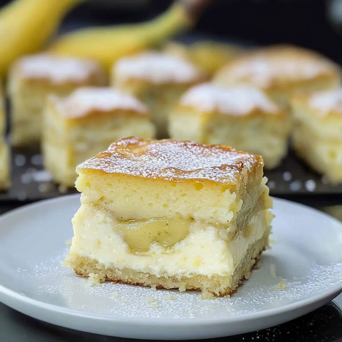 As I pulled the warm, golden dish from the oven, the delightful aroma of ripe bananas filled my kitchen, wrapping around me like a comforting hug. This Easy Banana Custard Cake Recipe transforms simple ingredients into an enchanting dessert that will surely impress everyone at your table. With no separate fillings or crusts, this cake offers a seamless blend of fluffy sponge and creamy custard—perfect for those busy nights when you crave something special but need it fast. Not only is it quick to whip up, but it’s also a fantastic way to utilize overripe bananas that might otherwise go to waste. Are you ready to discover the magic that happens when baking takes a whimsical twist? Why is this Cake So Magical? Whimsical Layers: The layered delight of fluffy sponge and creamy custard creates a magical experience with every bite. This cake is an irresistible treat that satisfies both texture lovers and flavor seekers alike. Quick & Easy: With simple ingredients and straightforward steps, you can prepare this stunning dessert in no time. It’s perfect for those evenings when you want to impress but don’t have hours to spare. Utilizes Overripe Bananas: No need to toss out those overripe bananas! They add natural sweetness and flavor, giving your cake a rich banana essence that you’ll adore. Versatile Base: Whether you enjoy it as is or pair it with a dollop of whipped cream for extra indulgence, this cake is effortlessly flexible. Consider trying it with seasonal fruits or variations like a Peanut Butter Banana twist for a fun change! Crowd-Pleasing: Your family and friends will rave about this dessert, making it a perfect addition to gatherings. Similar to a comforting dish like Slow Cooker Beef, it’s about bringing people together over great food. Get ready to enjoy a slice of heaven with this Banana Custard Cake that feels both indulgent and like a warm embrace! Banana Custard Cake Ingredients • A delightful mix of flavors awaits! For the Cake Base Eggs – Provides structure and stability; use fresh eggs for the best texture. Sugar (White & Brown) – Adds sweetness and moisture; brown sugar deepens the flavor. All-purpose Flour – The structural backbone; avoid self-rising flour to maintain consistency. Melted Unsalted Butter – Contributes richness; can be swapped for vegetable oil if needed. Milk – Creates that custard-like texture; whole milk is ideal, but nut milks work too. Ripe Bananas – Natural sweetness and flavor come from overripe bananas; the riper, the better! Vanilla Extract – Enhances the overall flavor profile; swap for almond extract for something different. For Serving Powdered Sugar – A light dusting adds a touch of sweetness and elegance. Fresh Fruit – Fruits like berries on top provide freshness and vibrant color, making your cake visually appealing. Whipped Cream – A dollop enhances the overall dessert experience, adding a creamy richness. This Banana Custard Cake Recipe is sure to become a family favorite! Step‑by‑Step Instructions for Banana Custard Cake Recipe Step 1: Preheat and Prepare Begin by preheating your oven to 350°F (175°C). While it’s warming, grease an 8-inch square baking dish or line it with parchment paper for easy removal. This step is essential for ensuring your magical Banana Custard Cake releases perfectly after baking and has a beautiful golden finish. Step 2: Separate and Beat Eggs Carefully separate the egg whites from the yolks, placing them in two separate bowls. Using an electric mixer, beat the egg whites on high speed until stiff peaks form, which will take about 3-5 minutes. This airy mixture is crucial for achieving the cloud-like texture that defines the Banana Custard Cake. Step 3: Mix Wet Ingredients In a large mixing bowl, combine the mashed ripe bananas, egg yolks, melted butter, white and brown sugars, and milk. Whisk this mixture until it’s smooth and well-blended, about 2-3 minutes. The fragrant banana aroma will start to fill your kitchen, setting the stage for this delightful Banana Custard Cake. Step 4: Incorporate Flour Gently sift in the all-purpose flour, mixing with a spatula until just combined—be careful not to overmix, as this can affect the cake’s airy texture. The batter may appear thin, and that’s perfectly normal for our Banana Custard Cake recipe, as it helps create the unique layered effect. Step 5: Combine Mixtures Carefully fold in the beaten egg whites into the banana mixture using a spatula, being gentle and ensuring you don’t deflate the whites too much. Leave some small lumps of egg whites; they will contribute to the cake’s airy layers. This thoughtful technique makes all the difference in the final result of the Banana Custard Cake. Step 6: Bake the Cake Pour the mixture into your prepared baking dish, smoothing the top with a spatula. Bake in the preheated oven for 45 to 60 minutes, or until the top is lightly golden and a toothpick inserted into the center comes out clean with a few moist crumbs. The anticipation builds as your kitchen fills with sweet banana goodness. Step 7: Cooling Once baked, remove the Banana Custard Cake from the oven and let it cool in the dish for at least 40 minutes before slicing. This cooling period enhances flavors and allows the layers to set beautifully. The resulting cake will feature a light, airy top layer with creamy custard beneath, ready to be enjoyed! What to Serve with Magical Easy Banana Custard Cake? Delight your senses and create a feast by pairing this enchanting dessert with a variety of delicious sides! Creamy Vanilla Ice Cream: The rich and creamy texture contrasts beautifully with the fluffy layers, making each bite a heavenly experience. Fresh Berries: A mix of strawberries, blueberries, and raspberries adds a refreshing burst of flavor and a pop of color that brightens the dessert plate. Honeyed Yogurt: A drizzle of honey on Greek yogurt complements the cake’s sweetness while providing a luscious creaminess