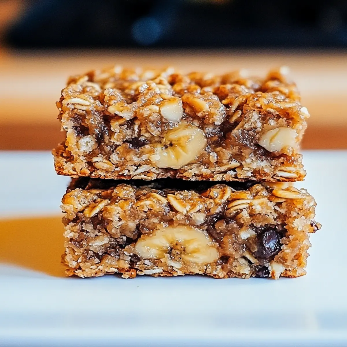 As I took a bite of my freshly baked Banana Oatmeal Bars, the sweet aroma of ripe bananas and toasty oats filled my kitchen, whisking me back to carefree mornings of my childhood. These delightful treats are the ultimate solution for anyone craving a healthy yet satisfying snack, perfect for breakfast, an afternoon pick-me-up, or even a cozy dessert. What makes these Banana Oatmeal Bars truly special is their versatility; you can easily customize them by adding nuts, chocolate chips, or even swapping honey for rich maple syrup! Plus, they’re simple to whip up and can easily accommodate gluten-free or vegan diets. Ready to elevate your snack game and enjoy a wholesome treat? Let’s dive into this scrumptious recipe! Why Will You Love Banana Oatmeal Bars? Wholesome Ingredients: Each bite of these Banana Oatmeal Bars is packed with the goodness of ripe bananas and rolled oats, ensuring a nutritious snack that satisfies your cravings. Customizable Fun: Whether you prefer chocolate chips for a sweet twist or nuts for added crunch, feel free to mix in your favorites! Quick and Easy: These bars come together in just a few simple steps, making them perfect for even the busiest of weekdays. Perfect for Any Meal: Enjoy them as a healthy breakfast, a midday booster, or a delightful dessert that everyone will love. Dietary Friendly: With options for gluten-free and vegan adaptations, these bars fit right into any eating plan, making them a versatile choice you can share with family and friends. Mix and match your favorite ingredients while keeping it healthy—check out our recipe for Salted Caramel Banana for even more delicious inspiration! Banana Oatmeal Bars Ingredients For the Base Ripe Bananas – Provides natural sweetness and moisture; overripe bananas work best for maximum flavor. Rolled Oats – Acts as the main structure and fiber source; use gluten-free oats if needed. Honey or Maple Syrup – Adds sweetness; for a vegan option, maple syrup is a perfect substitute. Eggs – Binds the mixture and provides protein; substitute with flax eggs for a vegan alternative. For the Flavor Boost Baking Powder – Helps the bars rise and become light; ensure it’s fresh for the best results. Vanilla Extract – Enhances flavor; almond extract can be used for a different taste profile. Feel free to experiment with other fun mix-ins and toppings to create your perfect Banana Oatmeal Bars! Step‑by‑Step Instructions for Irresistible Banana Oatmeal Bars Step 1: Preheat the Oven Begin by preheating your oven to 350°F (175°C). This step ensures that your oven is at the perfect temperature for baking the Banana Oatmeal Bars, allowing them to cook evenly and develop that golden brown finish we all love. As the oven warms up, gather your mixing bowl and other ingredients to get ready for the magic! Step 2: Mash the Bananas In a large mixing bowl, peel and add your ripe bananas. With a fork or a potato masher, mash them until smooth and creamy, which should take about 2-3 minutes. The smoother the banana, the richer the flavor will be in your Banana Oatmeal Bars. Keep an eye out for any chunky bits you might want to mash more thoroughly. Step 3: Combine the Ingredients To the mashed bananas, add the rolled oats, honey or maple syrup, eggs, baking powder, and vanilla extract. Mix everything well using a spatula or wooden spoon until fully combined. The mixture should be thick and cohesive, with all the ingredients nicely blended together. This is where you can start envisioning those delightful bars! Step 4: Prepare the Baking Dish While your mixture is resting, take an 8×8-inch baking dish and grease it with nonstick spray, or line it with parchment paper for easy removal. This helps prevent sticking and ensures your warm Banana Oatmeal Bars come out intact after baking. A well-prepared baking dish is key for a smooth baking experience! Step 5: Pour and Spread the Mixture Once your baking dish is ready, pour the banana mixture into it. Using a spatula, spread the mixture evenly across the dish, smoothing out the top for consistent baking. The even layer helps the Banana Oatmeal Bars cook uniformly and achieve that perfect chewy texture throughout. Step 6: Bake the Bars Place the baking dish in the preheated oven, and set a timer for 25-30 minutes. You’ll know your bars are ready when they have puffed up and turned a lovely golden brown color. The edges should feel firm, while the center may be slightly soft. Keep an eye on them in the last few minutes to avoid overbaking! Step 7: Cool and Cut Once baked, remove your Banana Oatmeal Bars from the oven and allow them to cool in the baking dish for at least 10 minutes. This cooling time helps set the bars, making them easier to cut without crumbling. After they’ve cooled, transfer them to a cutting board and slice into squares—your sweet treat is now ready to enjoy! What to Serve with Irresistible Healthy Banana Oatmeal Bars These wholesome bars are the perfect centerpiece for building a satisfying and nutritious meal that warms the soul. Greek Yogurt: A dollop of creamy Greek yogurt adds protein and a tangy contrast, enhancing the sweetness of the bars. Fresh Berries: Juicy strawberries or blueberries bring a burst of freshness and vibrant color, balancing the richness of the bars beautifully. Nut Butter: A swirl of almond or peanut butter offers a nutty flavor and richness, making each bite even more indulgent. Chia Seed Pudding: Top your bar with a spoonful of chia seed pudding for a delightful contrast in texture and added fiber. Pairing these bars with a drizzle of honey or maple syrup can make them feel like a real dessert treat! Smoothie: A refreshing green smoothie complements the bars perfectly, providing a vitamins boost and a refreshing taste. Herbal Tea: Sip on a calming cup of herbal tea while enjoying your bars for a relaxing afternoon break, enhancing the whole experience. Dark Chocolate: A few squares of dark chocolate can be a luxu