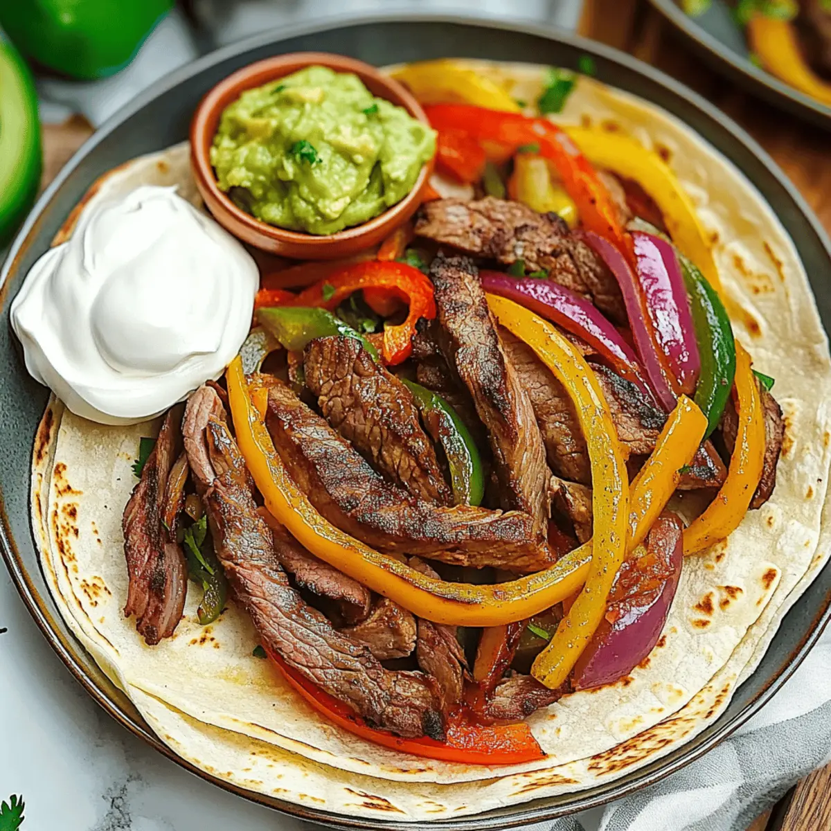 The aroma wafting through my kitchen brought back memories of festive gatherings filled with laughter and the rhythm of sizzling pans. There’s something magical about Beef Fajitas that brings people together, transforming a typical evening into a vibrant fiesta! With tender strips of beef marinated in bold spices and paired with sweet caramelized onions and colorful bell peppers, this dish is not just a meal but an invitation to savor every bite. What makes this recipe a go-to for busy weeknights? It’s quick to prepare—ready in under 30 minutes—and incredibly versatile; swap in chicken, shrimp, or even grilled veggies for a delightful twist. Plus, I’ve included gluten-free options to ensure everyone can enjoy. Ready to whip up a delicious, homemade feast? Let’s dive into the recipe! Why Are Beef Fajitas a Family Favorite? Ease of Preparation: This recipe is perfect for busy evenings, allowing you to throw together a delicious meal in under 30 minutes. Versatile Options: Whether you prefer beef, chicken, shrimp, or grilled veggies, this dish adapts to your taste and dietary needs effortlessly. Flavors That Shine: With a harmonious blend of spices and the fresh crunch of vegetables, your taste buds are guaranteed to dance with delight. Crowd-Pleasing Appeal: Perfect for family dinners or get-togethers, Beef Fajitas are sure to impress your loved ones—everyone can customize their own! Healthy Choice: At about 250 calories per serving (depending on toppings), it’s a nutritious meal that doesn’t skimp on flavor. Pair it with sides like rice or Beef Broccoli Savory for a full feast! So grab your skillet and get ready to enjoy a fun and flavorful dinner that’ll have everyone coming back for seconds! Beef Fajitas Ingredients For the Beef Marinade Beef Strips – Use flank, sirloin, or skirt steak for the most tender bite. Cumin – Adds depth and warmth; coriander can work as a substitute if needed. Chili Powder – Provides heat and vibrant color; adjust the amount to suit your spice level. Garlic – Enhances flavor; fresh garlic is preferred, but garlic powder is a handy substitute. Olive Oil – Helps to marry all the spices and beef together beautifully. For the Vegetables Bell Peppers – Define the dish with sweetness and crunch; zucchini can be a great substitute for a different texture. Onion – Adds a wonderful sweetness; opt for yellow or red based on your taste preference. For the Assembly Tortillas – The perfect wrap for your fajitas; consider gluten-free tortillas or lettuce wraps for a lighter touch. Toppings (e.g., Guacamole, Sour Cream, Cilantro) – Elevate your dish with fresh toppings that add flavor and color to your Beef Fajitas. Embrace the joy of cooking with these Beef Fajitas ingredients and experience a delightful meal that your family will love! Step‑by‑Step Instructions for Beef Fajitas Step 1: Marinate the Beef In a bowl, combine thin strips of beef with cumin, chili powder, minced garlic, and a splash of olive oil. Make sure each piece is well coated in the spices. Let the beef marinate for at least 30 minutes, allowing the flavors to meld together—this adds depth to your Beef Fajitas. Step 2: Prepare the Vegetables While the beef marinates, slice the bell peppers and onions into thin strips. Aim for uniformity to ensure even cooking. Set the sliced vegetables aside; their vibrant colors will add to the beautiful presentation of your Beef Fajitas, transforming each bite into a flavor fiesta. Step 3: Sear the Beef Heat a cast-iron skillet over medium-high heat until it’s hot but not smoking. Add the marinated beef strips in a single layer, making sure not to overcrowd the pan. Sear for about 3-4 minutes, or until they’re nicely browned and caramelized, reaching an internal temperature of 135°F for medium-rare. Step 4: Sauté the Vegetables Once the beef is cooked to your liking, remove it from the skillet and let it rest. In the same skillet, add the sliced bell peppers and onions. Sauté for about 5 minutes, stirring occasionally, until the vegetables are tender and slightly caramelized, bringing sweetness and flavor to your Beef Fajitas. Step 5: Assemble the Fajitas Warm the tortillas briefly on a dry skillet or in the microwave. To assemble, place a helping of the cooked beef and sautéed vegetables onto the warmed tortillas. Fold them up gently and top with your choice of guacamole, sour cream, or fresh cilantro, making each bite a delightful experience of your homemade Beef Fajitas. Beef Fajitas Variations to Explore Feel free to get creative with these ideas and make this recipe truly your own! Each twist brings a unique flavor experience that will delight your family and friends. Shrimp Fajitas: Substitute beef with shrimp, marinating them briefly before sautéing for a light and delightful twist. Chicken Fajitas: Use grilled chicken strips instead of beef; season with the same spices for a flavorful alternative. Veggie Delight: For a meatless option, grill a colorful mix of zucchini, mushrooms, and bell peppers for a satisfying texture. Spicy Kick: Increase chili powder or add sliced jalapeños during cooking for an extra layer of heat that’ll spice things up! Sweet Touch: Add a drizzle of honey to the marinade for a touch of sweetness that balances out spicy flavors beautifully. Taco Style: Serve the fajita filling over crispy taco shells for a fun and crunchy twist. It’s a different take that’s sure to please! Gluten-Free Twist: Use lettuce wraps instead of tortillas for a fresh, gluten-free option that’s perfect for a light meal. Flavor Boost: Roasting the veggies instead of sautéing adds caramelized depth. Try it for a richer flavor experience that’ll impress everyone around the table! And if you want to explore other delicious beef recipes, check out our Slow Cooker Beef for a comforting meal or our tasty Beef Broccoli Savory for another easy weeknight option. Enjoy exploring these variations! Make Ahead Opti