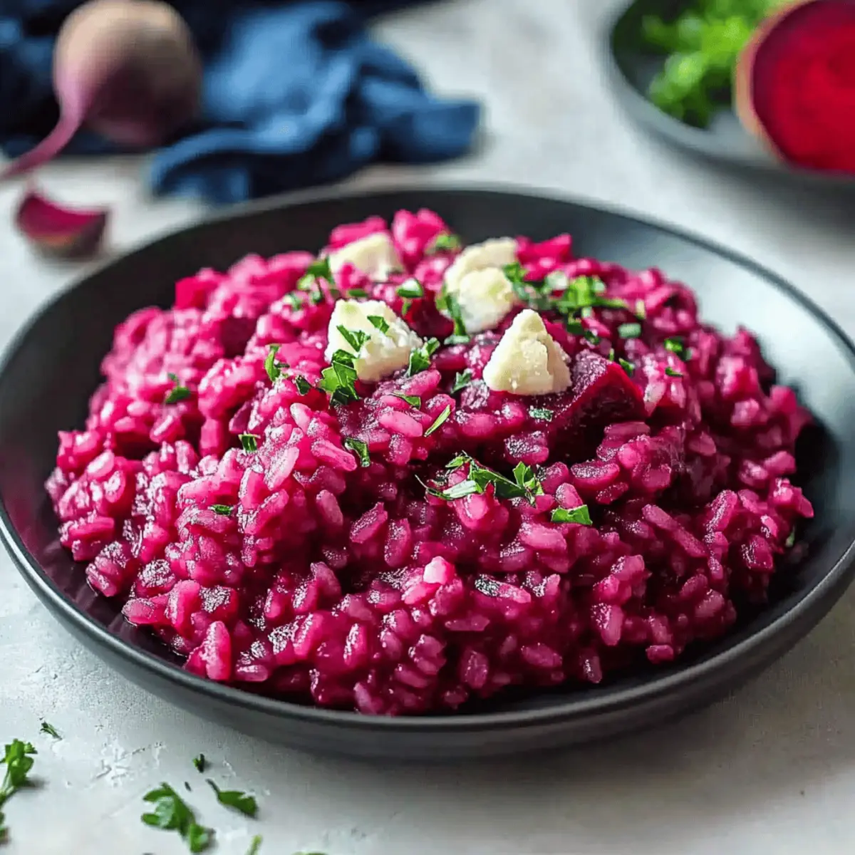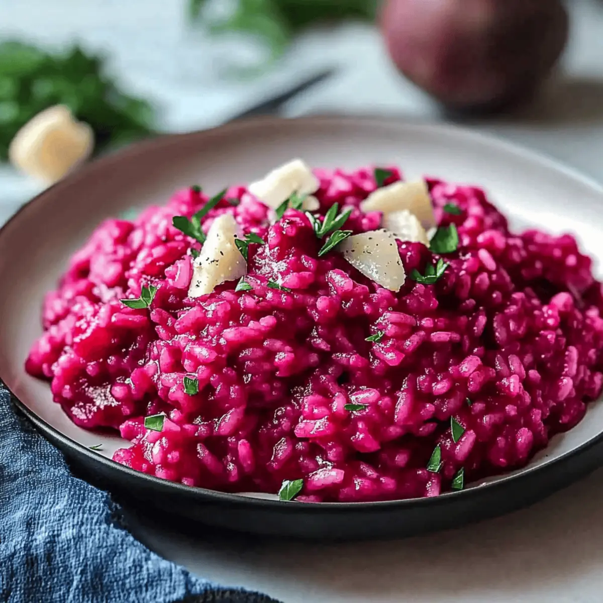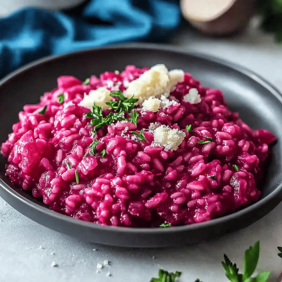 As I stood in the kitchen, the rich aroma of roasted beets wafting through the air, I felt a wave of anticipation wash over me. This Beet Risotto is a true celebration of color and taste, transforming simple ingredients into a dish that’s both visually stunning and irresistibly creamy. Not only is this vegan and gluten-free delight a fantastic way to elevate your dinner table, but it’s also surprisingly quick to whip up—a perfect side dish for any occasion or a comforting main course sure to impress even the pickiest eaters. So, are you ready to indulge your senses and create something extraordinary? Let’s dive into this vibrant culinary adventure! Why is Beet Risotto So Special? Vibrant Colors: This Beet Risotto dazzles with its stunning purple hue, making it a showstopper on any table. Creamy Texture: The Arborio rice provides an incredibly satisfying creaminess, mimicking traditional risotto without dairy. Quick Preparation: Ready in just about 30 minutes, it fits perfectly into a busy weeknight or an elegant dinner party. Vegan-Friendly: Completely plant-based and gluten-free, it caters to various dietary needs while maintaining delightful flavors. Unique Flavor Profile: The earthy sweetness of roasted beets beautifully balances the savory aroma of garlic and onion, making this dish a delightful culinary experience. For more delicious plant-based recipes, check out our collection of vegan side dishes that guarantee to impress! Beet Risotto Ingredients The secret to a creamy Beet Risotto is in the careful selection of fresh ingredients! For the Risotto Beets – Roast until tender for a rich, sweet flavor and vibrant color. Arborio Rice – This short-grain rice releases starch, creating that creamy texture risotto is known for. Vegetable Broth – Warmed broth enhances flavor and ensures the rice absorbs it efficiently. Onion – Sautéed until soft, it adds a necessary depth of flavor to the dish. Garlic – Freshly minced to infuse the risotto with a warm, inviting aroma. Dry White Wine – Adds acidity for a complex flavor; omit for a non-alcoholic version. Olive Oil – Essential for sautéing and enriching the overall taste. Unsalted Butter or Vegan Butter – Incorporates a rich creaminess; you can use olive oil for a plant-based twist. Salt and Black Pepper – Basic seasonings that enhance all the natural flavors of your ingredients. For Garnish Fresh Parsley or Microgreens – Adds a pop of color and fresh flavor, making your dish visually appealing. Parmesan Cheese (optional) – A sprinkle adds a touch of umami and creaminess; leave it out for a fully vegan option. By rounding up these ingredients, you’re not just making a meal; you’re creating a delightful Beet Risotto that’s vegan and intricately flavored! Step‑by‑Step Instructions for Beet Risotto Step 1: Roast the Beets Preheat your oven to 400°F (200°C). Wrap the fresh beets in aluminum foil, creating a sealed packet. Roast them on a baking sheet for 40-45 minutes, or until they are tender when pierced with a fork. Once cool, peel the beets and blend them with ¼ cup of vegetable broth until smooth. This vibrant beet mixture will create the rich color and flavor for your Beet Risotto. Step 2: Sauté the Aromatics In a large skillet over medium heat, warm 2 tablespoons of olive oil and 1 tablespoon of vegan butter. Add one diced onion and sauté for about 5-7 minutes until it becomes translucent and fragrant. Next, stir in 2 minced garlic cloves, allowing them to cook for an additional 1-2 minutes until softened but not browned. This step builds a savory base for your risotto. Step 3: Toast the Rice Add 1 cup of Arborio rice to the skillet, stirring continuously for 2-3 minutes. You’ll notice the rice becoming slightly translucent, which indicates that it’s toasting correctly. This technique enhances the nutty flavor of the rice and prepares it to absorb the liquid effectively in the Beet Risotto, contributing to its creamy texture. Step 4: Deglaze with Wine Pour in ½ cup of dry white wine and stir the mixture, scraping any bits stuck to the bottom of the pan. Allow the wine to simmer for approximately 2 minutes, or until it has mostly evaporated. This step adds acidity and complexity to the dish, elevating the overall flavor of your luscious Beet Risotto. Step 5: Add the Broth Gradually pour in warm vegetable broth, one ladle at a time, while stirring frequently. Allow each ladleful to be nearly absorbed before adding the next, continuing this process for about 18-20 minutes. As you stir, watch the rice transform into a creamy consistency, becoming perfectly al dente by the end of this cooking stage. Step 6: Incorporate the Beets Once the rice is cooked, gently fold in the blended beet mixture. Cook for an additional 2-3 minutes over low heat, stirring to combine all the flavors. This integration of the beets bathes the risotto in a stunning pink hue while enhancing the earthy sweetness, making your Beet Risotto a truly captivating dish. Step 7: Finish the Risotto Remove the skillet from the heat and stir in ¼ cup of grated Parmesan cheese, if desired, along with salt and black pepper to taste. Let the Beet Risotto rest for a couple of minutes, allowing the flavors to meld beautifully. This resting period is essential for creating a rich and inviting dish, ready to impress your family and friends. Step 8: Garnish and Serve Serve the vibrant Beet Risotto in warm bowls, garnished with fresh parsley or microgreens for a touch of color. The visual appeal combined with the delicious flavors makes this dish not just a meal, but a delightful experience to be shared. Your Beet Risotto is now ready to shine on your table! What to Serve with Beet Risotto Elevate your dining experience by pairing this vibrant dish with delightful accompaniments that complement its rich flavors and textures. Light Arugula Salad: A refreshing arugula salad with lemon vinaigrette adds a peppery crunch that balances the cre