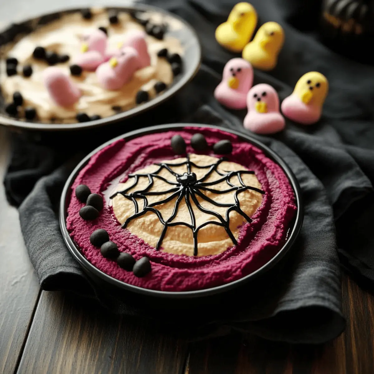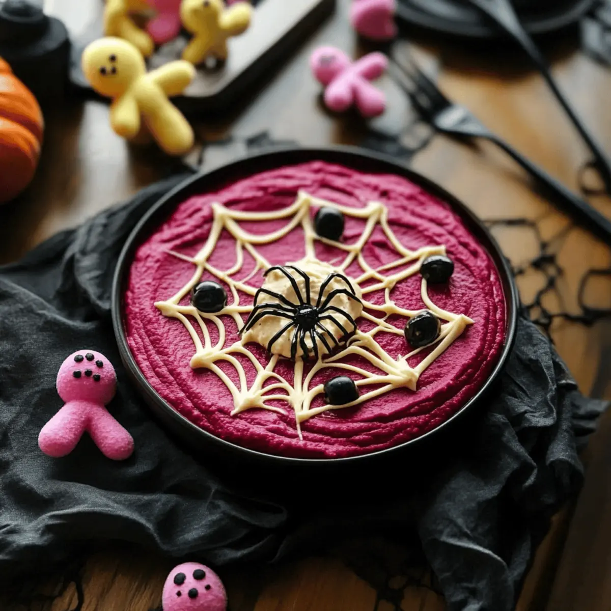 As the days grow shorter and the leaves begin to crunch underfoot, there’s an air of enchantment that beckons us into the kitchen. This Halloween, why not elevate your spooky celebrations with delightful treats that are as tasty as they are eye-catching? Our Bloody Beet Hummus with Cheese Web is here to steal the show! Not only is it a breeze to prepare—making it perfect for busy parents and party hosts—but it’s also a vibrant, healthy twist on traditional dips that will impress your guests. Paired with our whimsical Ghostly Yogurt Dip, these Halloween dips are sure to enchant everyone at the table. So, how will you make your Halloween gathering unforgettable this year? Why Choose Bloody Beet Hummus? Vibrant Color: Calling this dip “bloody” is no exaggeration! The striking hue of beetroot not only draws attention but adds a healthy punch to your Halloween spread. Easy Preparation: With just a few simple ingredients, you can whip up this delightful dip in no time—perfect for those last-minute party plans! Creative Presentation: The cheese web topping transforms a regular dip into a spooky masterpiece that your guests will be eager to try. Nutritious & Tasty: Packed with antioxidants and vitamins from beets, paired with the creaminess of cheese, this dip is both a flavorful and health-conscious choice. Crowd-Pleasing: Whether you’re entertaining kids or adults, everyone loves a good dip! This one not only tastes amazing but also brings smiles with its festive flair. For more fun Halloween-themed dips, check out our Grilled Cheese Burrito or try the Blackberry Lemon Cheesecake for something sweet! Bloody Beet Hummus Ingredients For the Hummus Beet – Provides a vibrant color and earthy flavor; canned beets can be used for quick prep. Tahini – Adds creaminess and nutty notes; you can swap it for sunflower seed butter for a nut-free option. Lemon Juice – Brightens the mixture with acidity; lime juice can also be a zesty alternative. Olive Oil – Enhances richness; avocado oil offers a lighter touch if desired. Garlic – Infuses depth; reduce or omit for a milder taste if garlic isn’t your favorite. For the Cheese Web Cream Cheese – Provides a creamy base for the web design; soften it for easier spreading. Sour Cream – Mix with cream cheese for additional tang; Greek yogurt can also be used for a lighter option. Black Olives – Perfect for creating spider shapes or other spooky decorations; feel free to use pimento-stuffed olives for extra color. This Bloody Beet Hummus with Cheese Web is not just a feast for the eyes—but also a nourishing addition to your Halloween festivities! Step‑by‑Step Instructions for Bloody Beet Hummus with Cheese Web Step 1: Prepare the Beet Hummus Begin by placing the cooked beets, tahini, lemon juice, garlic, and olive oil into a food processor. Blend these ingredients on high until you achieve a smooth and creamy consistency, about 2-3 minutes. Scrape down the sides as needed, and taste to adjust seasoning. Once it’s velvety, transfer the vibrant Bloody Beet Hummus to a serving bowl, setting the scene for a spooky delight. Step 2: Create the Cheese Web In a separate bowl, mix softened cream cheese and sour cream until well combined and smooth. Using a piping bag or a plastic bag with a small cut corner, carefully draw a spider web pattern on top of the beet hummus. You can use a toothpick to create a more intricate design if desired, adding a fun element to your Halloween presentation. Step 3: Decorate with Spooky Spiders Next, slice black olives to form the shapes of spiders, or use the whole olives for a more bold look. Place the olive spiders strategically on the cheese web, ensuring they stand out against the bright beet background. This fun decoration not only enhances the visual appeal but also adds a delicious touch to your Bloody Beet Hummus. Step 4: Serve and Enjoy Finally, arrange an assortment of dippers such as fresh vegetable sticks, pita chips, or crackers around the bowl of Bloody Beet Hummus with Cheese Web. This colorful and festive display will entice your guests as they gather around your Halloween table, ready to enjoy the delicious goodness you’ve prepared! Variations & Substitutions for Bloody Beet Hummus Feel free to get creative and make this dip your own with fun swaps and flavor enhancements! Nut-Free: Replace tahini with Sunflower Seed Butter for a creamy, nut-free alternative. It offers a lovely taste without worrying about allergens. Spicy Kick: Add a sprinkle of Cayenne Pepper or Chili Powder to the hummus for an exciting heat that complements the sweetness of the beets. Just a pinch can elevate your dip from standard to sensational! Herbaceous Twist: Stir in Chopped Fresh Herbs like dill or parsley to freshen up the flavor profile. This adds a delightful herbal note that brightens the entire dish. Dairy-Free Option: Use a combination of Coconut Cream and Cashew Cream for the cheese web. This gives a fantastic creaminess without any dairy, perfect for vegan gatherings. Flavor Boost: Mix in a teaspoon or two of Smoked Paprika for a depth of flavor and a little smokiness that pairs beautifully with the earthy beets. Trust me, your guests will be asking for the secret ingredient! Garlic-Free Version: Omit garlic for a milder taste and replace it with a bit of Cumin for a hint of warmth without the punch. This adjustment can be great if you’re serving the little ones! Decorative Fun: Instead of black olives, use Sliced Radishes to create spooky creatures on the cheese web. The bright color adds a pop against the red hummus while providing that crunch we all love. Sweet Twist: For a hint of sweetness, consider adding a drizzle of Honey or Maple Syrup to the hummus before serving. This adds an unexpected flavor that nicely balances the earthiness of the beets. With these variations, you can easily customize your Bloody Beet Hummus with Cheese Web to suit any crowd or occasion. And if you’re looking
