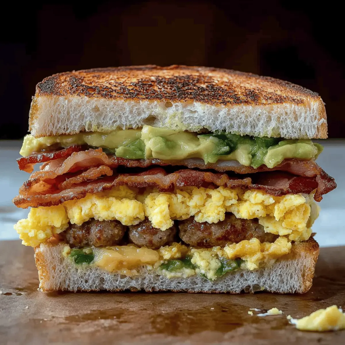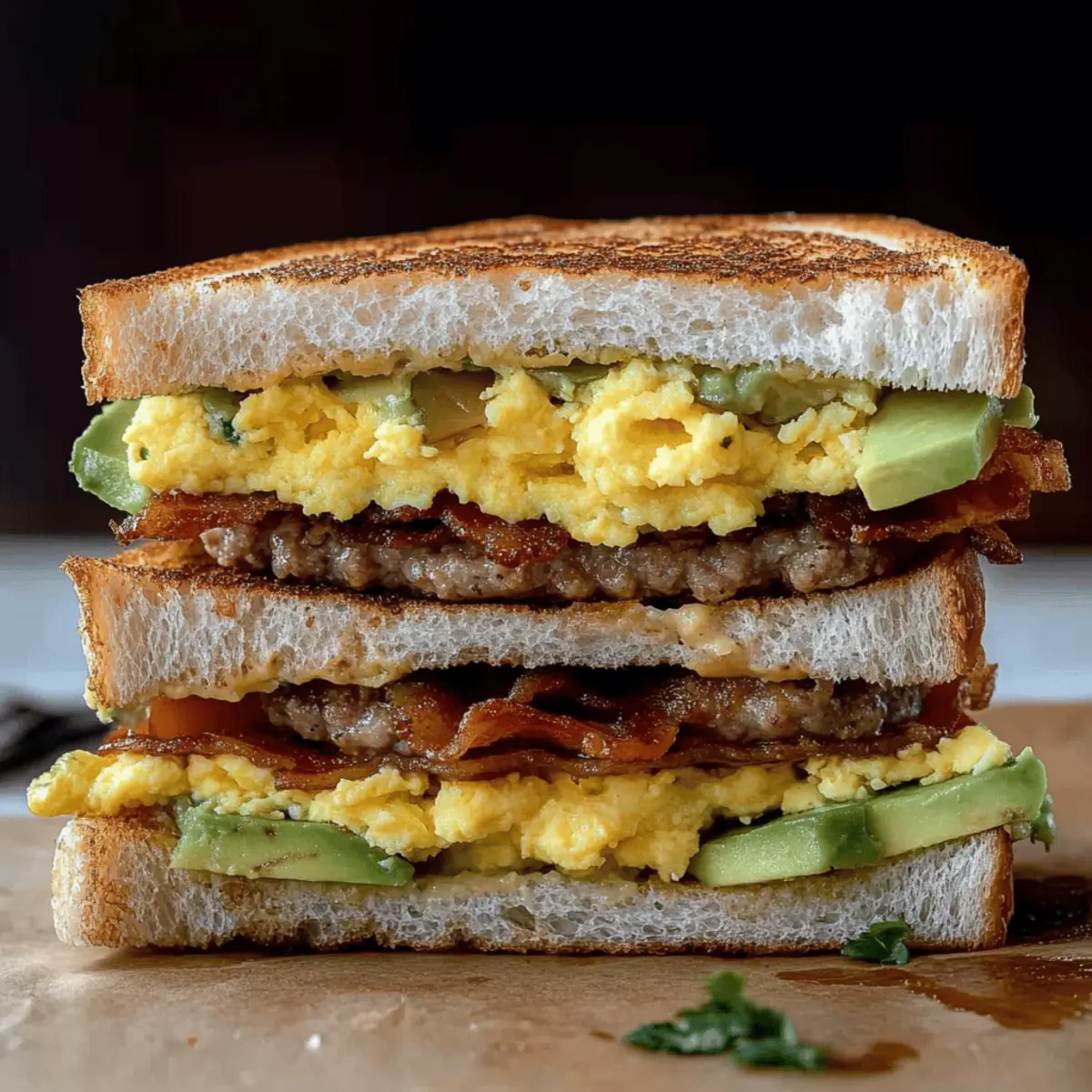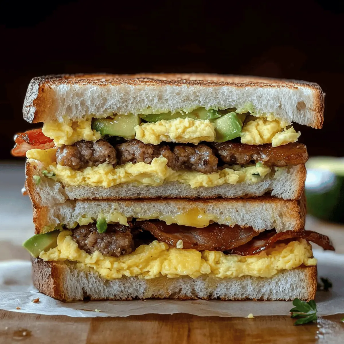 The aroma of sizzling bacon and buttery toast wafts through the kitchen, igniting memories of lazy weekend brunches with friends. Today, I’m excited to share my go-to Breakfast Club Sandwich, a hearty meal that turns any morning into a special occasion. This delightful creation layers fluffy scrambled eggs, melted cheese, and savory breakfast sausage between golden, crisp toast, all brought together with the rich flavor of cowboy butter. Not only is this sandwich customizable to suit your taste, but it’s also a fantastic crowd-pleaser that brings a touch of gourmet flair to your table. Whether you’re feeding a family or whipping up a solo treat, a hearty breakfast has never been easier or more satisfying. Ready to elevate your breakfast game? Let’s dive into the delicious details of this mouthwatering recipe! Why is this Breakfast Club Sandwich amazing? Hearty, filling goodness: This Breakfast Club Sandwich is perfect for those mornings when you need a substantial meal to kickstart your day! Flavorful cowboy butter: Infused with herbs and spices, cowboy butter elevates the taste to another level, making each bite memorable. Customizable delights: Whether you prefer turkey sausage for a healthier twist or pepper jack cheese for a spicy kick, you can tailor it to your taste! Quick assembly: Prepare your ingredients in advance for a speedy breakfast, or delight your guests on lazy weekends with this easy-to-make sandwich. A brunch-inspired classic: Impress friends and family with this gourmet twist on traditional breakfast plates—perfect for brunch gatherings or cozy mornings. Check out some fantastic pairing options, like Hashbrown Breakfast Casserole or a Sweet Potato Breakfast to complete your experience! Breakfast Club Sandwich Ingredients For the Sandwich Thick-Cut Bacon – Adds a crispy, savory flavor; feel free to substitute with turkey bacon for a leaner option. Ground Pork Sausage – Provides the essential meaty base, seasoned for flavor; homemade breakfast sausage is a great alternative. Mild Cheddar Cheese – For a creamy melt and rich taste; substitute with pepper jack for an extra spicy kick. Unsalted Butter – Used for cooking eggs and spreading on bread; essential for that buttery flavor. Large Eggs – Creates a fluffy texture and protein boost; fried eggs can also be swapped in for a different twist. Kosher Salt & Black Pepper – Essential seasonings to enhance flavor; use regular salt and pepper as substitutes if needed. White Bread – The canvas for your hearty meal; experiment with any type of bread you love. Avocado – Adds creaminess and nutrition; you can omit this for a simpler sandwich if desired. Cowboy Butter – The key flavor component infused with herbs and spices; don’t skip it, or substitute with aioli for a different flair. Step‑by‑Step Instructions for Breakfast Club Sandwich Step 1: Prepare Bacon Preheat your oven to 425°F (220°C) to get perfectly crispy bacon for your Breakfast Club Sandwich. Line a baking sheet with foil for easy cleanup, then arrange the thick-cut bacon in a single layer. Bake for 25–30 minutes until golden brown and crisp, watching closely towards the end to prevent burning. Once finished, transfer the bacon to a plate lined with paper towels to drain any excess fat. Step 2: Cook Sausage Patties While your bacon is cooking, form the ground pork sausage into patties larger than your bread slices. Heat a skillet over medium heat, and once hot, add the sausage patties, cooking for 3–4 minutes on each side until browned and their internal temperature reaches 160°F (71°C). In the last moments of cooking, place slices of mild cheddar cheese on top of the patties to melt into gooey perfection. Step 3: Scramble Eggs In the same skillet, reduce the heat slightly and add a pat of unsalted butter until melted and bubbling. Crack the large eggs into a bowl, seasoning with kosher salt and black pepper, then beat them lightly. Pour the eggs into the skillet and cook gently, stirring occasionally, until they thicken and no liquid remains, which should take about 3–5 minutes for fluffy scrambled eggs. Step 4: Assemble Sandwich Now it’s time to build your Breakfast Club Sandwich! Start by spreading a generous layer of cowboy butter on one side of each piece of toast. On the unbuttered side of one slice, layer the sausage patties, followed by crispy bacon, slices of creamy avocado, and the fluffy scrambled eggs. Top with another slice of toast, spread side up, and cut the sandwich into triangles for an elevated presentation. Step 5: Serve Immediately Once your hearty Breakfast Club Sandwich is assembled, serve it immediately for the best experience. Consider garnishing with fresh herbs or a side of your favorite breakfast sides like hash browns or fruit. Enjoy the delicious combination of flavors that this sandwich offers, making your morning feel like a delightful brunch! Storage Tips for Breakfast Club Sandwich Fridge: Store any leftover Breakfast Club Sandwich in an airtight container for up to 3 days to maintain freshness and flavor. Freezer: Wrap the sandwich tightly in plastic wrap and place it in a freezer-safe bag for freezing. It can last up to 2 months. Reheating: To reheat, thaw in the refrigerator overnight, then warm in a skillet over low heat until heated through, about 5-7 minutes, or use a microwave for a quicker option. Preparation Tips: For best results, prepare cowboy butter and bacon in advance so they can easily be added to sandwiches throughout the week. Expert Tips for the Best Breakfast Club Sandwich • Cook Bacon Ahead: Prepare your bacon in advance and store it in the refrigerator for a quick, easy assembly on busy mornings. • Gentle Egg Scramble: Scramble your eggs slowly and gently. This helps maintain their fluffiness and prevents them from becoming rubbery. • Secure with Toothpicks: Use toothpicks to secure the layers of your sandwich. This makes it easier to handle and prevents delic