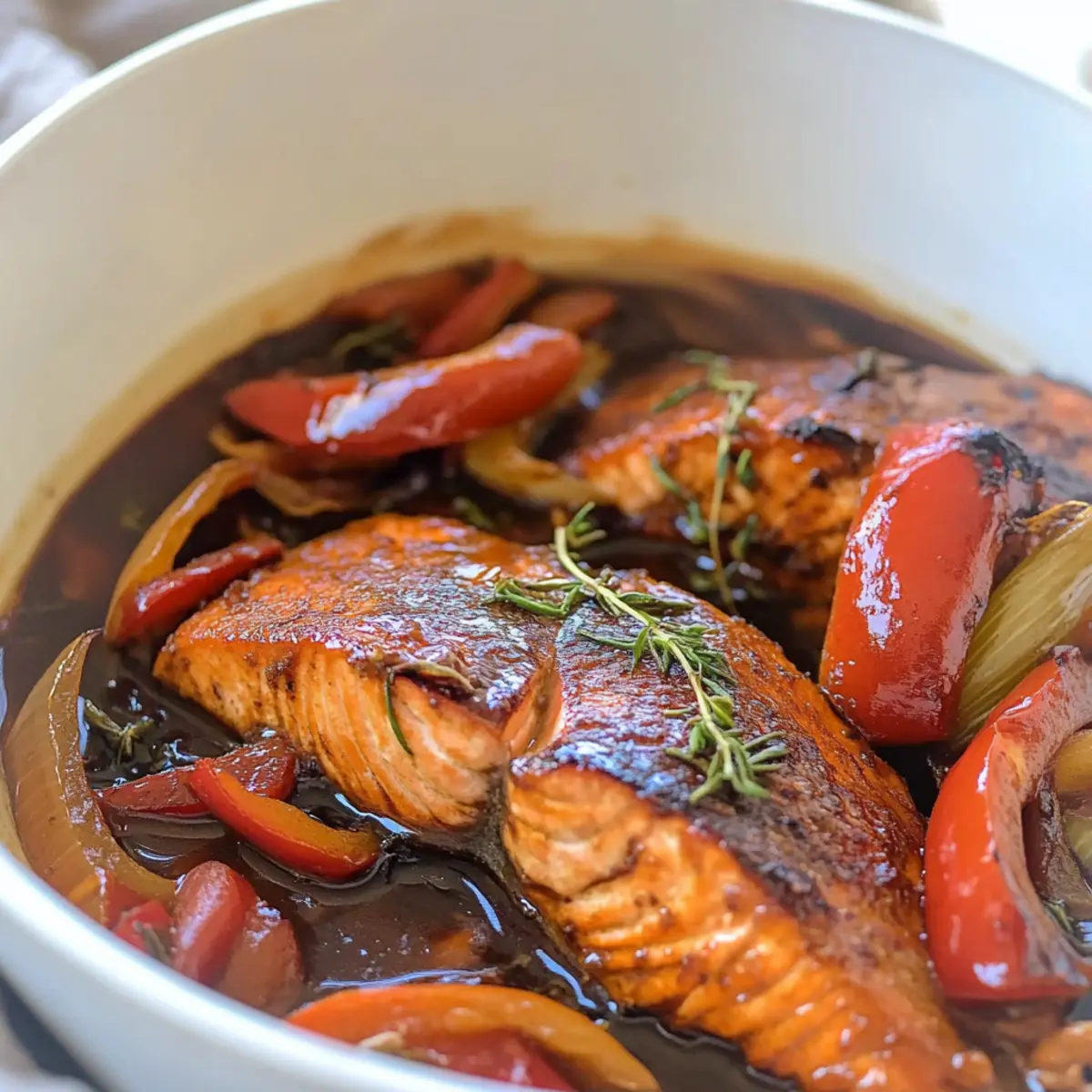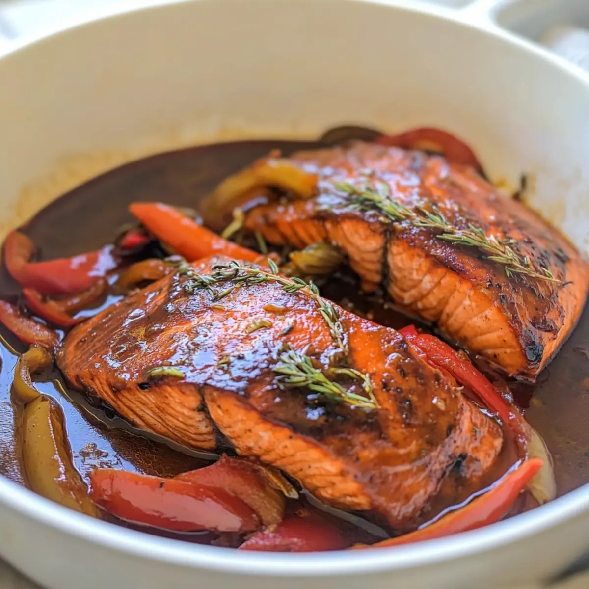 Absolutely! When choosing your salmon fillets, look for fresh, bright, and glossy skin without any dark spots. For the bell peppers, choose ones that are smooth, firm, and vibrant in color—avoid any with wrinkles or blemishes. Fresh herbs like thyme should be bright green and fragrant!
