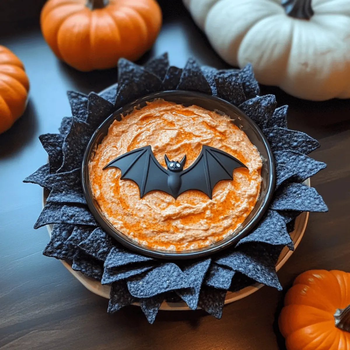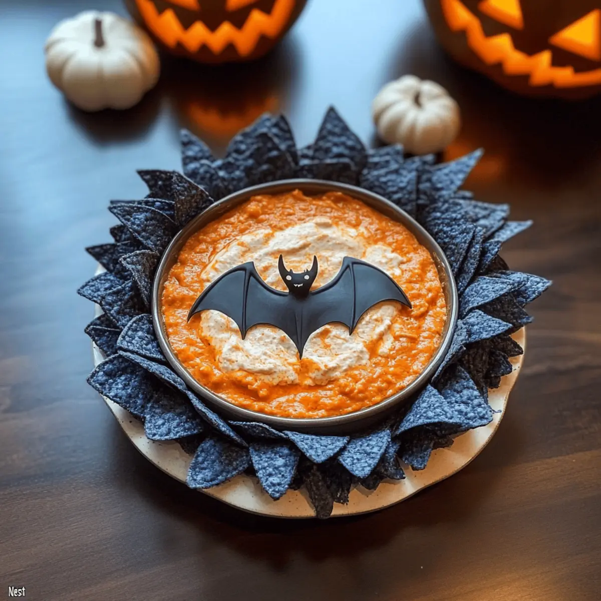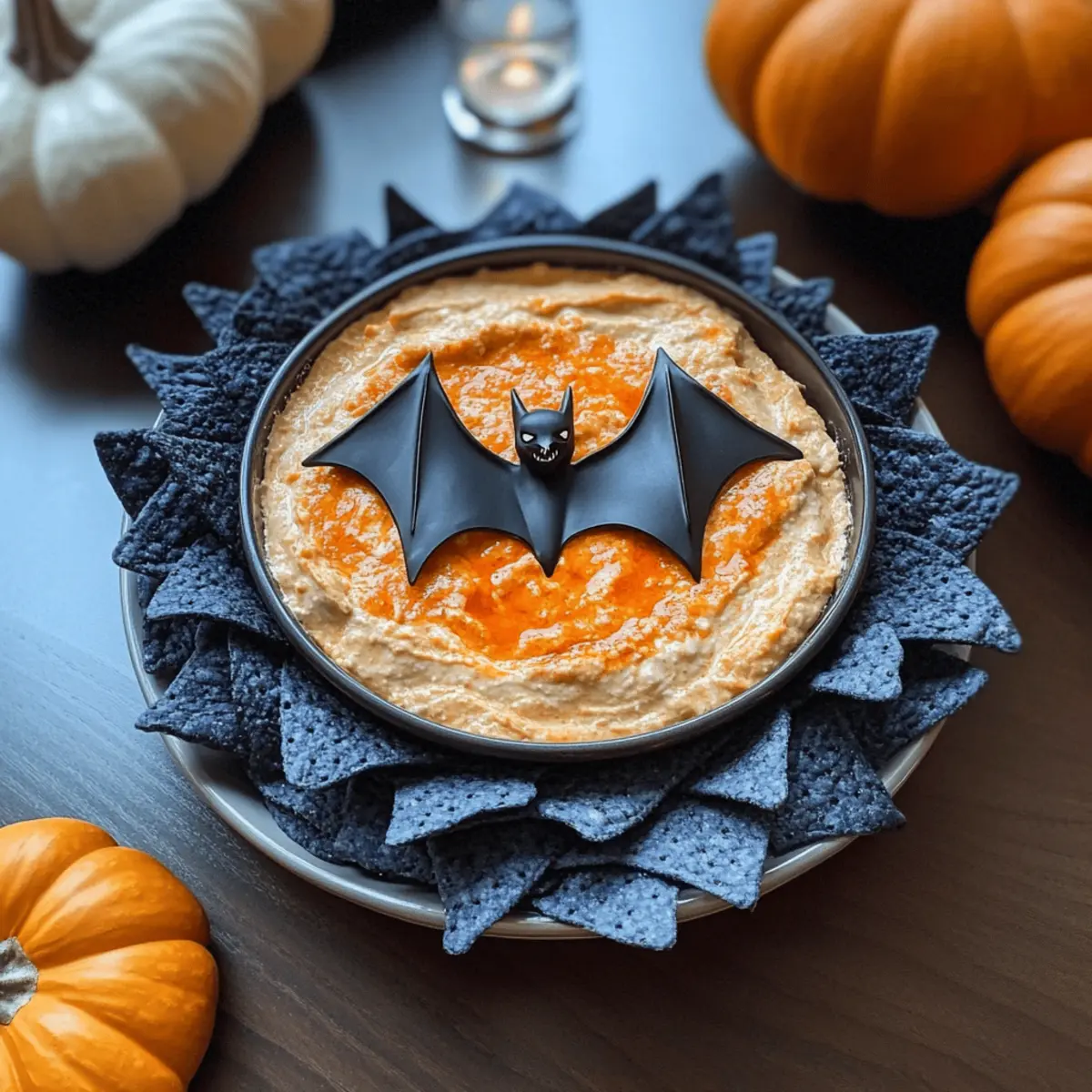 As Halloween approaches, I can’t help but think of all the spooky gatherings that await! This year, I’m excited to introduce a fun and easy recipe that will elevate your party spread: Spooky Buffalo “Bat Nest” Dip. The creamy, cheesy texture meets just the right amount of spice to create a delightful treat that your guests won’t be able to resist. Not only does it whip up in no time, but its striking presentation with blue corn chip “wings” and a cheeky plastic bat will bring a festive flair to any gathering. Perfect for dipping, this dish is a crowd-pleaser that combines comfort with creativity. So, are you ready to create a Halloween dip that’ll have everyone coming back for more? Let’s dive in! Why is This Dip a Halloween Hit? Irresistible Flavors: Combining creamy cheeses with spicy Buffalo sauce creates a dip bursting with flavor that will have your guests raving. Festive Presentation: Decorate with blue corn chip “wings” and a playful plastic bat to add that fun Halloween touch. Quick and Easy: This dip takes only a few minutes to prepare, making it a perfect last-minute addition to your spooky spread. Crowd-Pleasing Appeal: Perfectly shareable, this dish is a great fit for gatherings, offering a unique twist on classic flavors that everyone loves. Versatile Options: Try customizing your dip with extras, like chicken or different cheeses, for a personal touch. Looking for more party ideas? Check out the delicious flavors in our Pan Honey Buffalo recipe! Buffalo “Bat Nest” Dip Ingredients For the Dip Buffalo Sauce – Adds a spicy kick; choose a milder variety if you prefer less heat. Cream Cheese – Gives the dip its creamy texture; Neufchâtel can be a lighter substitute. Cheddar Cheese – Provides a rich flavor; opt for sharp cheddar for more tang or vegan cheese as an alternative. Sour Cream – Enhances creaminess; Greek yogurt can serve as a healthier option. For Serving Blue Corn Chips – Eye-catching and perfect for scooping; you can use regular tortilla chips if needed. Plastic Bat – A fun decorative touch that adds to the Halloween theme; it’s not edible but definitely adds a festive spirit! Step‑by‑Step Instructions for Buffalo “Bat Nest” Dip Step 1: Preheat the Oven Begin by preheating your oven to 350°F (175°C). This step is crucial for ensuring that your Buffalo “Bat Nest” Dip bakes evenly and comes out perfectly bubbly. While the oven warms up, gather all your ingredients and equipment, including a mixing bowl and an oven-safe baking dish, to keep your cooking space organized. Step 2: Mix the Ingredients In a mixing bowl, combine the Buffalo sauce, cream cheese, cheddar cheese, and sour cream. Use a hand mixer or a sturdy spatula to blend them together until the mixture is smooth and creamy. This should take about 3-5 minutes. The goal is to create a rich base that melds the spicy and cheesy flavors seamlessly. Step 3: Transfer to Baking Dish Once your dip mixture is well combined, transfer it to an oven-safe dish. Spread the mixture evenly with a spatula to ensure even baking. The dip should fill the dish to about three-quarters full to allow space for bubbling. This preparation keeps the Buffalo “Bat Nest” Dip looking great when served. Step 4: Bake the Dip Place your dish in the preheated oven and bake for approximately 20 minutes. You’ll know it’s done when the edges are hot and bubbling but not browned. Keep an eye on it to achieve that perfect creamy consistency without overbaking, ensuring your dip is irresistibly gooey. Step 5: Garnish & Serve Once baked, carefully remove the dish from the oven. Let it sit for a few minutes to cool slightly. Arrange the blue corn chips around the edge of the dip, creating a nest-like look. Top the dip with a playful plastic bat for a spooky touch, and serve it warm for your Halloween gathering, where it will surely be a hit! Make Ahead Options These Spooky Buffalo “Bat Nest” Dip is perfect for busy home cooks looking to save time without sacrificing flavor! You can assemble the entire dip up to 24 hours in advance; simply mix the Buffalo sauce, cream cheese, cheddar cheese, and sour cream, then spread it into your baking dish. Cover tightly with plastic wrap and refrigerate to keep it fresh. This allows the flavors to meld beautifully! When you’re ready to serve, just bake it straight from the fridge for about 20 minutes until bubbling. This make-ahead option not only reduces last-minute stress but also guarantees a deliciously creamy dip that will impress your guests! Expert Tips for Buffalo “Bat Nest” Dip Creaminess Matters: Use full-fat cream cheese for the smoothest texture possible. Lower fat versions can lead to a grainy dip. Watch the Oven: Avoid overbaking; focus on bubbling, not browning, to keep the dip creamy and luscious. Heat Adjustments: Tailor the spice level by adjusting the amount of Buffalo sauce; always taste as you mix for desired heat. Layering Flavors: Enhance richness by adding pre-cooked shredded chicken or extra cheddar cheese to elevate your Buffalo “Bat Nest” Dip. Make Ahead: Assemble your dip a day prior, refrigerate, and bake just before serving for a stress-free gathering! What to Serve with Spooky Buffalo “Bat Nest” Dip Nothing amps up a Halloween party like a spicy, cheesy dip paired with vibrant sides and delightful drinks! Veggie Sticks: Crisp carrots and celery add a refreshing crunch, balancing the rich flavors of the dip beautifully. Pretzel Bites: Soft, salty pretzel bites are perfect for dipping, offering a satisfying contrast to the creamy texture. Cheesy Garlic Bread: This warm, cheesy side brings an indulgent twist, ensuring your guests enjoy every moment. Stuffed Mini Peppers: Colorful, stuffed peppers add a sweet taste and a hint of spice, complementing the Buffalo flavors perfectly. Apple Slices: Crisp apple slices dipped in a touch of caramel provide a sweet contrast to the spiciness of the dip. Sparkling Cide
