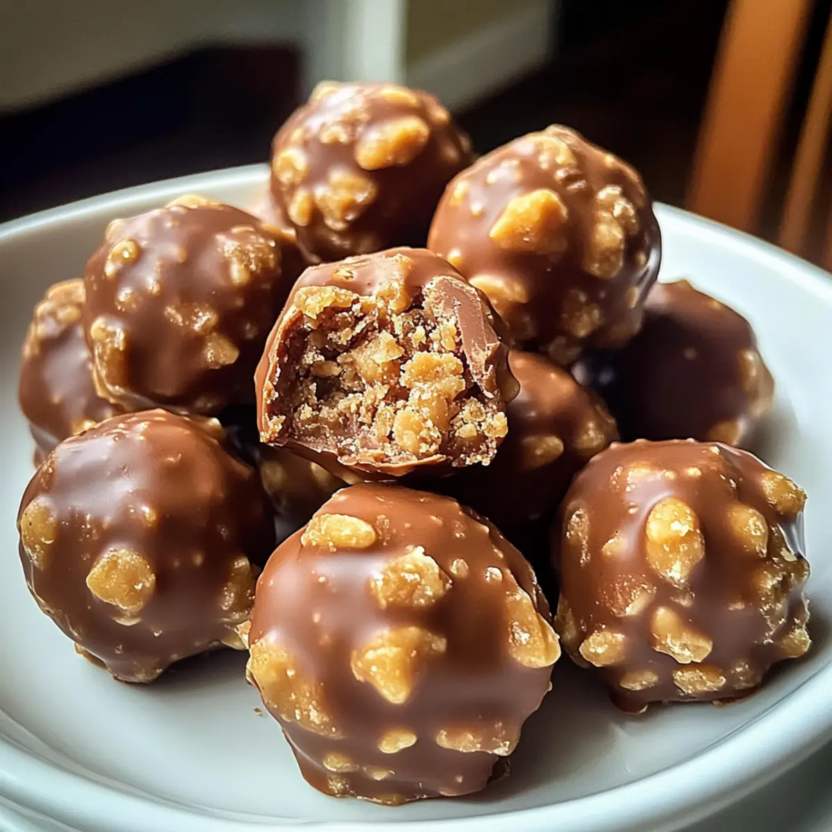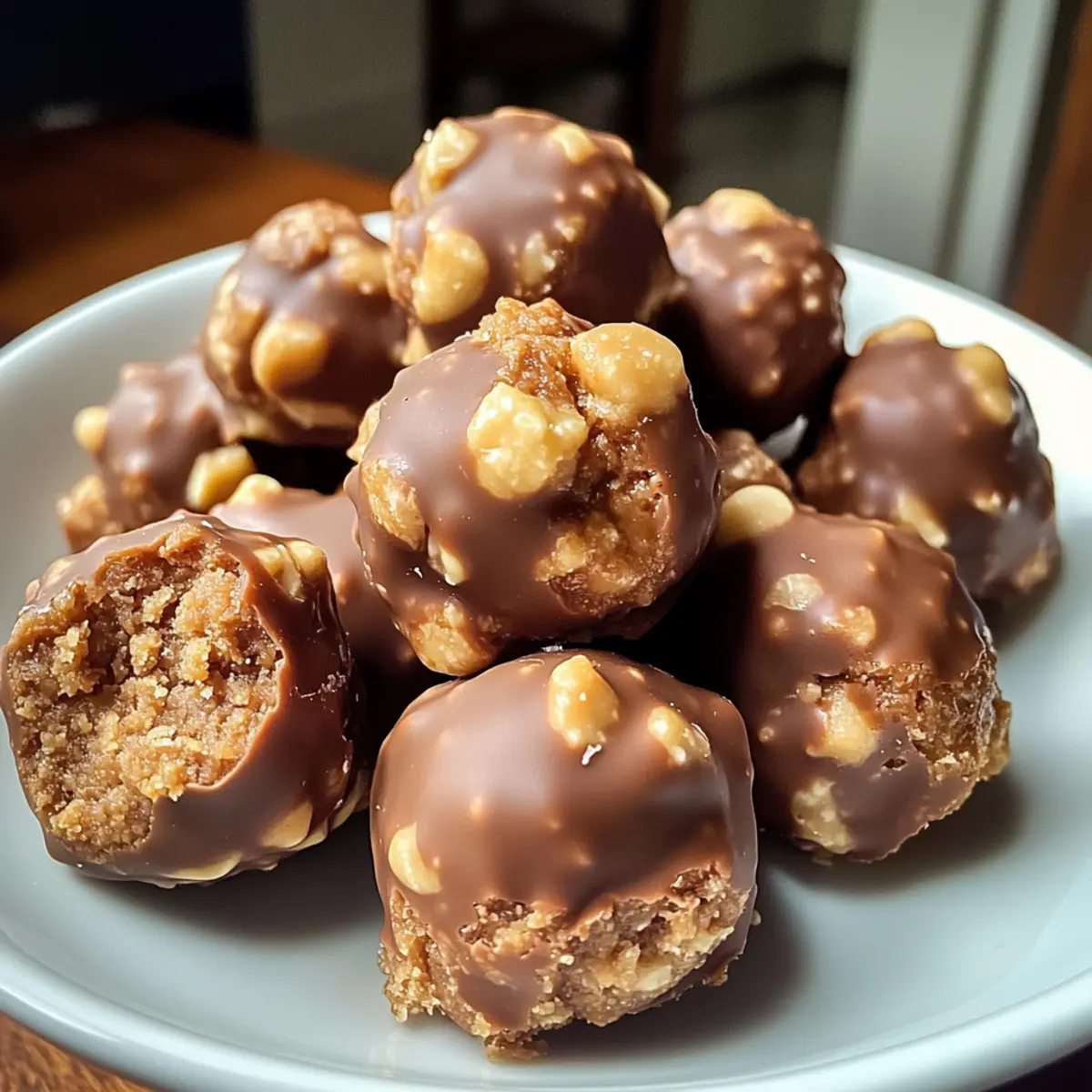 With a tantalizing blend of nostalgic flavors and effortless preparation, these Irresistible No-Bake Butterfinger Balls are a game-changer in the dessert arena. I found myself captivated by the comforting combination of creamy peanut butter, crunchy graham crackers, and the iconic taste of Butterfinger bars, creating an easy dessert that feels utterly indulgent. The best part? These delicious little bites require no baking—perfect for those busy nights when you crave something sweet without turning on the oven. Whether you’re hosting a gathering or just seeking a delightful treat to enjoy at home, these Butterfinger Balls are sure to please both fans of classic sweets and adventurous eaters alike. Ready to try your hand at this simple yet crowd-pleasing delight? Let’s dive into this delightful recipe! Why are Butterfinger Balls a must-try? Nutty Happiness: These Butterfinger Balls are a dream come true for any peanut butter lover, striking the perfect balance of sweet and savory. Effortless Treat: With just a few simple ingredients and no baking involved, they come together in a snap, saving you precious time. Crowd-Pleaser: Whether at a party or a dinner, these little bites steal the show, making them perfect to serve alongside tempting treats like Oreo Balls Melt or Chicken Piccata Meatballs. Customizable Flavors: Feel free to experiment! Swap in different candy bars or add festive garnishes to match any occasion. Satisfying Crunch: Each delightful bite combines a creamy center with a pleasing crunch, giving you that satisfying texture contrast that keeps you coming back for more. Butterfinger Balls Ingredients • Discover what makes these Butterfinger Balls truly irresistible! For the Batter Softened Butter – Enhances creaminess and helps bind the mixture; use regular butter for the best flavor. Vanilla Extract – Adds aromatic flavor; for more depth, pure vanilla is recommended over imitation. Peanut Butter – Acts as the base; choose regular peanut butter for optimal texture. Graham Cracker Crumbs – Provides texture and bulk; you can substitute with crushed cookies for a twist. Powdered Sugar – Sweetens and gives structure; adjust the amount to your desired sweetness. Butterfinger Bars (Crushed) – Gives unique flavor and crunch; substitute with a similar candy bar if desired. For the Coating Chocolate Bark or Chocolate Chips – Coats the exterior; chocolate bark is preferred for a smoother finish. Optional Garnishes Additional Crushed Butterfinger Bars – Use for topping to enhance flavor and visual appeal. Festive Sprinkles – Perfect for celebrations or themed events to add a pop of color. Coarse Sea Salt – Sprinkle on top for a delightful sweet-salty contrast. Step‑by‑Step Instructions for Butterfinger Balls Step 1: Prepare the Dough In a large mixing bowl, combine 1 cup of softened butter and 1 cup of creamy peanut butter. Using an electric mixer, beat the mixture on medium speed until it becomes smooth and creamy, about 2 minutes. This will form the base for your Butterfinger Balls, ensuring a delightful texture when you take a bite. Step 2: Add Flavor Next, pour in 1 teaspoon of vanilla extract into the peanut butter mixture. Mix on low speed until fully incorporated, roughly 30 seconds. This step adds a warm, aromatic note that enhances the overall flavor of the Butterfinger Balls and complements the sweetness of the confection. Step 3: Mix in Sweetness Gradually add 3 cups of powdered sugar to the bowl while mixing on low speed. Allow the sugar to blend in gently without creating a cloud of dust, about 1-2 minutes. The mixture should start to thicken, becoming a sticky dough that holds together well, making it perfect for shaping into balls. Step 4: Add Crunch Gently fold in 1 ½ cups of graham cracker crumbs and 1 cup of crushed Butterfinger bars using a spatula. Be careful not to over-mix; aim for an even distribution of the crunchy ingredients throughout the dough. This step introduces delightful textural contrast to your Butterfinger Balls, with bits of sweetness and crunch peppered throughout. Step 5: Shape the Balls Scoop about 1 to 1½ tablespoons of the mixture and roll it into a ball using your hands. Place each ball on a parchment-lined cookie sheet, ensuring they are spaced about an inch apart. Aim to create uniform sizes for even coating later. This will yield approximately 24-30 Butterfinger Balls, depending on your sizing. Step 6: Chill Transfer the cookie sheet to the freezer and chill the balls for about 30 minutes, or until they are firm to the touch. This step is essential, as it helps the Butterfinger Balls maintain their shape when coating them with chocolate and ensures a delightful melt-in-your-mouth experience. Step 7: Melt Chocolate While the balls are chilling, prepare the chocolate coating by placing 12 ounces of chocolate bark or chocolate chips in a microwave-safe bowl. Heat in the microwave in 30-second intervals, stirring well between each, until fully melted and smooth. This process typically takes about 1 to 1½ minutes, ensuring the chocolate stays glossy and dip-ready. Step 8: Coat the Balls Once the Butterfinger Balls have chilled, dip each one into the melted chocolate, using a fork to coat thoroughly. Allow any excess chocolate to drip off before placing the balls back onto the parchment-lined sheet. Aim for an even coating to achieve a shiny, appealing finish on each Butterfinger Ball. Step 9: Garnish and Set If desired, sprinkle the coated Butterfinger Balls with additional crushed Butterfinger bars, festive sprinkles, or a pinch of coarse sea salt while the chocolate is still wet. Once garnished, let the chocolate set at room temperature or refrigerate for about 15 minutes until hardened. Your delightful Butterfinger Balls will be ready to serve! What to Serve with Butterfinger Balls Let the irresistible flavors of these sweet treats inspire a complete dessert spread that captivates your guests and satisfies y