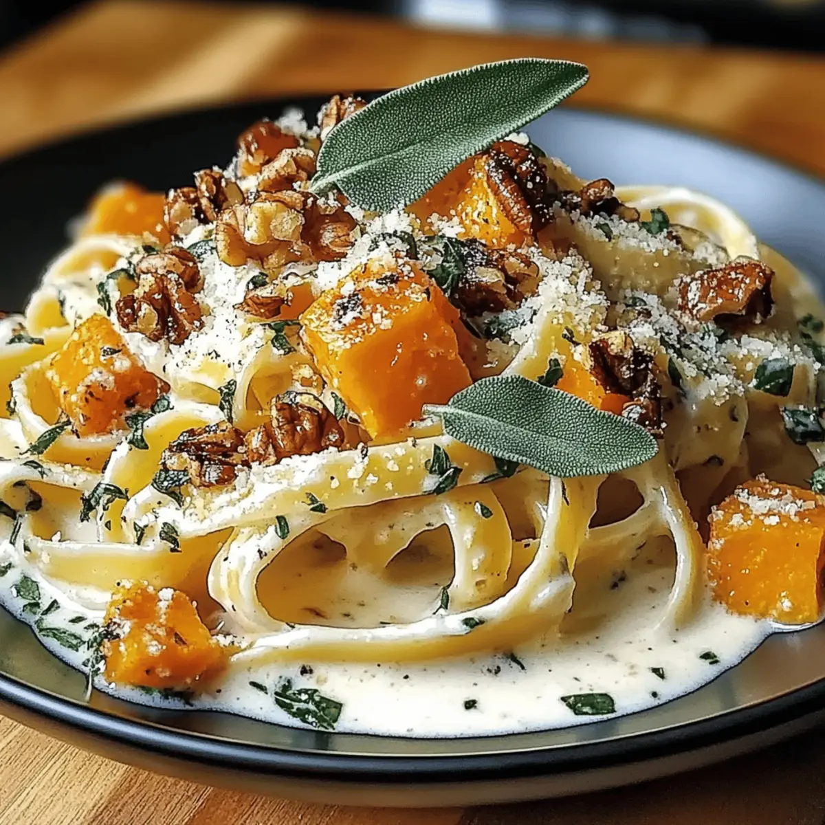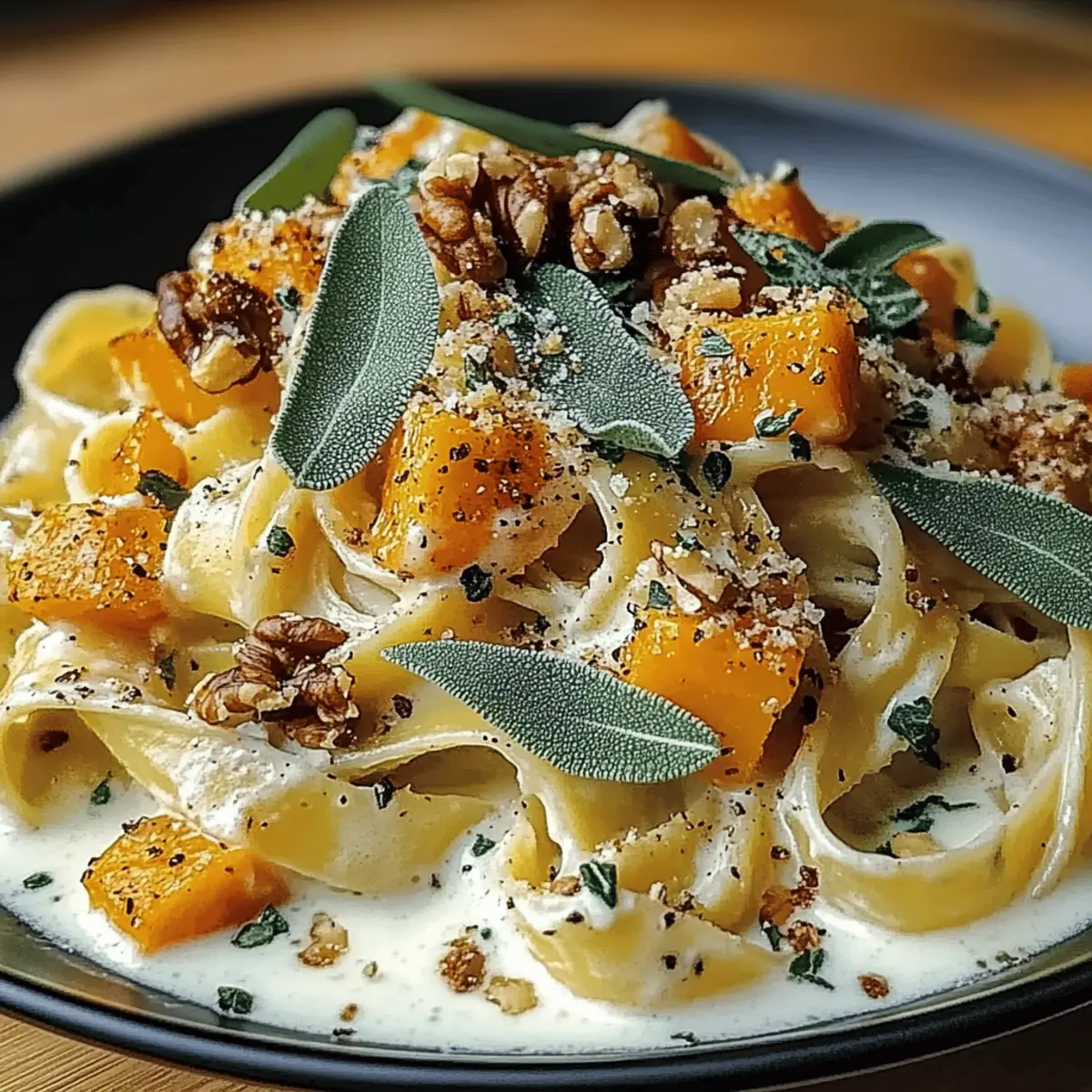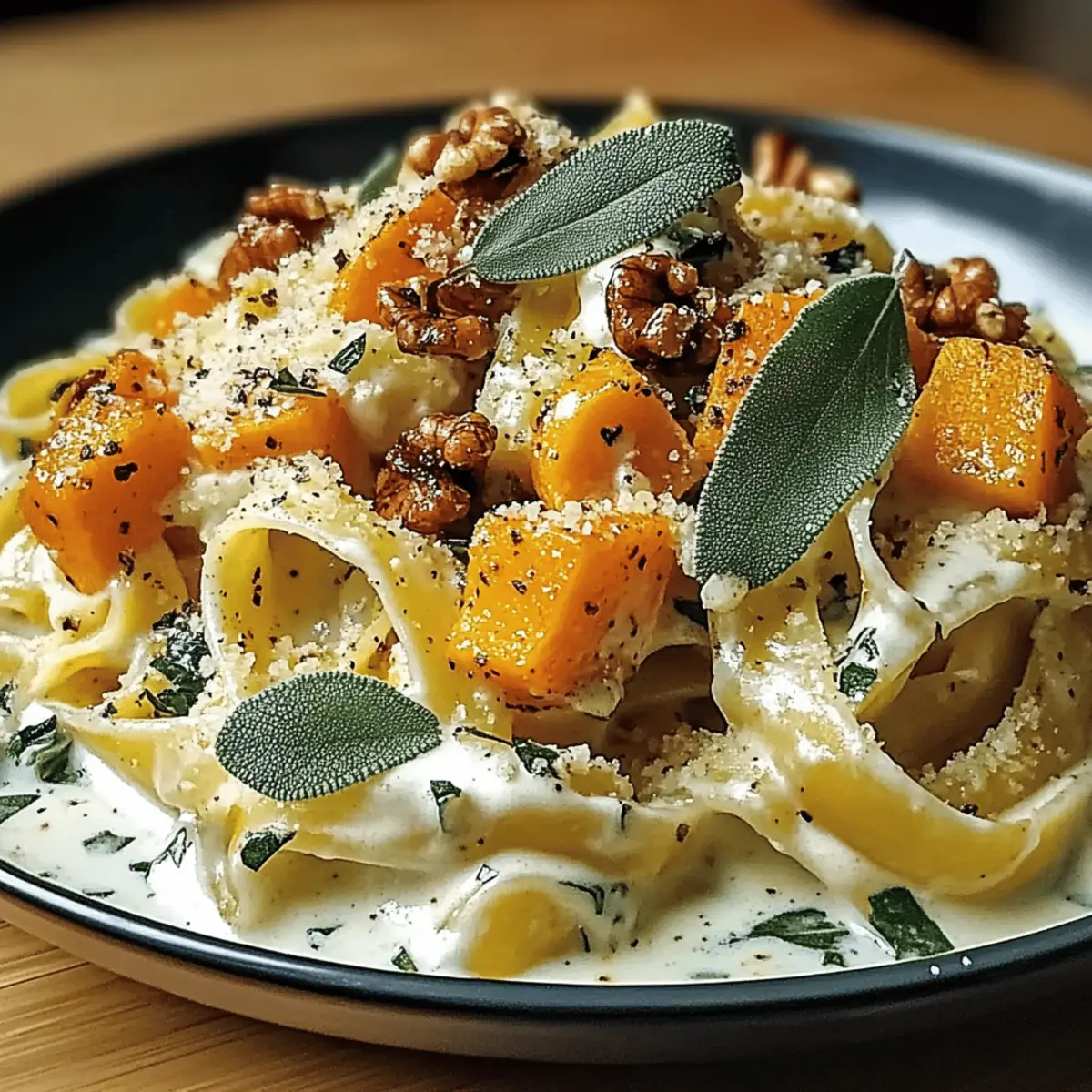 Stepping into my kitchen feels like uncovering a hidden treasure, especially when autumn rolls around. The air is filled with that special warmth that invites cozy meals, and there’s no better way to celebrate the season than with this Savory Butternut Squash & Sage Pasta. The creamy sauce, combined with the sweet, roasted squash and earthy sage, creates a comforting dish that’s perfect for chilly nights. Not only is it easy to whip up after a long day, but it also serves as an impressive centerpiece for gatherings with friends or family. Plus, it offers a healthy twist that makes indulging guilt-free. Are you ready to explore the flavors of fall with me? Let’s dive into this delightful recipe! Why is this pasta recipe a must-try? Creamy Comfort: This Savory Butternut Squash & Sage Pasta offers a luscious, creamy sauce that wraps its arms around you like a warm hug on a chilly evening. Seasonal Goodness: It captures the essence of autumn with wholesome ingredients, ensuring every bite is packed with valuable nutrients. Effortless Elegance: Featuring straightforward steps, this dish is perfect for both novice cooks and seasoned chefs, making it a delightful addition to any dinner table. Crowd-Pleaser: Whether it’s a special occasion or a cozy family night, this pasta is sure to impress, turning any meal into a celebration. Versatile Variations: Want to mix things up? Feel free to try variations like serving it with a fresh citrus salad or swap in gluten-free pasta for those with dietary restrictions! For more delightful recipes, check out my Cajun Crab Pasta and Garlic Parmesan Chicken Pasta. Butternut Squash & Sage Pasta Ingredients For the Pasta Pasta (12 oz / 340g) – Use fettuccine or penne for the best texture in your Butternut Squash & Sage Pasta. For the Sauce Butternut Squash (2 cups, diced) – Adds a natural sweetness and creamy richness; choose firm squash for better results. Olive Oil (3 tablespoons) – Helps roast the squash to perfection; you can substitute with avocado oil if desired. Onion (1 small, finely chopped) – Brings depth and sweetness; shallots work well as a milder replacement. Garlic (3 cloves, minced) – Infuses the dish with a fragrant aroma; always opt for fresh garlic when you can! Fresh Sage (1 teaspoon, finely chopped or ½ teaspoon dried) – Delivers earthy flavors that embody autumn; fresh is best for maximum flavor. Red Pepper Flakes (½ teaspoon, optional) – A hint of heat; leave it out if you prefer a milder dish. Salt and Pepper – Crucial for seasoning; adjust to your personal taste. Vegetable Broth (½ cup) – Adds depth to your sauce; for non-vegetarians, chicken broth is a great option. Heavy Cream (½ cup) or Coconut Milk – Provides creamy texture for the sauce; opt for coconut milk for a dairy-free twist. Grated Parmesan Cheese (½ cup, plus extra for serving) – Enhances richness; leave it out for a vegan adaptation or substitute with nutritional yeast. Toasted Walnuts (¼ cup, roughly chopped) – Perfect for adding crunchy texture and healthy fats; pine nuts can be used for variety. Fresh Sage Leaves – For elegant garnishing that elevates the presentation and adds extra flavor. Now that you have the ingredients ready, you’re one step closer to enjoying a cozy bowl of Savory Butternut Squash & Sage Pasta! Step‑by‑Step Instructions for Savory Butternut Squash & Sage Pasta Step 1: Preheat the Oven Begin by preheating your oven to 400°F (200°C). This high temperature will help roast the butternut squash to perfection, allowing it to caramelize while becoming tender. Use a reliable oven thermometer if needed, ensuring you create an ideal environment for roasting that brings out the natural sweetness in the squash. Step 2: Prepare the Butternut Squash While the oven is heating, peel and cube the butternut squash into 1-inch pieces. Spread the cubes evenly on a baking sheet, then drizzle with olive oil, salt, and pepper. Use your hands to toss everything together, making sure the squash is well coated. Roast them in the preheated oven for 25–30 minutes, or until the edges are golden brown and they are fork-tender. Step 3: Cook the Pasta Next, bring a large pot of salted water to a rolling boil over high heat. Add your choice of pasta, either fettuccine or penne, and cook until al dente, following the package instructions—usually around 8–10 minutes. Before draining, reserve about 1 cup of the starchy pasta water, which will help create a creamy sauce later. Drain the pasta and set it aside. Step 4: Sauté the Aromatics In a large skillet, heat the remaining olive oil over medium heat. Once hot, add the finely chopped onion and sauté for about 5 minutes, stirring occasionally, until it turns translucent. Add the minced garlic, chopped sage, and red pepper flakes. Continue cooking for another 1–2 minutes until fragrant, stirring to prevent the garlic from burning, and letting those lovely aromas fill your kitchen. Step 5: Make the Sauce Add the roasted butternut squash and vegetable broth to the skillet. Using a fork or masher, gently mash some of the squash for added texture. Stir in the heavy cream (or coconut milk for a dairy-free option) and grated Parmesan cheese, allowing everything to blend beautifully. If the sauce appears too thick, gradually incorporate some of the reserved pasta water until you reach your desired consistency. Step 6: Combine Pasta and Sauce Add the cooked pasta to the skillet, tossing it gently to ensure each piece is well coated in the creamy butternut squash and sage sauce. Continue to cook for an additional minute over low heat to allow the flavors to meld together. Taste and adjust the seasoning with salt and pepper as needed. Step 7: Serve and Garnish Now it’s time to plate your delightful Savory Butternut Squash & Sage Pasta. Serve it immediately, garnishing each bowl with toasted walnuts for added crunch and freshly torn sage leaves for a beautiful presentation. This dish is