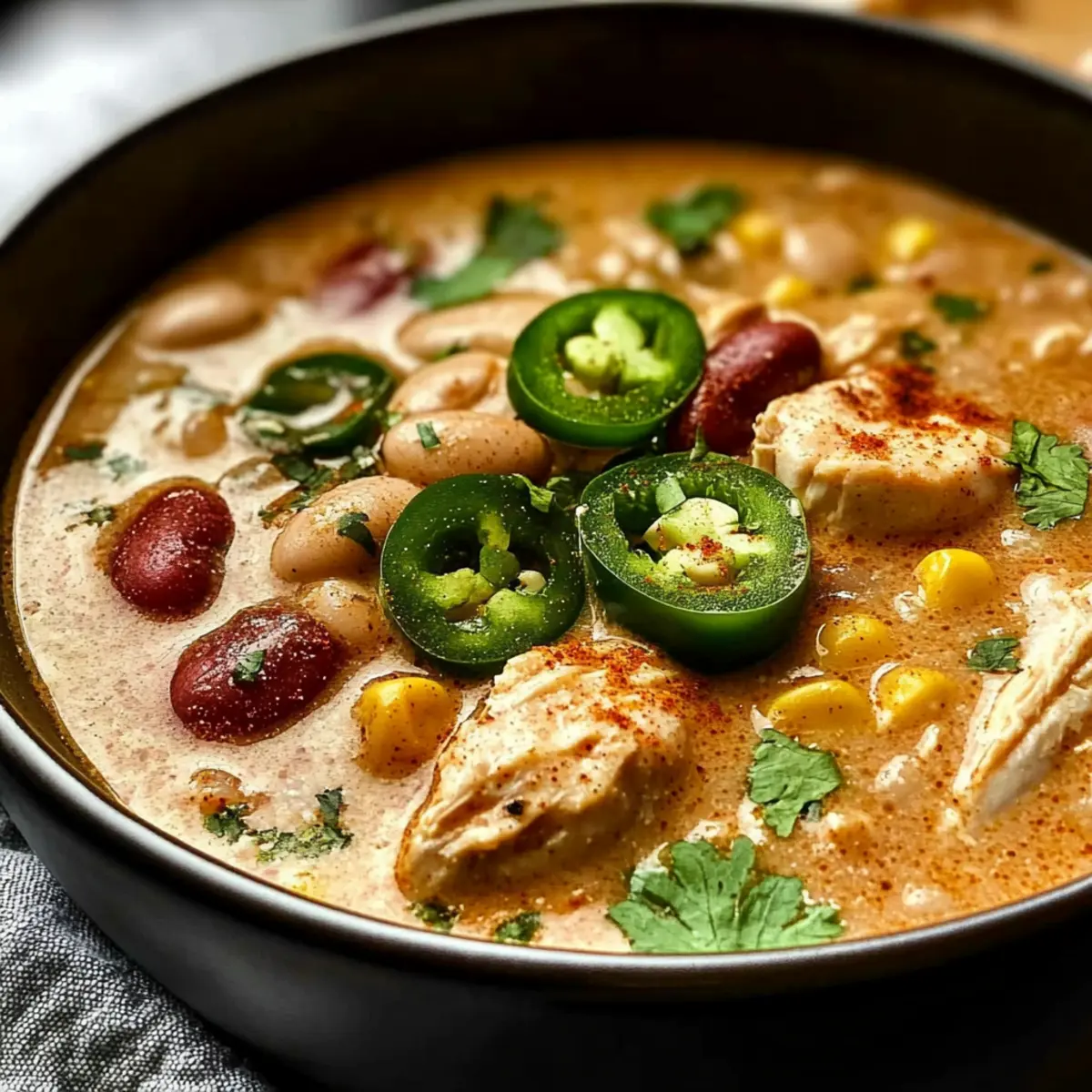 As the aroma of simmering spices fills my kitchen, I can’t help but smile at the thought of my favorite comfort dish: Cajun White Chicken Chili. This creamy, flavorful concoction melds tender shredded chicken with a likable, velvety broth and an exciting medley of Louisiana spices. What truly sets this chili apart is its light, yet satisfying base, ensuring it’s a cozy companion for any weeknight dinner or festive gathering. Plus, it’s easily customizable—depending on your spice tolerance and preferred toppings, you can make it as mild or as fiery as you like. With just a few ingredients and a sprinkle of creativity, you can whip up a crowd-pleaser that not only warms your soul but also makes meal prep a breeze. Curious to dive into this delicious bowl of comfort? Let’s get cooking! Why is Cajun White Chicken Chili special? Creamy Comfort: This chili features a luscious velvety broth that wraps around tender chicken, making each bite a delightful experience. Customizable Heat: Adjust the spice levels to suit your taste; whether you prefer a gentle warmth or a fiery kick, it can be tailored just for you. Nutritious Ingredients: Packed with protein and fiber from beans and chicken, it’s a wholesome meal that doesn’t compromise on flavor. Quick and Easy: With a straightforward preparation method, you can whip up this dish in no time, perfect for busy weeknights or spontaneous gatherings. Crowd-Pleasing Appeal: Everyone loves a comforting bowl of chili! Pair it with some crusty bread or Garlic Butter Chicken for a complete meal that will have your guests raving. Cajun White Chicken Chili Ingredients Discover the key ingredients behind this flavorful dish! For the Base Olive Oil – Essential for sautéing and adds richness; substitute with canola or vegetable oil if needed. Onion – Provides a flavorful foundation; yellow onion adds sweetness while red onion offers sharper notes. Bell Peppers – Adds sweetness and vibrant colors; feel free to use any color or poblano for a milder heat. Garlic – Enhances overall flavor; freshly minced garlic is best, but garlic powder works in a pinch. Boneless, Skinless Chicken Breasts – The star protein; consider using rotisserie chicken for quicker preparation. For the Chili Cajun Seasoning – Delivers the signature spice blend; adjust the amount according to your taste, or use homemade for a personal touch. Cumin – Infuses a warm earthiness; can be omitted or swapped with coriander for a fresh twist. Smoked Paprika – Contributes a depth of smoky flavor; substitute with regular paprika for less smokiness. Cayenne Pepper (Optional) – Adds heat; omit for a milder dish or adjust based on your spice preference. Chicken Broth – Forms the soup base; opt for low-sodium or homemade options for a healthier meal. Great Northern Beans – Adds heartiness and fiber; can be replaced with cannellini or navy beans if needed. Diced Green Chilies – Contributes extra flavor and heat; use fresh jalapeños for more spice. Frozen Corn – Introduces sweetness and texture; canned corn is fine but remember to drain it first. For Extra Creaminess Heavy Cream or Sour Cream – Adds a luxurious richness; for lighter options, Greek yogurt works beautifully. For Seasoning and Garnishing Salt and Pepper – Essential for bringing out flavors; adjust according to personal preference. Fresh Cilantro – Brightens up the dish; adds a refreshing note when used as a garnish. Shredded Cheddar Cheese – Melts upon serving, enhancing the chili’s richness. Sour Cream or Greek Yogurt – Adds tanginess and extra creaminess; perfect for topping. Lime Wedges – Serve alongside for a zesty squeeze that elevates the dish. Now that you have all the ingredients laid out, it’s time to create a bowl of Cajun White Chicken Chili that will warm your heart and satisfy your taste buds! Step‑by‑Step Instructions for Cajun White Chicken Chili Step 1: Prepare Vegetables Heat 2 tablespoons of olive oil in a large pot over medium heat. Once shimmering, add one chopped onion and one diced bell pepper, sautéing for 5-7 minutes until they become tender and translucent. Stir in 3 minced garlic cloves and cook for an additional minute until fragrant, filling your kitchen with delicious aromas. Step 2: Cook Chicken Incorporate 1 pound of boneless, skinless chicken breasts into the pot, seasoning with 2 tablespoons of Cajun seasoning, 1 teaspoon of cumin, 1 teaspoon of smoked paprika, and optional cayenne pepper for heat. Stir well and cook for 5-7 minutes until the chicken is no longer pink on the outside. This step ensures the chicken absorbs all the wonderful flavors. Step 3: Simmer Chili Pour in 4 cups of chicken broth, followed by 1 can of drained Great Northern beans and 1 can of diced green chilies. Scrape the bottom of the pot to incorporate any tasty bits that have stuck. Stir everything together until well combined, then bring the mixture to a boil over high heat. Step 4: Simmering Once boiling, reduce the heat to low and cover the pot. Let your Cajun White Chicken Chili simmer for 30 minutes to 1 hour, allowing the flavors to meld together beautifully. Check occasionally, giving it a stir, and enjoy the warming spices that fill the air as it cooks. Step 5: Add Corn After your chili has simmered, stir in 1 cup of frozen corn and heat it through for about 5 minutes. This step adds a sweet burst of flavor and a delightful texture, making your Cajun White Chicken Chili even more satisfying. Step 6: Creaminess (Optional) For an extra-rich flavor, stir in ½ cup of heavy cream or sour cream, creating a creamy, luscious texture. Adjust the quantity depending on your preference; this optional step will elevate your chili, making it even more comforting and delightful. Step 7: Season Taste your chili and adjust the seasoning with salt and pepper according to your liking. This final adjustment can really enhance the dish, making sure your Cajun White Chicken Chili is perfectl