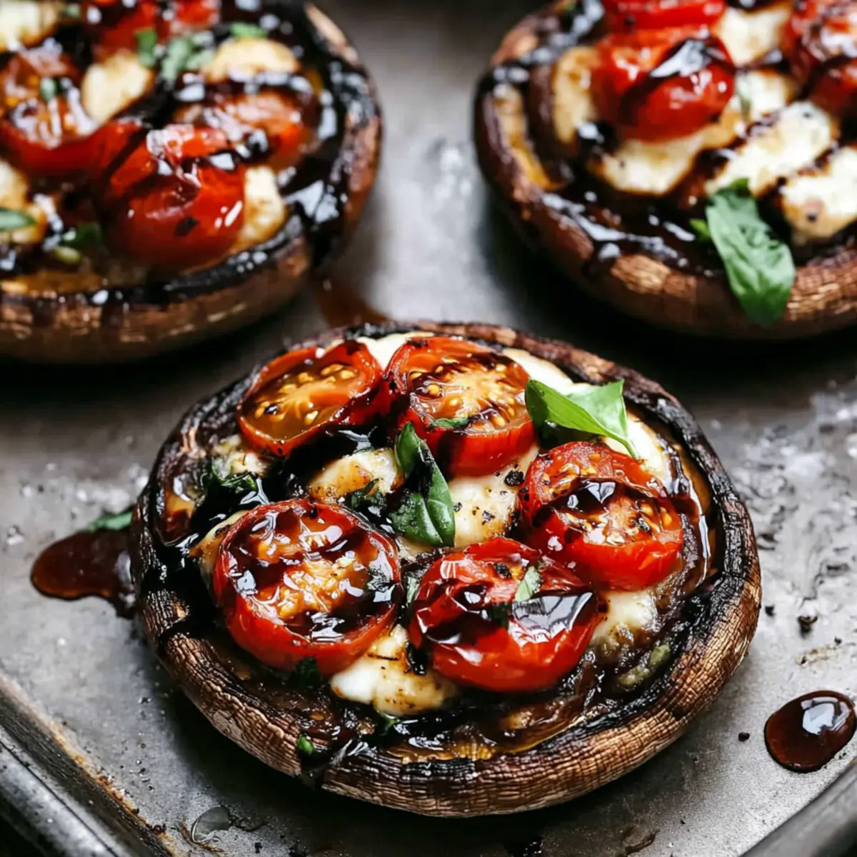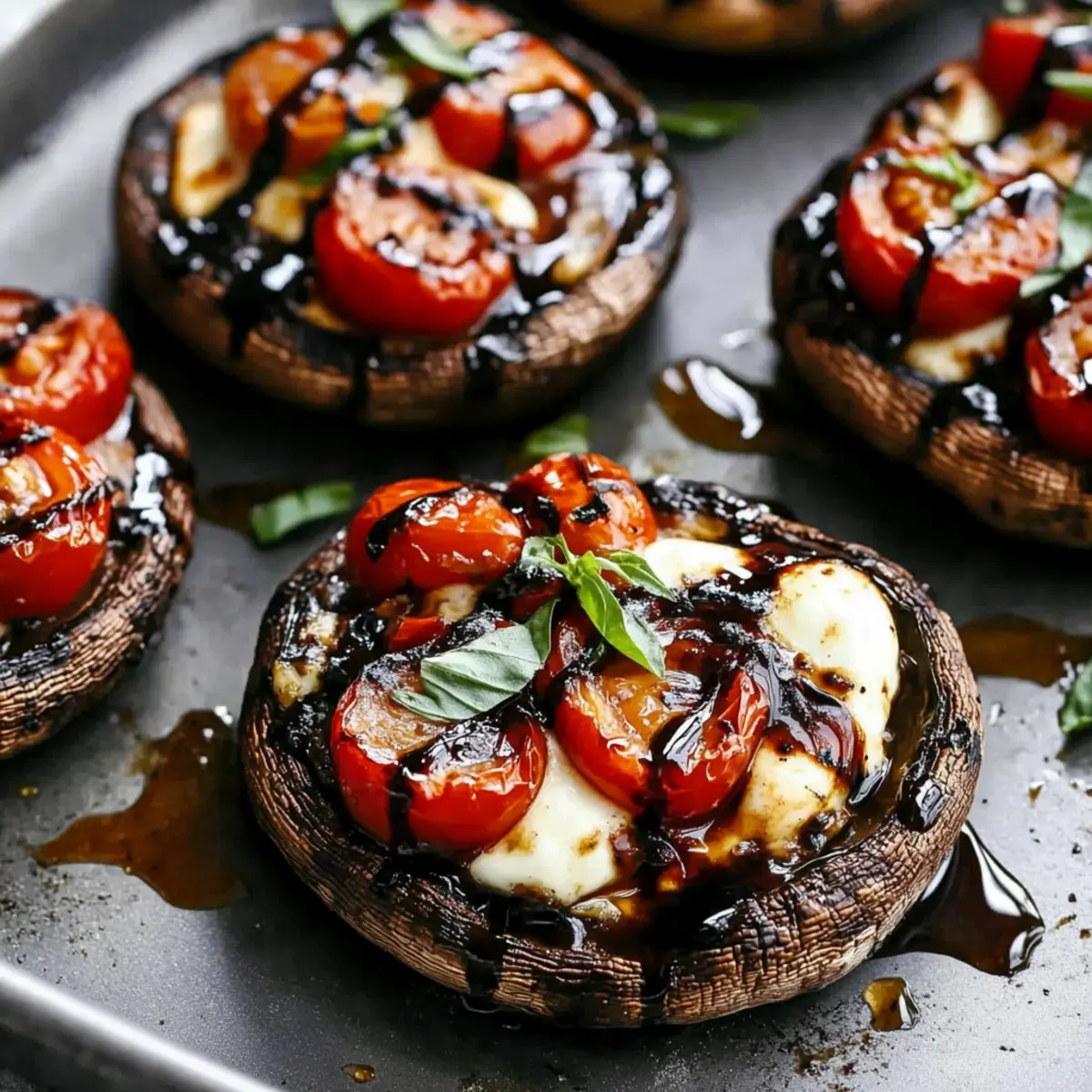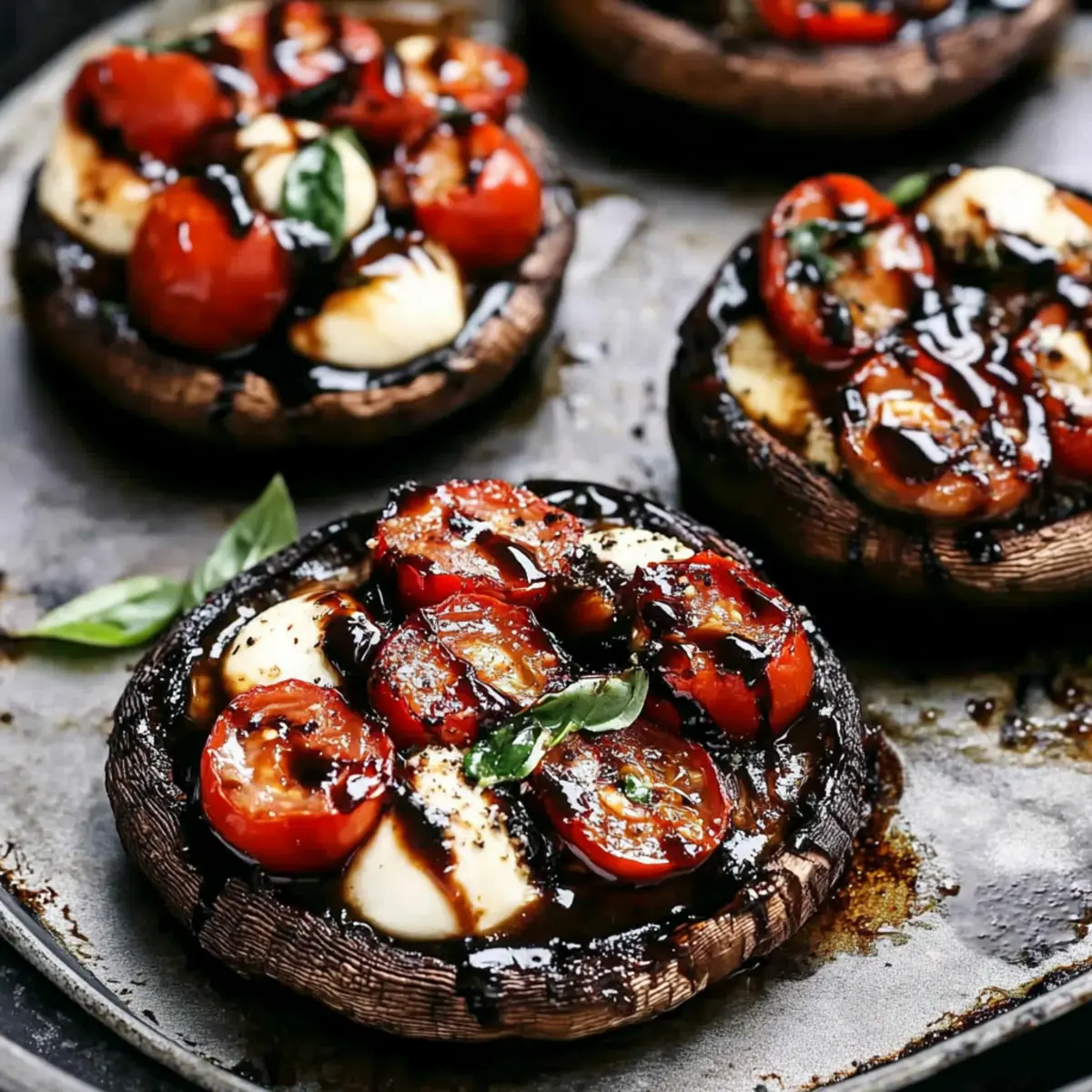 As I lifted the lid on my sauté pan, the irresistible aroma of garlic and fresh basil enveloped my kitchen. Today, I’m excited to share my Caprese Stuffed Portobello Mushrooms, a dish that not only celebrates the classic Caprese flavors but also offers a healthy twist worthy of any culinary adventure. In just 15 minutes, you can create a delightful vegetarian appetizer or light main course that is low in carbs and packed with freshness. Imagine sinking your fork into the tender, buttery mushroom filled with creamy mozzarella and juicy tomatoes, all drizzled with a tangy balsamic glaze. Whether you’re hosting a gathering or just looking for a personal treat, these stuffed portobellos are sure to impress. Are you ready to elevate your snacking game? Let’s dive into this delicious recipe! Why are Portobello Mushrooms Perfect for Stuffing? Versatility: Portobello mushrooms serve as a fantastic canvas for the classic Caprese flavors, easily adapting to your favorite ingredients. Quick Prep: With just 15 minutes needed from start to finish, this recipe fits perfectly into a busy lifestyle, providing a delicious option without lengthy preparation. Low Carb Delight: Perfectly balancing health and flavor, these stuffed mushrooms are low in carbs, making them an excellent choice for those looking to maintain a healthy diet while enjoying incredible taste. Crowd-Pleaser: Whether you’re hosting friends or enjoying a quiet dinner, these treats are sure to impress, much like a fresh Cucumber Caprese Salad would! Flavor Explosion: The combination of creamy mozzarella, juicy tomatoes, and aromatic basil perfectly complements the earthy mushroom base, ensuring every bite is a delightful experience. Easily Customizable: Feel free to get creative! Swap in different veggies or cheeses based on your preference, providing an endless array of delicious variations. Caprese Stuffed Portobello Ingredients For the Mushroom Caps Portobello Mushrooms – The sturdy base for this healthy dish; choose large ones with firm caps for the best results. For the Filling Fresh Mozzarella Cheese – Melts beautifully and adds rich creaminess; consider using shredded for even easier melting. Grape or Cherry Tomatoes – Adds a burst of sweetness; any small, ripe tomatoes will elevate the flavor. Fresh Basil – Essential for freshness and aroma; dried basil can be a quick substitute in a pinch. For the Garlic Butter Butter – Richness that enhances all flavors; feel free to swap with olive oil for a lighter, vegan-friendly option. Garlic – Brings a fragrant depth; fresh garlic enhances the dish’s heartiness. For the Drizzle Balsamic Glaze – Ties all flavors together with a sweet-savory finish; store-bought options save time, or make your own with vinegar and sugar. These Caprese Stuffed Portobello ingredients come together to create a delightful dish you’ll love whipping up! Step‑by‑Step Instructions for Caprese Stuffed Portobellos Step 1: Preheat and Prepare Preheat your oven to high grill or broil (about 500°F or 260°C). In a small saucepan, melt 2 tablespoons of butter over medium heat, adding 2 crushed garlic cloves and a tablespoon of chopped parsley. Stir until fragrant, about 1 minute. This garlic butter will enhance the flavor of your Caprese Stuffed Portobellos beautifully. Step 2: Prep Mushrooms Gently clean 4 large Portobello mushrooms with a damp paper towel, ensuring they’re dry afterward. Place them stem-side up on a baking tray and brush the cooked garlic butter generously on the bottoms of the mushrooms. Flip them over and brush the insides with the remaining garlic butter, making sure each cap is well-coated for a rich flavor. Step 3: Stuff Mushrooms Slice 8 ounces of fresh mozzarella cheese into thin rounds and halve 1 cup of grape tomatoes. Take each prepared mushroom cap and layer the bottom with mozzarella slices, followed by evenly distributing the halved tomatoes on top. This assembly creates a colorful and tasty filling for your Caprese Stuffed Portobellos. Step 4: Bake Place the stuffed mushrooms in the preheated oven and broil for about 8 minutes. Keep a close eye as they cook; look for the cheese to melt and bubble while turning golden brown. This visual cue indicates that your Caprese Stuffed Portobellos are perfectly cooked and ready for the next savory step. Step 5: Serve Remove the mushrooms from the oven and let them cool for a minute. Top with a handful of freshly shredded basil and drizzle with balsamic glaze for that signature tangy finish. Add a pinch of salt to enhance the flavors, and your delightful Caprese Stuffed Portobellos are now ready to be shared and enjoyed! Make Ahead Options These Caprese Stuffed Portobello Mushrooms are perfect for busy weeknights and meal prep! You can prepare the mushroom caps by cleaning and brushing them with garlic butter up to 24 hours in advance, ensuring they remain fresh. Additionally, slice your mozzarella and halve the grape tomatoes, storing them separately in airtight containers in the refrigerator for up to 3 days. When you’re ready to enjoy your dish, simply stuff the prepared mushrooms with the mozzarella and tomatoes, then pop them under the broiler for about 8 minutes until the cheese is bubbly and golden. This approach helps you savor a delightful, home-cooked meal with minimal effort, just as delicious as if made fresh! Expert Tips for Caprese Stuffed Portobellos Dry the Mushrooms: Ensure Portobello mushrooms are completely dried before brushing with garlic butter to avoid excess moisture during baking, which can lead to a soggy filling. Watch the Broil: Keep a close eye while broiling; overbaking can cause the cheese to burn quickly while losing its creamy texture. Fresh Ingredients: Use fresh mozzarella and ripe tomatoes for the best flavor—this enhances the deliciousness in your Caprese Stuffed Portobellos. Customize Your Filling: Don’t hesitate to swap in veggies like spinach or bell peppers; this easy var
