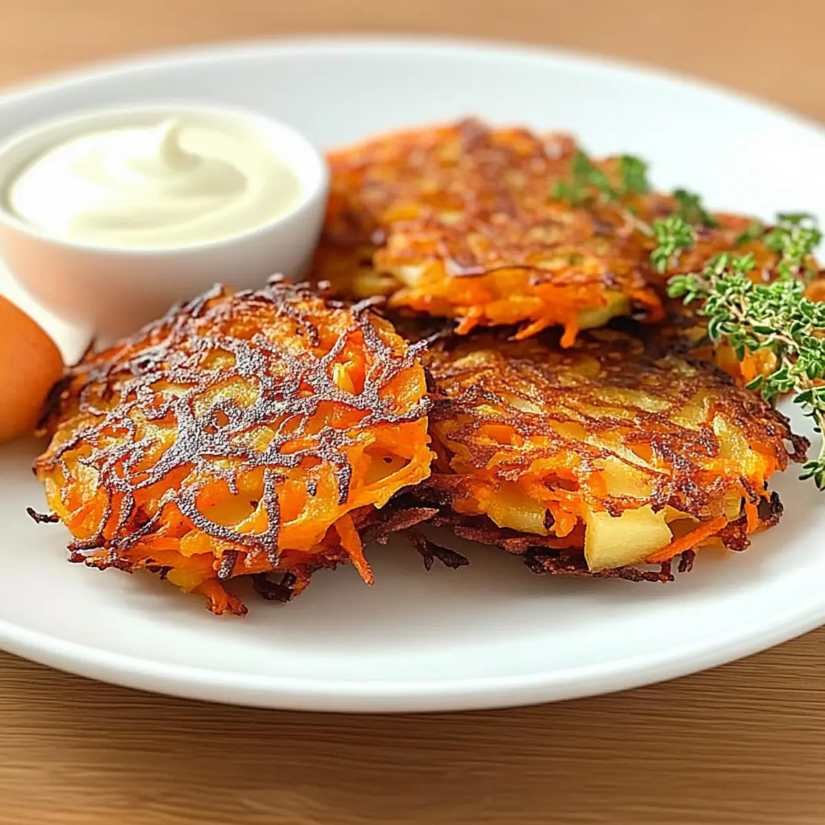 Deliciously Unique: These latkes blend sweet apples with earthy carrots, creating a tantalizing flavor that stands out from traditional recipes.