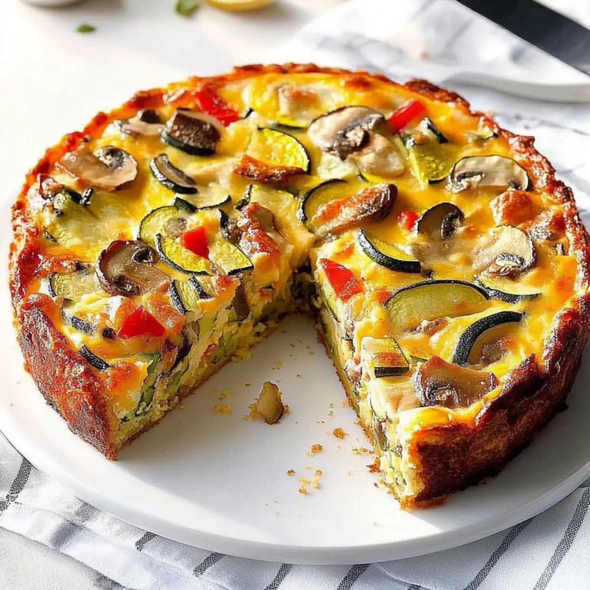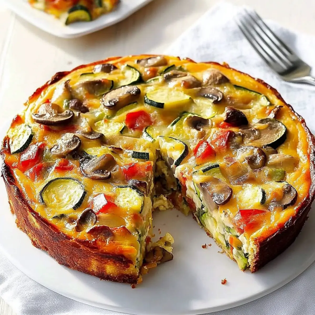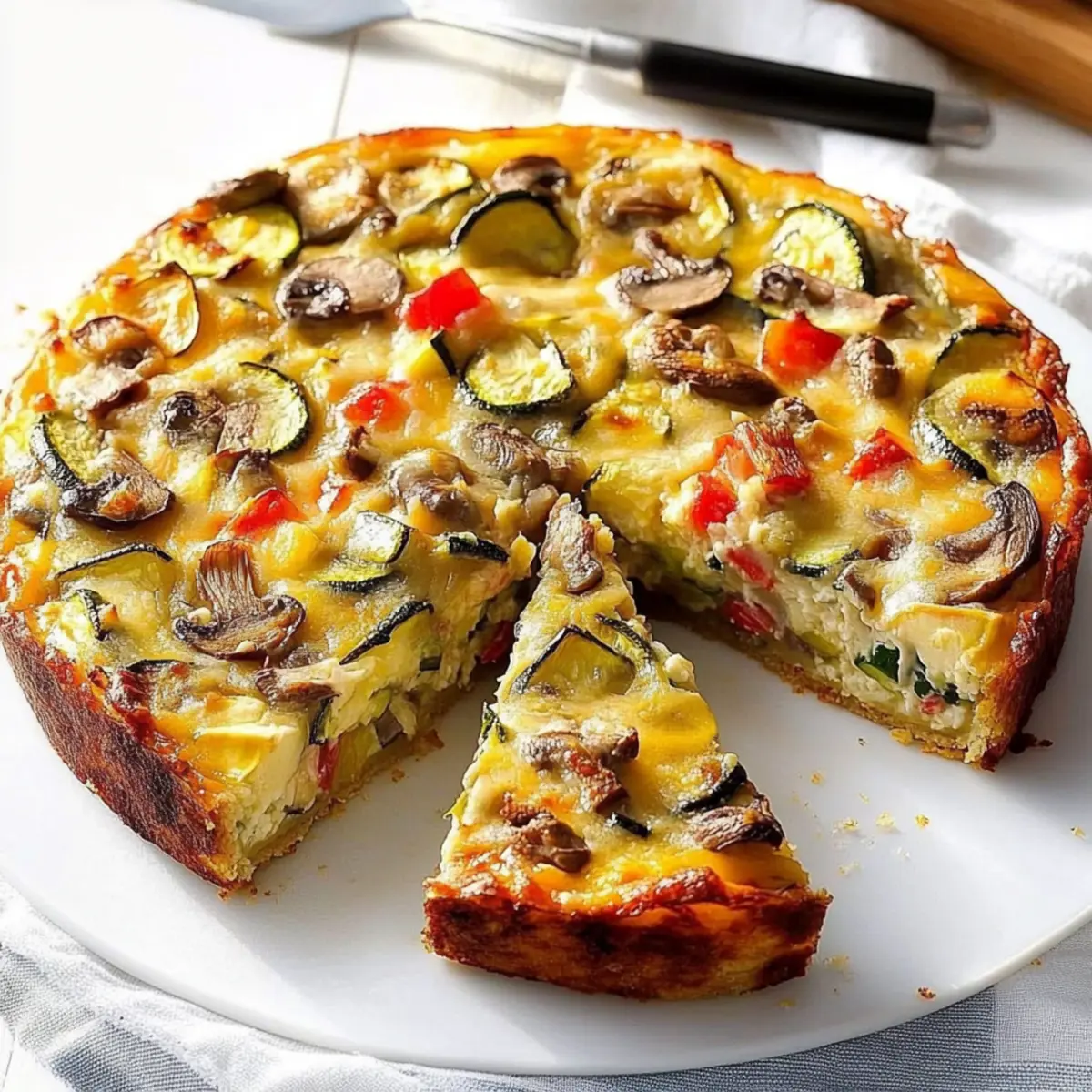As I pulled the golden-brown Cheddar-Veggie Appetizer Torte from the oven, the delicate aroma of sautéed vegetables mingled with the tangy notes of sharp cheddar, instantly tempting my senses. This dish has become a favorite among my friends, with its flaky multigrain cracker crust paired with a creamy, colorful filling that’s both vegetarian-friendly and effortlessly customizable. Not only can you adapt it to suit the veggies you have on hand, but it also transforms any gathering into a delightful experience—served warm or chilled, it works wonders for breakfast, brunch, or elegant appetizers. Are you ready to dive into this cheesy masterpiece and discover your own unique twist? Why is this torte a must-try? Deliciously Versatile: The Cheddar-Veggie Appetizer Torte can be tailored to any occasion with your choice of veggies—perfect for utilizing what’s in your fridge. Crowd-Pleasing Appeal: Its combination of creamy filling and crispy crust makes it a hit at parties, charming both veggie lovers and cheese enthusiasts alike. Easy Preparation: With just a handful of ingredients and simple steps, putting this together is a breeze—even for novice cooks! Time-Saving Option: Bake ahead of time and serve it warm or chilled, making it an effortless addition to brunch or gatherings. Nutritional Value: Packed with fresh vegetables and cheese, it’s not just indulgent but also offers wholesome nourishment—check out the nutritional notes. Cheddar-Veggie Appetizer Torte Ingredients For the Crust • Multigrain Crackers – Creates a sturdy base; swap with breadcrumbs or panko for a different texture. • Butter – Binds the cracker crumbs together; consider using olive oil for a lighter option. For the Filling • Sharp Cheddar Cheese – Offers a rich, tangy flavor; feel free to replace with mozzarella or Gouda for a unique twist. • Zucchini – Adds moisture; substitute with extra mushrooms or any favorite veggies. • Fresh Mushrooms – Elevates the umami flavor; any variety like button or portobello works beautifully. • Red Onion – Provides sweetness and depth; yellow onions or shallots can work in a pinch. • Sweet Red Pepper – Brings in color and sweetness; green bell peppers can easily substitute. • Olive Oil – Ideal for sautéing the vegetables; butter or cooking spray could also be used. • Garlic and Herb Cream Cheese – Forms the creamy filling; mix regular cream cheese with herbs for a quick alternative. • Eggs – Acts as a binding agent and adds richness; consider silken tofu for a vegan twist. • Cooked Bacon – Introduces savory notes; omit for a vegetarian option or replace with vegetarian bacon. • Parmesan Cheese – Adds depth of flavor; nutritional yeast serves as a dairy-free alternative. Enjoy crafting your very own Cheddar-Veggie Appetizer Torte, perfect for any gathering! Step‑by‑Step Instructions for Cheddar-Veggie Appetizer Torte Step 1: Prepare the Crust In a small bowl, combine multigrain cracker crumbs with melted butter until fully coated. Press this mixture into the bottom of a greased 9-inch springform pan, creating an even layer. Ensure the crust is firmly packed to prevent crumbling. Bake the crust in a preheated oven at 375°F for about 10 minutes, or until lightly golden. Allow it to cool slightly before adding the cheese layer. Step 2: Add the Cheddar Cheese Once the crust is cooled, evenly spread a layer of shredded sharp cheddar cheese over the cracker base. This sumptuous layer will melt into the crust as the Cheddar-Veggie Appetizer Torte bakes, creating a delightful cheesy foundation. Make sure to cover the entire surface to ensure every bite is full of flavor. Step 3: Sauté the Vegetables In a skillet, heat olive oil over medium heat and add diced zucchini, sliced mushrooms, chopped red onion, and sweet red pepper. Sauté the veggies for about 5-7 minutes, until they become tender and fragrant. Stir occasionally to ensure even cooking. Once done, remove from heat and let them cool slightly before layering them over the cheddar. Step 4: Mix the Cream Cheese Filling In a separate bowl, beat room temperature garlic and herb cream cheese until smooth and creamy. Gradually mix in the eggs one at a time, ensuring the mixture is well combined. Stir in any crumbled bacon if using—it will add a savory depth. This cream cheese mixture will bind the layers together and provide a creamy texture in the torte. Step 5: Assemble the Torte Carefully layer the sautéed vegetables on top of the cheese, spreading them evenly. Pour the cream cheese mixture over the vegetables, making sure to cover all of them completely. This step is crucial for creating a cohesive flavor profile in your Cheddar-Veggie Appetizer Torte. Top with grated Parmesan cheese for an extra layer of flavor and richness. Step 6: Bake the Torte Place the assembled torte in the preheated oven and bake at 375°F for 30-35 minutes. You will know it’s done when the edges are firm, and the center is just set, with a slight jiggle. The top should be beautifully golden brown, creating an inviting appearance for your appetizer. Step 7: Cool and Remove from Pan Once baked, allow the Cheddar-Veggie Appetizer Torte to cool for 10 minutes in the pan. Gently run a knife around the edge, then carefully remove the springform pan. This step ensures a clean presentation and helps prevent cracking when you serve it, whether warm or chilled. Step 8: Serve and Enjoy Slice the torte into wedges, displaying the colorful layers, and serve warm or chilled based on your preference. This versatile dish is perfect for gatherings, easily delighting your guests with its rich flavors and delightful texture. Pair it with a fresh side salad for a complete meal experience! What to Serve with Cheddar-Veggie Appetizer Torte A delightful spread enhances the experience of this delightful creation, enriching every bite. Crispy Green Salad: A refreshing salad with mixed greens and a zesty vinaigrette