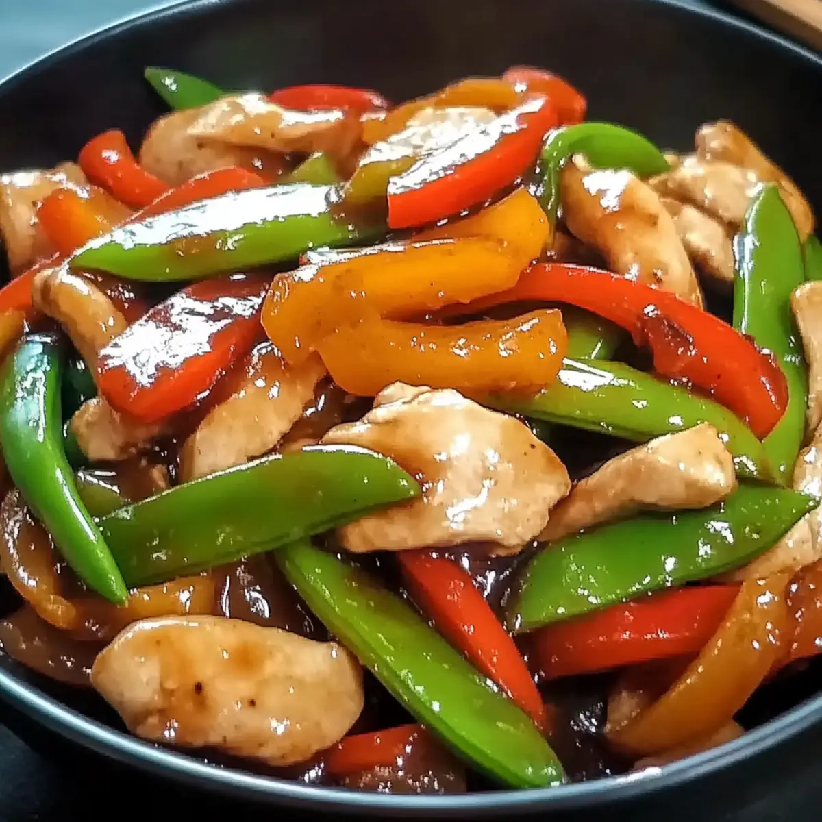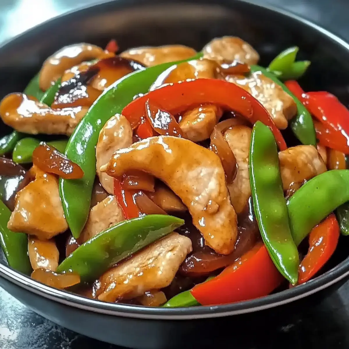 1. Prep Ingredients: Gather all ingredients. Slice chicken, chop bell peppers and carrots, leave snow peas whole.