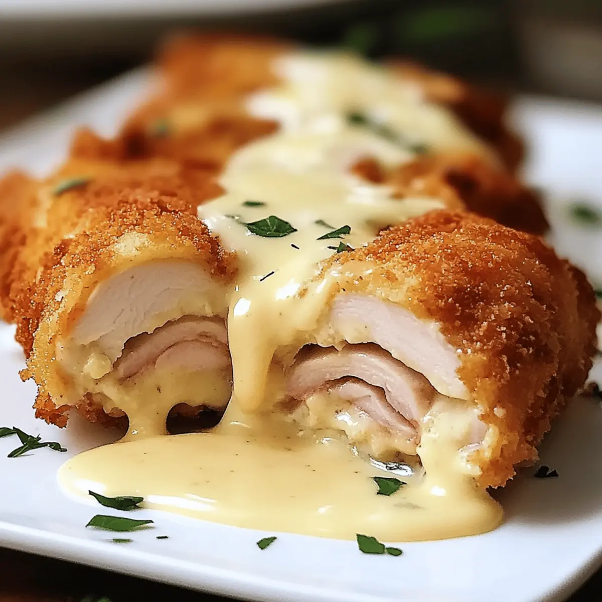 Indulge in this Chicken Cordon Bleu with Swiss Cheese featuring savory turkey rolls and a creamy sauce, perfect for any dinner occasion.