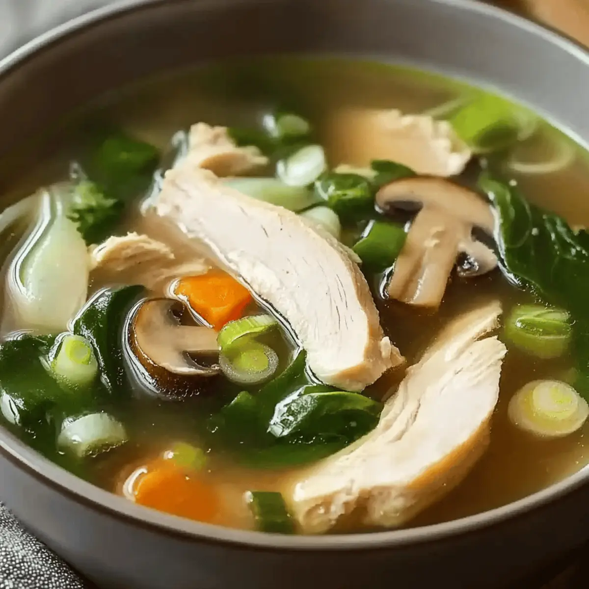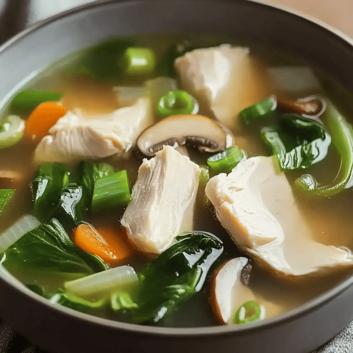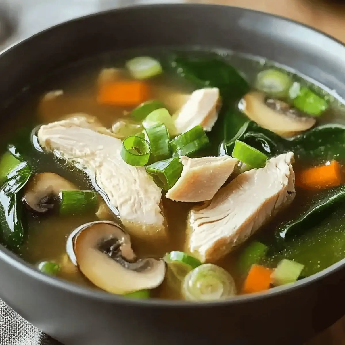 Amid the hustle and bustle of everyday life, it’s often the simplest meals that warm our hearts. My quick and healthy Chicken Miso Soup is one of those comforting dishes that effortlessly brings a bit of tranquility to busy weeknights. This savory soup stars tender chicken swimming in a rich, umami broth flavored with miso, accompanied by a rainbow of vibrant vegetables. Not only is this dish a family-friendly favorite that’s quick to whip up in under an hour, but it’s also incredibly customizable, allowing you to incorporate seasonal veggies or even switch out chicken for tofu or seafood. Whether you’re feeling under the weather or simply in need of a cozy meal, this Chicken Miso Soup provides nourishment and comfort in every spoonful. Are you ready to discover how easy it is to create your own bowl of this deliciousness? Why is Chicken Miso Soup a Must-Try? Nourishing Comfort: This Chicken Miso Soup is not just food; it’s a warm embrace in a bowl, perfect for any day. Quick Preparation: Ready in under an hour, it’s ideal for busy weeknights without sacrificing flavor. Rich Umami Flavor: The combination of miso and fresh ingredients crafts a savory depth that’ll keep you coming back for more. Customizable Goodness: Feel free to swap in seasonal vegetables or protein options like tofu, seafood, or even hearty noodles for a unique twist. Family-Friendly Delight: Kids and adults alike will love this dish, ensuring it becomes a staple in your meal rotation. Serve it alongside a Garlic Butter Chicken and Potatoes Skillet for a delightful dinner experience! Chicken Miso Soup Ingredients For the Soup Base • Boneless, Skinless Chicken Thighs – Provides protein and richness; chicken breasts can be used as a leaner option. • Chicken Broth – Forms the soup base and adds depth; use vegetable broth for a vegetarian alternative. • Water – Dilutes the broth to the desired consistency; adjust based on your preferred broth strength. • Miso Paste (white or yellow) – Adds umami flavor; different types of miso vary in strength, so sample to find your favorite. For the Vegetables • Sliced Mushrooms (shiitake or button) – Contributes texture and earthiness; substitute with cremini mushrooms if desired. • Chopped Bok Choy or Spinach – Adds nutrients and vibrant color; kale or Swiss chard can be used instead. • Julienned Carrot – Provides sweetness and crunch; feel free to use any root vegetable you have on hand. • Sliced Green Onions – Offers freshness and flavor; scallions are a fine replacement. For Seasoning • Soy Sauce – Enhances flavor with its saltiness; tamari is a great gluten-free alternative. • Sesame Oil – Adds a nutty aroma; olive oil can be used for sautéing if needed. • Salt and Pepper – Essential seasonings to taste; adjust according to your dietary preferences. Optional Add-Ins • Tofu – Add for extra protein and heartiness; it’s a great vegetarian option. • Seaweed – Provides additional flavor and nutrients; can be included for an authentic touch. • Additional Vegetables – Feel free to mix in any seasonal veggies you desire for more variety in this Chicken Miso Soup. Dive into this delightful and nourishing bowl that feels like a warm hug, and enjoy the endless customization possibilities! Step‑by‑Step Instructions for Chicken Miso Soup Step 1: Prepare the Chicken Begin by cutting the boneless, skinless chicken thighs into bite-sized pieces. Lightly season the chicken with salt and pepper, ensuring it’s evenly coated. This simple seasoning enhances the flavor of the tender chicken in your Chicken Miso Soup, providing a comforting base for the dish. Step 2: Sauté the Chicken In a large pot, heat 1 tablespoon of sesame oil over medium heat for about 1-2 minutes. Once the oil shimmers, add the seasoned chicken pieces. Sauté the chicken for 5-7 minutes, stirring occasionally, until it turns golden brown and is cooked through. This step creates a rich, savory flavor that forms the heart of your soup. Step 3: Add Broth and Water Pour in 4 cups of chicken broth and 2 cups of water into the pot with the sautéed chicken. Bring the mixture to a gentle boil over medium-high heat, stirring occasionally. As the broth heats up, its aroma will fill the kitchen, setting the stage for a delightful Chicken Miso Soup. Step 4: Incorporate Miso Paste In a small bowl, mix the miso paste with a ladleful of the hot broth until it’s smooth. Stir this mixture back into the pot, ensuring it fully dissolves in the broth. This critical step infuses the Chicken Miso Soup with rich umami flavor that will tantalize your taste buds. Step 5: Add the Vegetables Now, add the sliced mushrooms, julienned carrot, and chopped bok choy (or spinach) to the pot. Cook the soup for an additional 5-10 minutes, or until the vegetables are tender yet vibrant in color. This not only enhances the nutritional value of your Chicken Miso Soup but also adds a pop of freshness. Step 6: Season the Soup Stir in 2 tablespoons of soy sauce, adjusting to taste, and add more salt and pepper if desired. This is an excellent moment to taste the broth and ensure the flavors are just right. The seasoning will elevate your Chicken Miso Soup, making it a comforting, satisfying dish. Step 7: Finish with Green Onions Just before serving, top the soup with sliced green onions for a fresh crunch. The vibrant green color complements the rich broth, adding an appealing presentation to your Chicken Miso Soup. Step 8: Serve and Enjoy Ladle the hot Chicken Miso Soup into bowls, and it’s ready to be served! You can enjoy it on its own or alongside steamed rice for a wholesome meal that warms your heart. Dive in and savor each comforting spoonful! What to Serve With Chicken Miso Soup Elevate your Chicken Miso Soup experience with delightful accompaniments that enhance the flavors and create a satisfying meal. Steamed Rice: A bowl of fluffy rice perfectly soaks up the savory broth, prov