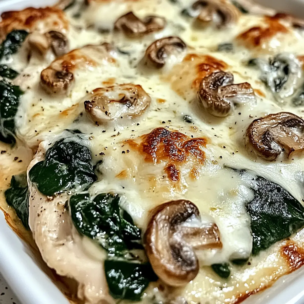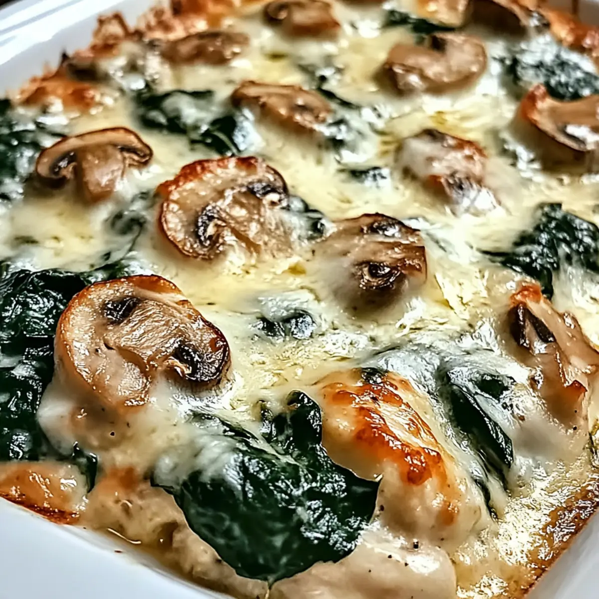 As I stood in my kitchen, the aroma of sautéing mushrooms intertwined with rich cream and seasoned chicken, a wave of comfort washed over me. This Creamy Chicken Spinach and Mushroom Low Carb Oven Dish is the perfect solution for those hectic evenings when you crave something heartwarming yet healthy. Not only is it an easy keto meal that fits seamlessly into a low carb lifestyle, but it also comes together in under 40 minutes—ideal for busy weeknights. With a simple one-dish approach, cleanup is a cinch, allowing you to focus more on savoring each delicious bite. Are you ready to transform your dinner routine into something that feels both indulgent and nutritious? Let’s dive into this recipe! Why will you love this dish? Simplicity at its best: This one-dish wonder makes dinner a breeze, requiring minimal prep and cleanup. Deliciously rich flavors: With creamy textures and savory spices, each bite is a comforting delight. Low carb magic: Perfect for keto enthusiasts, this dish won’t derail your diet while satisfying your cravings. Versatile swapping: Feel free to customize by adding seasonal veggies or substituting spinach with kale for variety. Crowd-pleaser appeal: Serve it at gatherings; everyone will rave about this wholesome, flavorful meal that feels indulgent. For more inspiration, pair it with some Garlic Butter Chicken or complement it with a light side like roasted Brussels sprouts. Chicken Spinach and Mushroom Ingredients This Chicken Spinach and Mushroom dish combines rich flavors with wholesome nutrition, creating an easy keto meal that everyone will love! For the Chicken • Boneless, Skinless Chicken Breasts – The protein foundation of your dish that keeps it hearty and satisfying. For the Sauce • Heavy Cream – This creates a luxuriously creamy texture; substitute with coconut cream for a dairy-free option. • Garlic Powder – Infuses savory depth; fresh minced garlic can elevate the flavor if preferred. • Onion Powder – Complements garlic perfectly, enhancing your overall taste experience. • Italian Seasoning – A combination of herbs that enrich the dish; can replace with dried thyme or oregano. • Salt and Pepper – Essential for seasoning—feel free to adjust according to your taste preferences. For the Veggies • Fresh Spinach, Chopped – Adds a burst of nutrition and color; you can swap it out for kale or Swiss chard if desired. • Sliced Mushrooms – These bring umami flavor and a pleasing texture; use any variety like cremini or button mushrooms. For Topping • Shredded Mozzarella Cheese – This provides that irresistible melty quality; consider dairy-free cheese alternatives for a lactose-free twist. • Grated Parmesan Cheese – Offers a nutty flavor and a crispy finish; it’s optional for those avoiding dairy. For Cooking • Olive Oil – Ideal for sautéing your veggies; can easily be replaced with avocado oil or butter for a different flavor profile. Step‑by‑Step Instructions for Creamy Chicken Spinach and Mushroom Step 1: Prep Ingredients Begin by preparing your ingredients for the Creamy Chicken Spinach and Mushroom dish. Chop the fresh spinach into smaller pieces and slice your mushrooms evenly. This will ensure all the vegetables cook uniformly, enhancing the flavors of your dish. Have your chicken breasts ready and thawed if using frozen, as even cooking is key for a juicy outcome. Step 2: Sauté Vegetables In a large skillet, heat 2 tablespoons of olive oil over medium heat. Once the oil shimmers, add the sliced mushrooms and sauté for about 5-7 minutes, or until they turn golden brown and fragrant. Then, stir in the chopped spinach for an additional 2 minutes, just until they wilt and release their vibrant color. Remove from heat and set aside. Step 3: Layer in Baking Dish Next, take your baking dish and lay the thawed boneless, skinless chicken breasts in a single layer at the bottom. Pour the heavy cream evenly over the chicken, allowing it to coat each piece. Then, add the sautéed spinach and mushrooms on top, spreading them out gently to ensure every bite of your Creamy Chicken Spinach and Mushroom dish is packed with flavor. Step 4: Add Cheese Sprinkle a generous amount of shredded mozzarella cheese over the layered chicken and vegetables. If desired, also add grated Parmesan cheese for an extra crunch and nutty flavor. This cheesy layer will melt beautifully during baking, creating a delightful golden crust that complements the rich cream sauce. Step 5: Bake Preheat your oven to 375°F (190°C). Once the oven is hot, place the baking dish inside and let it bake for 25-30 minutes. Keep an eye on the cheese—it should bubble and turn golden brown, and the chicken must reach an internal temperature of 165°F (74°C) to ensure it’s cooked all the way through. Step 6: Cool and Serve After baking, remove the dish from the oven and allow it to cool for a few minutes. This brief resting period helps the flavors meld together. If you like, garnish with fresh herbs for an added touch of color and flavor before serving. Now, your deliciously comforting Chicken Spinach and Mushroom dish is ready to be enjoyed! Storage Tips for Chicken Spinach and Mushroom Fridge: Store leftover Chicken Spinach and Mushroom in an airtight container for up to 3 days. Ensure it’s completely cooled down before sealing to maintain freshness. Freezer: You can freeze the dish in a suitable container for up to 2 months. To thaw, place it in the fridge overnight before reheating for the best texture. Reheating: Reheat in the oven at 350°F (175°C) for about 15-20 minutes until heated through, or pop it in the microwave until hot. Enjoy the creamy goodness again! What to Serve with Creamy Chicken Spinach and Mushroom Low Carb Oven Dish This deliciously creamy dish is just the start of an unforgettable meal experience that will delight your taste buds. Garlic Butter Zucchini Noodles: These tender, spiralized noodles add a fresh, light cont