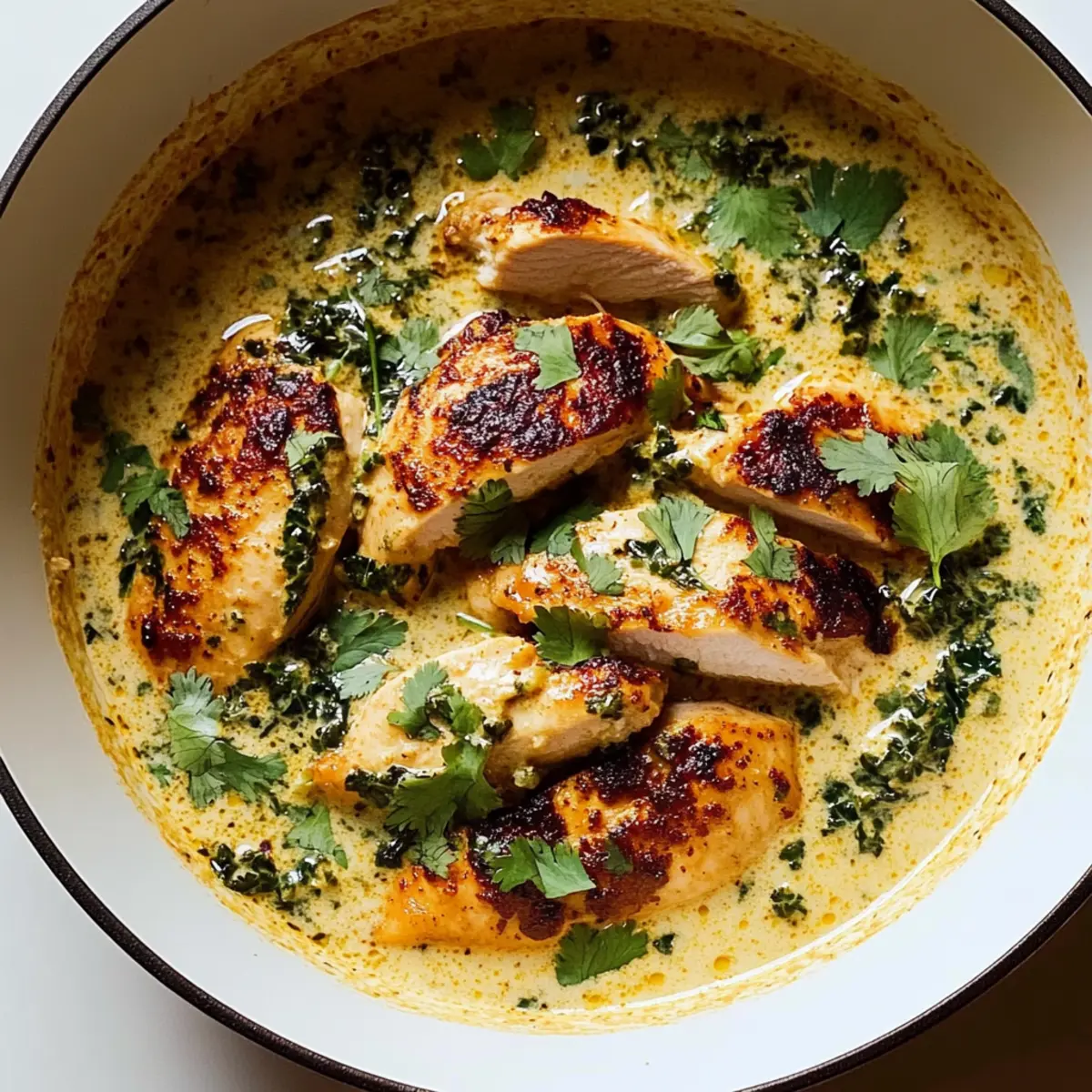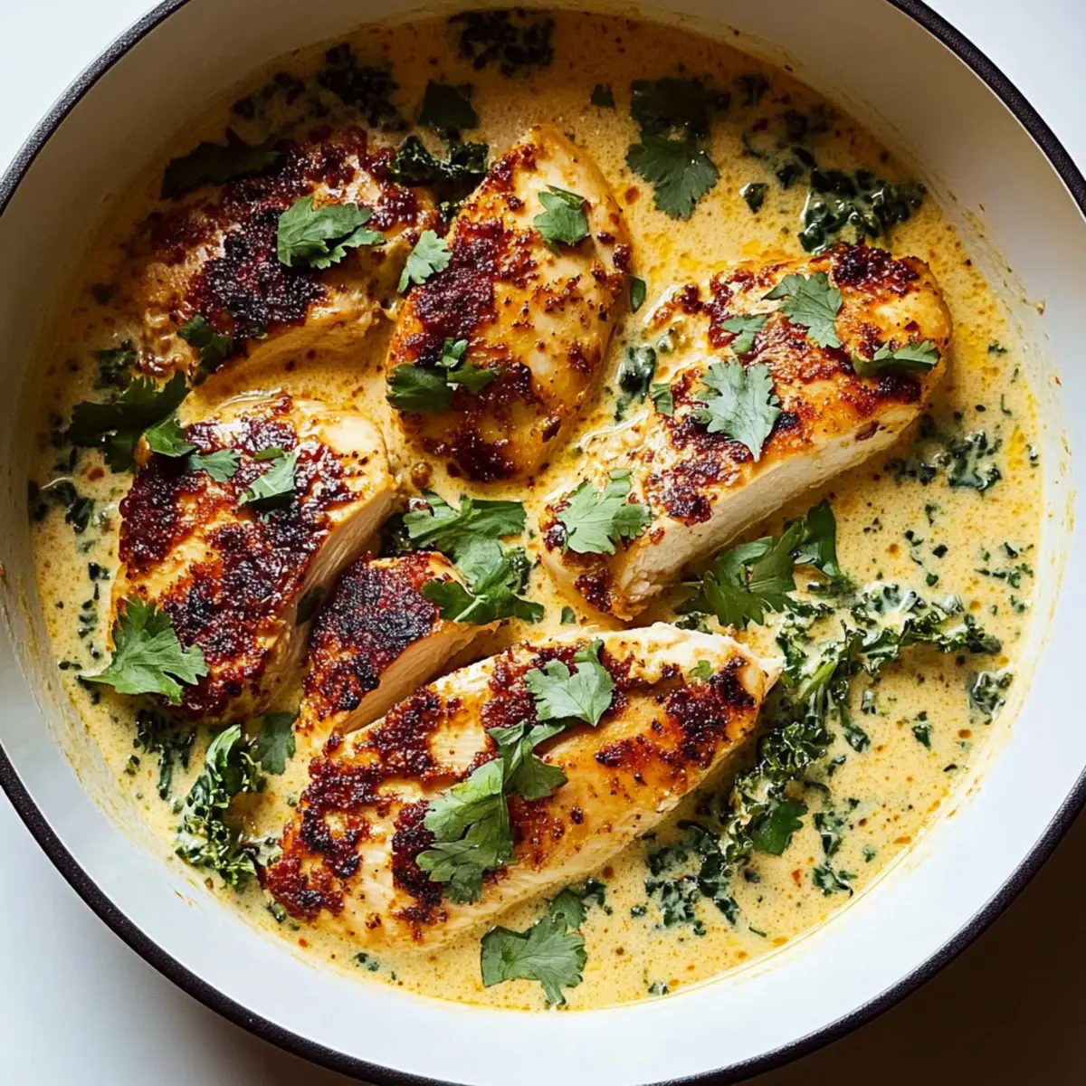 As I stood in my kitchen, the inviting aroma of sautéed shallots filled the air, instantly whisking me away to a bustling Thai street market. This Creamy Coconut Kale Chicken is my go-to weeknight delight, effortlessly combining tender chicken with a luscious coconut-kale sauce that practically dances on your palate. Not only is it a quick dinner solution, but it’s also a customizable one-pot meal, allowing you to swap in shrimp or spinach depending on what you have on hand. With its balance of creamy richness and healthy greens, this dish transforms ordinary evenings into something special. Curious about the tantalizing flavors that await you? Let’s dive into this savory journey together! Why is Chicken with Coconut Kale a must-try? Simplicity at Its Finest: This recipe is a breeze to make, perfect for busy weeknights when you crave something special without the fuss. Creamy Texture: The coconut milk sauce delivers a rich, velvety finish, making every bite feel indulgent while still being healthy. Versatile Base: Easily swap chicken for shrimp or tofu, and kale for spinach or other greens, catering to whatever ingredients you have on hand. Crowd-Pleasing Flavor: With hints of curry and shallots, even the pickiest eaters will be asking for seconds! One-Pot Wonder: Cleanup is a snap, letting you spend more time enjoying your meal rather than washing dishes. Explore this delightful dish for an easy dinner, and don’t forget to check out my other favorites like Sheet Pan Honey or Spicy Maple Chicken for even more inspiration! Chicken with Coconut Kale Ingredients For the Chicken • Chicken Breast – This is your main protein; opt for thinly sliced pieces to speed up cooking time. • Salt and Pepper – Essential for seasoning, feel free to adjust according to your taste preferences. For the Coconut Kale Sauce • Coconut Milk – This adds that delightful creaminess; full-fat is best for rich flavor. • Kale – Packed with nutrients and goes beautifully in the sauce; can be easily replaced with spinach or other greens. • Shallots – Imparts a sweet, mild onion flavor; onions work as a suitable substitute if needed. • Yellow Curry Paste – The star of the dish, offering depth of flavor; swap with red curry paste for a different flavor profile. Now that you have all the Chicken with Coconut Kale ingredients lined up, you’re ready to embark on a cooking adventure! Step‑by‑Step Instructions for Chicken with Coconut Kale Step 1: Prep Chicken Thinly slice the chicken breasts to ensure quick and even cooking. Season them generously with salt, pepper, and any additional spices you prefer, like paprika or garlic powder. Set aside to allow the flavors to meld while you prepare the skillet. Step 2: Cook Chicken Heat a large skillet over medium-high heat and add a splash of oil. Once shimmering, add the seasoned chicken slices and cook for about 6–7 minutes, flipping halfway, until golden brown and cooked through (internal temperature of 165°F). Remove the chicken from the skillet and set aside on a plate, keeping it warm. Step 3: Make Sauce In the same skillet, reduce the heat to medium and add a small amount of oil if necessary. Sauté the chopped shallots for about 2–3 minutes, or until they become soft and translucent. Next, stir in the yellow curry paste, cooking for another minute to release the fragrant aromas before adding the coconut milk. Step 4: Combine Ingredients Once the coconut milk is in the skillet, stir well to combine it with the shallots and curry paste. Allow the mixture to come to a gentle simmer, reducing the heat if needed, and cook for about 5 minutes until it thickens slightly, creating a luscious creamy sauce perfect for the Chicken with Coconut Kale. Step 5: Finish the Dish Return the cooked chicken to the skillet, gently mixing it into the sauce to evenly coat it. Let everything simmer together for another 3–5 minutes, allowing the chicken to absorb the delicious coconut and curry flavors. Stir in the kale, cooking just until wilted and vibrant. Step 6: Serve and Enjoy Remove the skillet from the heat and serve your Chicken with Coconut Kale over a bed of fluffy rice to soak up the sauce. Garnish with fresh herbs or lime wedges for an extra burst of flavor, and relish the delightful balance of creamy richness and healthy greens. What to Serve with Chicken with Coconut Kale Elevate your dinner experience with delightful sides and beverages that perfectly accompany the creamy, vibrant flavors of this dish. Fluffy Jasmine Rice: This fragrant rice is perfect for soaking up the rich coconut sauce while adding a satisfying texture that harmonizes beautifully with the chicken. Quinoa Salad: A light, protein-packed quinoa salad with cherry tomatoes and cucumbers adds freshness and a delightful crunch, balancing the creaminess of the main dish. Steamed Broccoli: The subtle earthy notes of steamed broccoli enhance the meal’s nutritional profile while providing a crisp contrast to the creamy sauce. A squeeze of lemon will brighten every bite! Crispy Garlic Naan: Soft and pillowy, dipped into the coconut-kale sauce, this naan brings a delightful twist to the meal, making it an irresistible treat. Spicy Thai Slaw: A vibrant slaw with shredded cabbage, carrots, and a tangy dressing offers a refreshing kick and crunch, cutting through the richness of the chicken. Coconut Mango Smoothie: This smooth and tropical drink complements the dish, with creamy coconut and sweet mango providing a luscious, cool contrast to the meal. Dark Chocolate Mousse: To end the night on a sweet note, this rich dessert pairs beautifully with the flavors of Thai cuisine, leaving a lasting impression on your taste buds. Storage Tips for Chicken with Coconut Kale Fridge: Store leftovers in an airtight container in the fridge for up to 3 days. This keeps the flavors intact while ensuring your Chicken with Coconut Kale stays fresh. Freezer: For longer storage, place the cooled chicken 