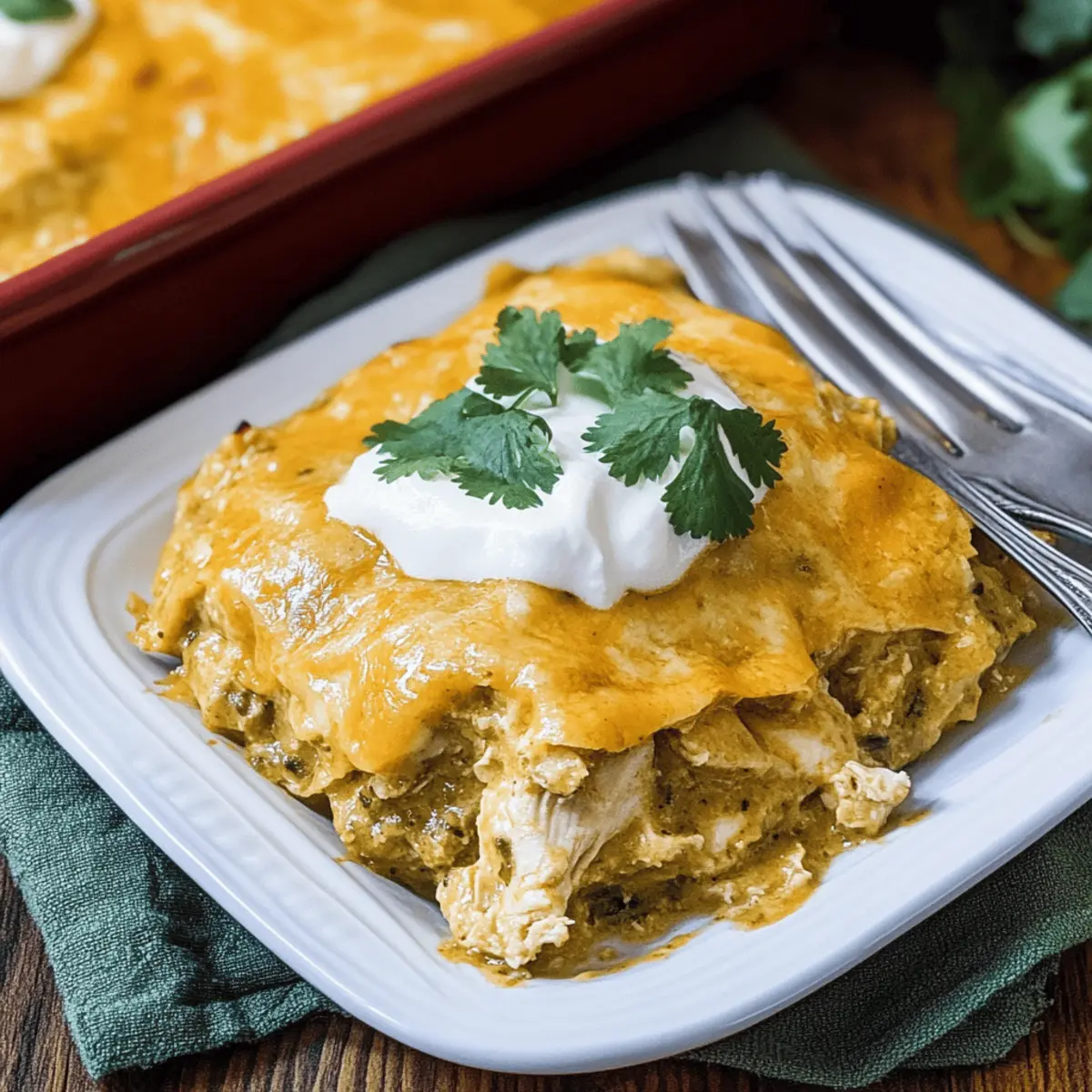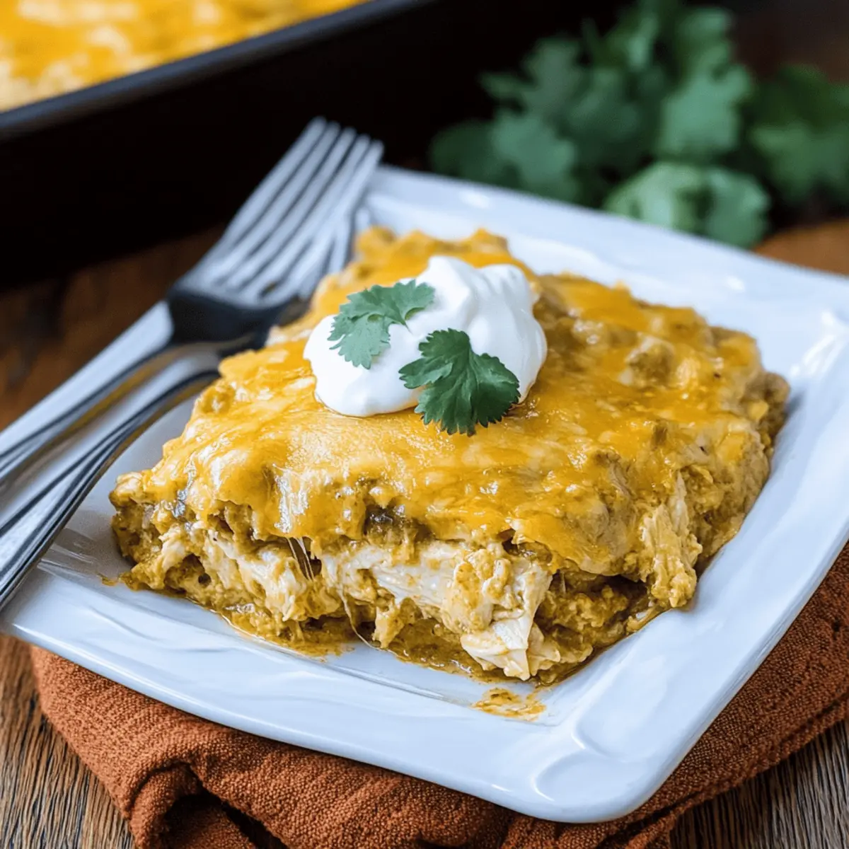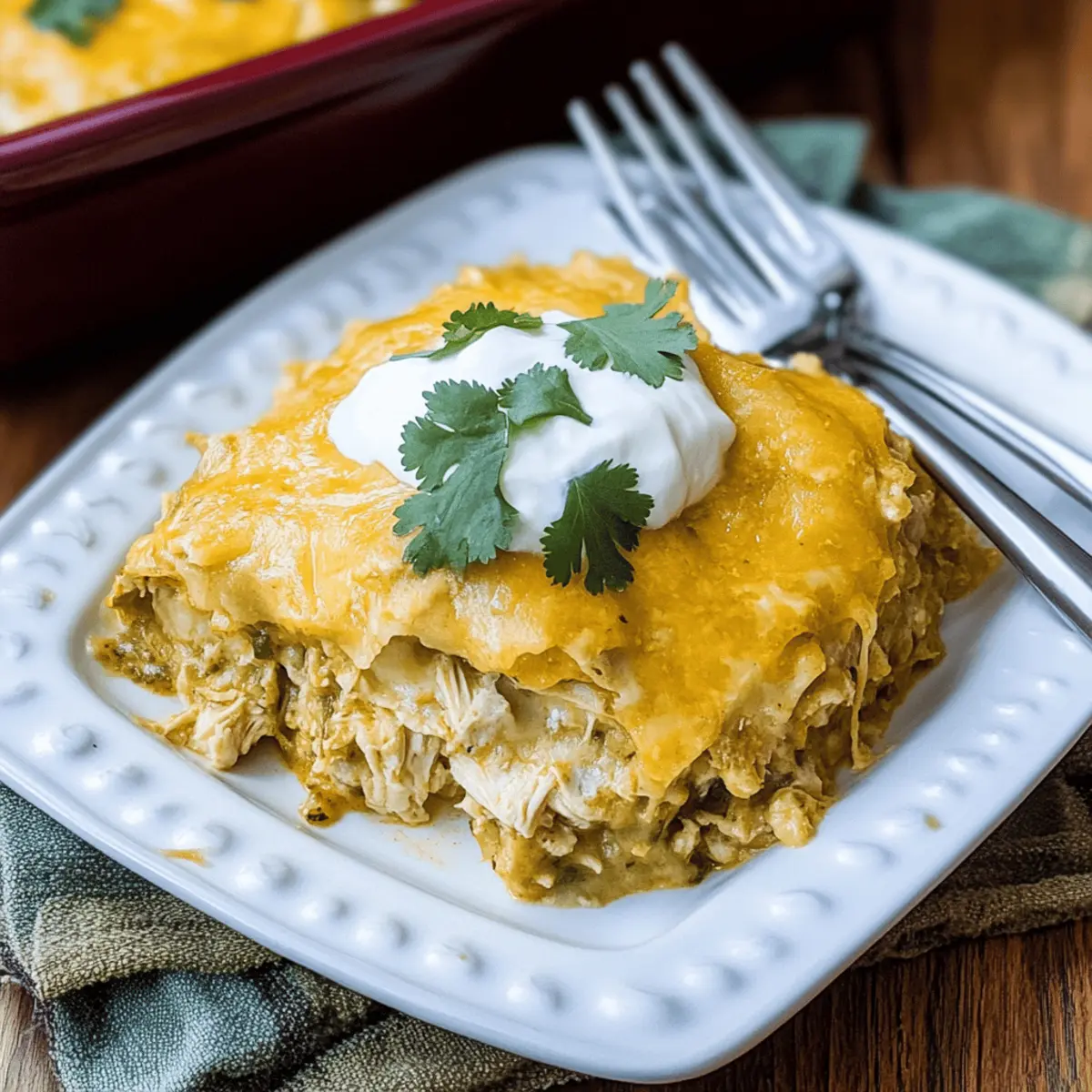As I stood in my kitchen, the tantalizing scent of roasted green chiles filled the air, whisking me away to my favorite local taquería. This inspiration birthed my Quick and Easy Chile Verde Chicken Tamale Casserole, a delightful twist on the beloved tamales I grew up with. In this recipe, we embrace all the authentic flavors without the fuss, layering tender masa, zesty green chile chicken, and melty cheese, making it perfect for a busy weeknight or a cozy gathering with friends. Not only does this dish come together in under an hour, but it also satisfies that craving for comforting, home-cooked food that feels like a warm hug. Are you ready to elevate your dinner game with this crowd-pleaser? Let’s dive into the delicious details! Why Is This Casserole a Game-Changer? Simplicity, this Chile Verde Chicken Tamale Casserole brings homemade comfort food to your dinner table without the usual hassle. Authentic Flavors shine through each layer, making it taste just like your favorite tamales. Quick Preparation means you can whip it up in under an hour, perfect for busy weeknights or last-minute gatherings. Versatile Options allow you to customize with ingredients like beef, beans, or top it with fresh avocado for extra flair. Crowd-Pleasing Appeal makes it a hit for family and friends, ensuring everyone goes back for seconds! For another delicious meal idea, check out my Garlic Butter Chicken for a fantastic addition to your repertoire! Chile Verde Chicken Tamale Casserole Ingredients Discover the key components to crafting this delightful casserole. For the Masa • Masa Harina – The foundation of tamale flavor, ensuring that authentic taste. • Butter – Enriches the masa with moisture; swap for margarine if needed. • Chicken Broth – Enhances flavor; vegetable broth can be used for a vegetarian option. • Green Chiles – Imparts a zesty kick, but jalapeños can be used for added heat. For the Filling • Cooked Chicken – The star protein that absorbs all the delicious flavors; consider shredded turkey or rotisserie chicken as substitutes. • Green Enchilada Sauce – Adds a tangy touch to the chicken; salsa verde works in its place. • Cilantro – Brings freshness and herbal notes; parsley can be an alternative for cilantro haters. For the Topping • Monterey Jack Cheese – Gives that gooey, creamy texture; cheddar or Pepper Jack can add more zest to your dish. Now that you have the essential ingredients for your Chile Verde Chicken Tamale Casserole, you’re just steps away from preparing a comforting meal that satisfies all cravings! Step‑by‑Step Instructions for Chile Verde Chicken Tamale Casserole Step 1: Prepare the Masa In a large mixing bowl, combine masa harina, melted butter, chicken broth, and green chiles. Stir until the mixture is smooth and well combined, with a soft, dough-like consistency. This will serve as the foundation of your Chile Verde Chicken Tamale Casserole. Preheat your oven to 375°F (190°C) while you prepare the rest of the ingredients. Step 2: Cook the Chicken In a medium saucepan over medium heat, combine your cooked chicken with the green enchilada sauce and chopped cilantro. Stir the mixture and let it simmer for about 5-7 minutes, allowing the chicken to soak up all those flavorful juices. When done, the chicken should be perfectly coated, and your kitchen will smell amazing! Step 3: Layer Ingredients in Casserole Dish Grease a 9×13-inch baking dish with a little butter or cooking spray to prevent sticking. Spread half of the masa mixture evenly across the bottom of the dish, creating a smooth layer. Then, spoon the seasoned chicken mixture on top, evenly distributing it. Finally, sprinkle a generous layer of Monterey Jack cheese over the chicken for that tasty melty topping! Step 4: Top with Remaining Masa Scoop the rest of the masa mixture and gently spread it over the cheesy chicken layer. Use a spatula to smooth it out, ensuring it evenly covers the top. This step creates the second layer of your Chile Verde Chicken Tamale Casserole, which will bake into a perfectly tender base. Step 5: Bake Place the casserole in the preheated oven and bake for approximately 35-40 minutes. Keep an eye on it; the top should turn a lovely golden brown and bubble slightly when it’s ready. This step transforms your layered masterpiece into a comforting dish that captures all the flavors of traditional tamales. Step 6: Serve Once baked, remove the casserole from the oven and let it cool for about 10 minutes. This resting period allows the layers to set, making it easier to cut into squares. Serve generously, perhaps with a side of fresh guacamole or a crisp salad, for a delightful dinner experience! Chile Verde Chicken Tamale Casserole Variations Feel free to get creative with this comforting casserole, enhancing flavors to suit your palate! Dairy-Free: Substitute butter with margarine and use dairy-free cheese for a creamy finish without the dairy. Vegetarian: Replace chicken with black beans and use vegetable broth for a hearty, plant-based version. You’ll still enjoy satisfying layers of flavor! Beef or Pork: Swap the chicken for seasoned ground beef or shredded pork for a different, savory taste that echoes tradition. Spicy Kick: Swap green chiles for jalapeños to add an extra layer of heat for those who crave a spicy dish. Vegetable Medley: Enhance nutrition by adding sautéed bell peppers and corn into the chicken mixture, creating a colorful and hearty filling. Salsa Verde Topping: Drizzle additional salsa verde on top before serving for a fresh burst of flavor that elevates every bite. Crema Garnish: Top individual servings with a dollop of sour cream or guacamole for added richness and creaminess. Flavorful Cornbread Base: Use a cornbread batter instead of masa for a delightful twist that adds a unique texture and sweetness. As you explore these delightful variations, be sure to check out my Cheesy Garlic Chicken or Savory Chicken Pi