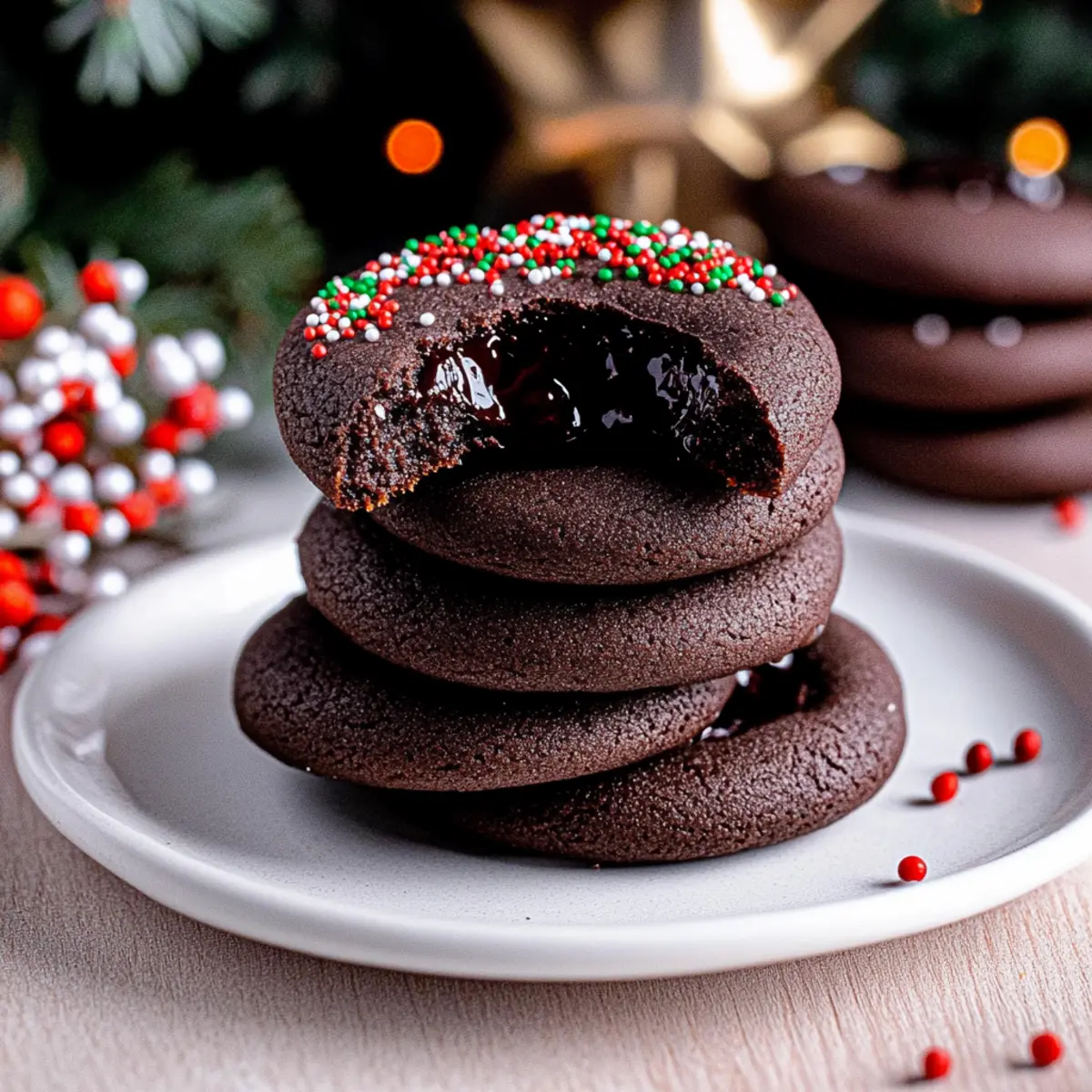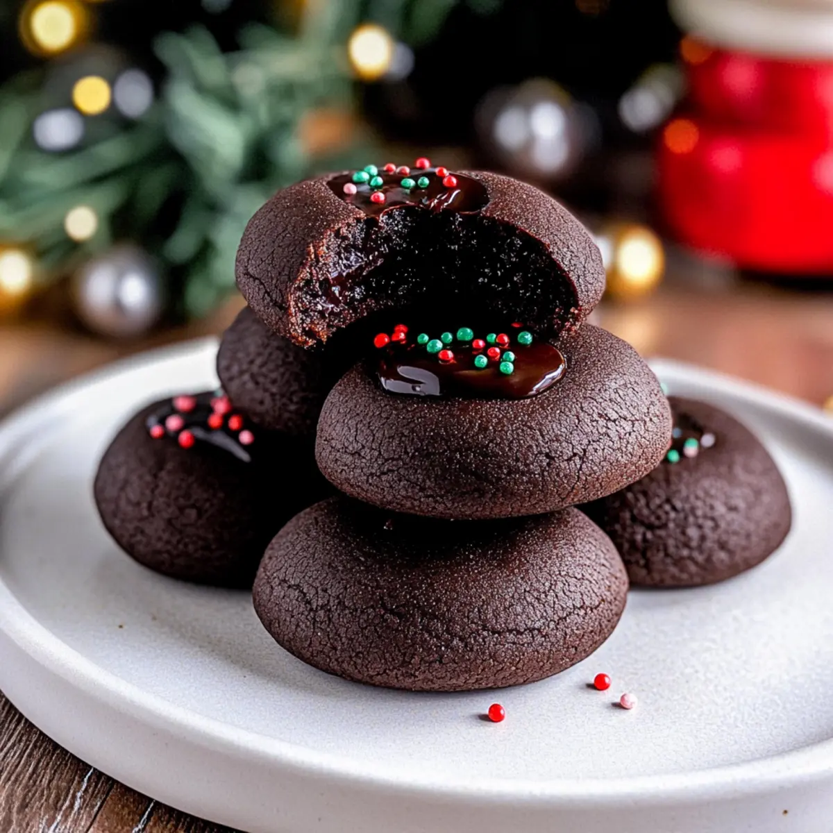 As I swirled the velvety chocolate ganache into the indents of my freshly baked cookies, I felt a rush of excitement—these are not just any cookies, but Chocolate Thumbprint Cookies that transform the ordinary into something extraordinary. Rich and chewy, each bite delivers an indulgence that’s both satisfying and nostalgia-inducing, perfect for sharing with loved ones. This delightful recipe is not only a crowd-pleaser but also quick to whip up, making it ideal for last-minute holiday gatherings or cozy afternoons at home. Imagine serving these tantalizing treats that look as scrumptious as they taste—who could resist? Curious about the secret to achieving that perfect texture and flavor? Let’s dive into the recipe! Why are Chocolate Thumbprint Cookies a Must? Decadence at Its Finest: These cookies feature a rich chocolatey base that will make your taste buds dance with joy. Velvety Ganache: The smooth ganache center adds a luxurious touch like no other, perfect for impressing guests during holiday gatherings. Quick and Easy: With just a handful of ingredients and simple steps, you’ll have a batch ready in no time—ideal for unexpected cravings or last-minute get-togethers. Ultimate Sharing Treat: Their stunning appearance, sprinkled with nonpareils, makes them a delightful addition to any dessert table, inviting everyone to sneak a taste. Texture Perfection: Expect a soft, chewy cookie contrasted by a luscious ganache that’s reminiscent of a gourmet masterpiece you’d find at a bakery. Give them a try as a follow-up to your favorites like Brown Butter Chocolate or Cinnamon Roll Cookies—these Chocolate Thumbprint Cookies are destined to become your new go-to! Chocolate Thumbprint Cookies Ingredients Transform your baking with these irresistible cookies! For the Cookie Base All-purpose flour – Provides structure; be sure to measure correctly by spooning and leveling. Dutch process cocoa powder – Offers a deep chocolate flavor; can be substituted with natural cocoa for a milder taste. Salt – Enhances overall flavor; opt for kosher or sea salt for the best results. Baking powder – Acts as a leavening agent to give the cookies a slight rise; freshness is key! Unsalted butter – Adds richness and moisture; can replace with margarine or a dairy-free option. Light brown sugar – Provides sweetness and a hint of caramel; dark brown sugar can be used for deeper flavor. Granulated white sugar – Adds extra sweetness; omit for less sugary cookies. Egg yolks – Contributes to the moist and rich texture; for substitutes, consider flaxseed or applesauce (though this may alter the texture). Vanilla bean paste/extract – Infuses aromatic goodness; almond extract works well as an alternative. For the Ganache Filling Semi-sweet chocolate chips – Essential for making the decadently smooth ganache; dark chocolate is a fantastic substitute! Heavy whipping cream – Creates the rich, silky ganache; you can use coconut cream for a dairy-free option. For Decoration Nonpareils (optional) – These delightful little sprinkles add a charming touch for visual appeal. These Chocolate Thumbprint Cookies are sure to become a cherished favorite, making sweet moments even more memorable! Step‑by‑Step Instructions for Chocolate Thumbprint Cookies Step 1: Preheat the Oven Begin by preheating your oven to 350°F (175°C). While it’s heating up, prepare two baking sheets by lining them with parchment paper, which will help prevent the cookies from sticking and ensure they bake evenly. Step 2: Mix Dry Ingredients In a medium bowl, whisk together 1 cup of all-purpose flour, 1/3 cup of Dutch process cocoa powder, 1/4 teaspoon of salt, and 1/2 teaspoon of baking powder. This mixture is crucial as it provides the foundation for your Chocolate Thumbprint Cookies; set it aside as you progress to the next step. Step 3: Cream the Butter and Sugars In a large mixing bowl, combine 1/2 cup of softened unsalted butter with 1/2 cup of light brown sugar and 2 tablespoons of granulated sugar. Using an electric mixer, beat the mixture on medium speed for about 2 minutes, or until it becomes light and fluffy, creating a rich base for your cookies. Step 4: Incorporate Egg Yolks and Vanilla Add 2 large egg yolks and 1 teaspoon of vanilla bean paste or extract to the creamed butter mixture. Mix for an additional 1 to 2 minutes until the mixture is pale and well combined. This step infuses your dough with moisture and flavor for those decadent Chocolate Thumbprint Cookies. Step 5: Combine Dry and Wet Ingredients Gradually add the dry mixture to the wet ingredients, mixing on low speed until just combined. Be careful not to overmix; you want the dough to be soft and sticky, which is perfect for shaping into your cookie balls. Step 6: Shape the Cookie Dough Using a tablespoon measuring spoon, scoop out the dough and roll it into balls about 1 inch in diameter. Place the dough balls on the prepared baking sheets, spacing them about 2 inches apart. These will form the base of your tasty Chocolate Thumbprint Cookies! Step 7: Create Indentations Take a 1/4 teaspoon measuring spoon and gently press down the center of each dough ball to create an indentation. This step is vital for holding the ganache, so make sure to press firmly enough for a defined well but without flattening the cookie completely. Step 8: Chill the Cookies Place the trays with the shaped cookies in the refrigerator and chill for at least 1 hour. Chilling helps maintain the cookie shape during baking and enhances the chewy texture that you’ll love in your Chocolate Thumbprint Cookies. Step 9: Bake the Cookies Once chilled, bake the cookies in the preheated oven for 9 to 11 minutes. Halfway through, gently press the centers again with the same measuring spoon to retain the indentations. You’ll know they’re done when the edges look set but the centers remain soft. Step 10: Cool on Baking Sheets After baking, remove the trays from the oven and