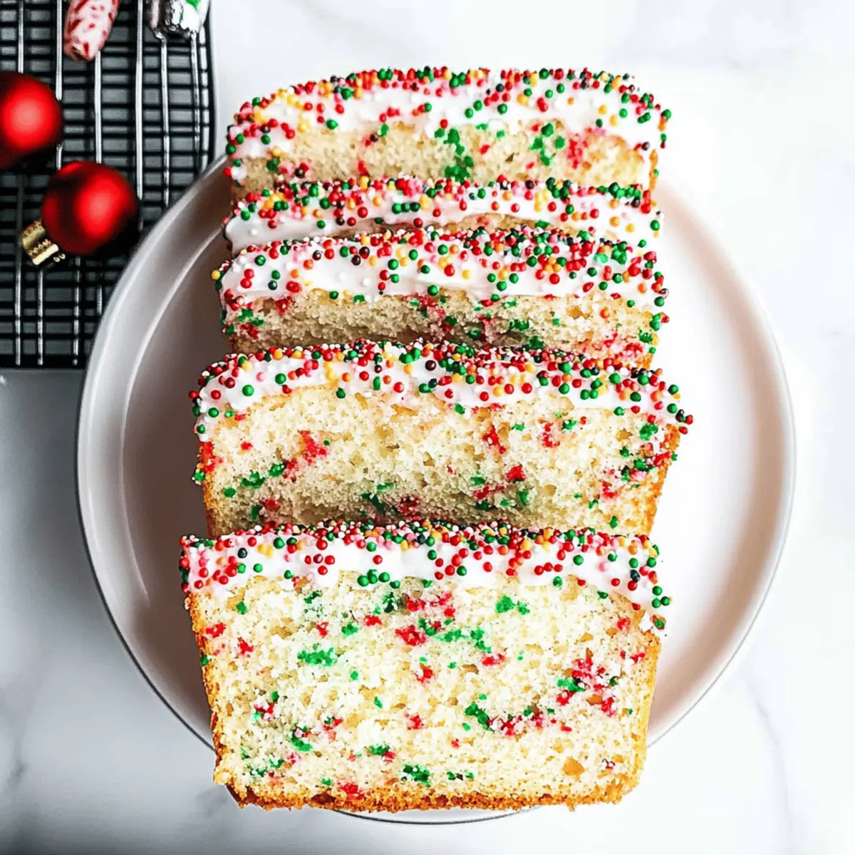 As I sift through mounds of glittery sprinkles, the holiday spirit envelops me like a warm hug. My heart races with excitement as I prepare to bake the most delightful treat: Christmas Sprinkle Buttermilk Bread. This festive quick bread stands out with its tender crumb and vibrant sprinkles, making it a must-have centerpiece for your holiday brunch or a charming gift for loved ones. Not only is this recipe a breeze to whip up, but it also brings smiles to everyone at the table, proving that homemade delights can outshine any store-bought option. So why wait? Let’s get baking and fill our kitchens with the joyous aroma of the season! Are you ready to sprinkle a little magic into your holiday traditions? Why is this bread a holiday must? Festive Vibes: This Christmas Sprinkle Buttermilk Bread bursts with holiday cheer, making it the perfect centerpiece for your brunch table. Easy to Make: With simple steps and everyday ingredients, you’ll have a delicious loaf ready in no time. Crowd-Pleasing Flavor: The harmonious balance of sweet buttermilk and nutty almond extract creates a delightful flavor that everyone will love. Versatile Treat: Whether enjoyed warm with butter or gifted for the season, it brings joy to every occasion. Fun Variations: Get creative by adding chocolate chips or experimenting with different sprinkles for year-round festivities. If you’re looking for more delicious bread ideas, check out this Roasted Apple Bread or explore Blueberry Buttermilk Pancake Casserole for your next brunch. Christmas Sprinkle Buttermilk Bread Ingredients For the Bread All-Purpose Flour – Provides structure; substitute with gluten-free flour blend for a gluten-free option. Sugar – Adds sweetness and moisture; can be replaced with coconut sugar for a lower glycemic index alternative. Baking Powder – Leavening agent necessary for rise; ensure it’s fresh for best results. Baking Soda – Works with baking powder for extra lift; precise measurement is key to avoid bitterness. Kosher Salt – Enhances flavor; feel free to use sea salt as a substitute. Buttermilk – Adds crucial moisture and tanginess; use milk with lemon juice or vinegar if you need a substitution. Egg (lightly beaten) – Acts as a binder and adds richness; a flax egg can be used for a vegan version. Unsalted Butter (melted and cooled) – Contributes flavor and moisture; swap for vegetable oil or melted coconut oil if desired. Almond Extract – Infuses a distinct flavor; vanilla extract is a great alternative. Sprinkles – For colorful decoration; use jimmies for the batter and nonpareils for the topping so they do not bleed. For the Glaze Powdered Sugar – Sweetens and thickens the glaze; can be replaced with coconut powdered sugar for a refined sugar-free version. Light Corn Syrup – Helps achieve a smooth glaze consistency; honey can be an alternative, but it may alter the flavor slightly. This Christmas Sprinkle Buttermilk Bread will surely bring cheer and festivity to your holiday celebrations! Step‑by‑Step Instructions for Christmas Sprinkle Buttermilk Bread Step 1: Preheat and Prepare Start by preheating your oven to 350°F (175°C). While it’s heating, line a 9×5 inch aluminum loaf pan with parchment paper, allowing some overhang for easy removal later. This ensures your Christmas Sprinkle Buttermilk Bread will come out perfectly, without sticking to the pan. Step 2: Mix Dry Ingredients In a large mixing bowl, whisk together 2 cups of all-purpose flour, ¾ cup of sugar, 2 teaspoons of baking powder, ½ teaspoon of baking soda, and ½ teaspoon of kosher salt. Take a moment to ensure there are no lumps and everything is well combined—this is the foundation of your delightful bread. Step 3: Combine Wet Ingredients In a separate bowl, mix together 1 beaten egg, 1 cup of buttermilk, ½ cup of melted and cooled unsalted butter, and 1 teaspoon of almond extract. Stir gently until smooth, taking care not to overmix. The wet mixture will bring your Christmas Sprinkle Buttermilk Bread to life with moisture and flavor. Step 4: Blend Wet and Dry Mixtures Pour the wet ingredients into the bowl with the dry ingredients. Gently fold them together using a spatula until just combined; it’s okay if a few small lumps remain. This careful mixing keeps your bread tender, so don’t overwork the batter—your festive bread is taking shape! Step 5: Add Sprinkles Now for the fun part! Fold in ½ cup of jimmies to the batter, which will add vibrant color throughout your Christmas Sprinkle Buttermilk Bread. This step not only enhances the appearance but also brings festive spirit to every bite. Step 6: Bake the Bread Pour the colorful batter into your prepared loaf pan, smoothing the top for even baking. Place it in your preheated oven and bake for 45-50 minutes. The bread is ready when it turns golden brown, and a toothpick inserted into the center comes out clean, leaving no crumbs. Step 7: Cool in the Pan Once baked, remove the Christmas Sprinkle Buttermilk Bread from the oven and allow it to cool in the pan for about 5 minutes. This initial cooling helps it firm up just enough for an easy transfer to the wire rack, so keep an eye on it during this crucial step. Step 8: Transfer and Cool Completely After 5 minutes, carefully lift the bread from the pan using the parchment overhang and place it on a wire rack. Let it cool completely for 1-2 hours; this allows your bread to set properly, ensuring a moist interior that’s perfect when sliced. Step 9: Prepare the Glaze While the bread cools, whisk together 1 cup of powdered sugar, 2 tablespoons of buttermilk, and 1 tablespoon of light corn syrup in a bowl. Adjust the consistency if needed, aiming for a smooth glaze that you can easily spoon over your cooled bread, adding a sweet finishing touch. Step 10: Glaze and Garnish Once the bread has cooled completely, generously spoon the glaze over the top. Immediately sprinkle nonpareils on top, allowing them to adhere to the 