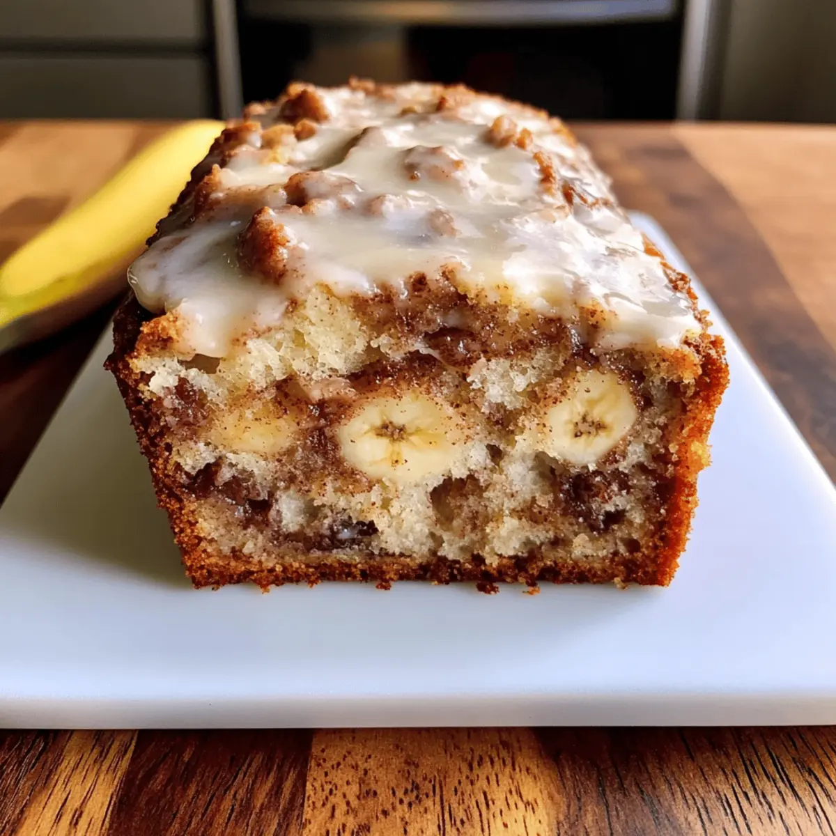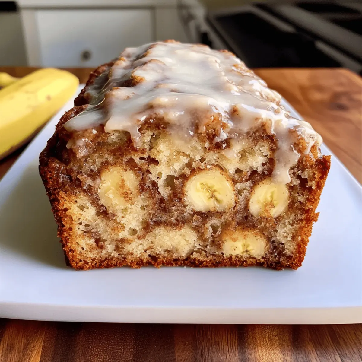 The warm, spiced aroma of Cinnamon Roll Banana Bread wafting through my kitchen is enough to transport me to cherished Sunday mornings spent with loved ones. This recipe marries the comforting qualities of traditional banana bread with a delicious cinnamon swirl, creating a vegan and gluten-free delight that’s easy to whip up. I adore how quickly it comes together, making it a perfect choice for breakfast, brunch, or even a sweet dessert after dinner. With natural sweetness from ripe bananas and a touch of maple syrup, you can indulge guilt-free. Plus, bonus points: it’s freezer-friendly, so you can always have a slice on hand for when the craving strikes! Are you ready to fill your home with this delightful aroma and enjoy a slice of heaven? Why is Cinnamon Roll Banana Bread a Must-Try? Irresistible Aroma: The moment it starts baking, your kitchen will be filled with an enchanting scent that’s impossible to resist, making it a favorite for family gatherings. Quick and Easy: With simple ingredients and minimal prep time, this recipe is perfect for busy mornings or spontaneous brunch plans. Vegan and Gluten-Free: Catering to diverse dietary preferences, this bread is a delicious treat everyone can enjoy, including those who are health-conscious. Versatile Enjoyment: Whether served warm with a pat of vegan butter or as a delightful dessert topped with vegan cream cheese glaze, it’s perfect for any occasion. Freezer-Friendly: Bake it today and store for later; simply slice and freeze for a quick, sweet indulgence whenever you crave this comforting treat. Cinnamon Roll Banana Bread Ingredients For the Bread • Mashed Bananas – Adds natural sweetness and moisture; use very ripe bananas for best results. • Melted Vegan Butter – Provides fat and enhances flavor; substitute with coconut oil for a different taste. • Maple Syrup – A natural sweetener to enhance flavor; agave syrup can be used as a substitute. • Almond or Oat Milk – Adds moisture and lightness; any plant-based milk works here. • Vanilla Extract – Adds depth of flavor; use pure extract for best results. • Baking Powder & Baking Soda – Leavening agents for rise; ensure they are fresh for the best effect. • Cinnamon – For that signature flavor; adjust quantity for personal taste. • Salt – Enhances overall flavors; essential for balance. • Flour (All-Purpose or Gluten-Free) – The main structure of the bread; gluten-free all-purpose flour can be used as a direct substitute. • Rolled Oats – Adds texture and heartiness; ensure they are certified gluten-free if necessary. • Light Brown Sugar – Provides sweetness with a molasses undertone for the cinnamon swirl; white sugar can be substituted if needed. For the Cinnamon Swirl • Melted Vegan Butter – Adds richness to the swirl; ensure it’s melted for easy mixing. • Light Brown Sugar – Sweetness and depth; enhances the swirl’s caramel-like flavor. • Cinnamon – Essential for that warm, comforting taste; feel free to adjust to your liking. For the Glaze • Powdered Sugar – Sweetness and creaminess for the glaze; sifting helps achieve a smooth texture. • Melted Vegan Butter – Adds richness to the glaze; make sure it’s fully melted. • Softened Vegan Cream Cheese – Gives that creamy texture and tangy flavor; adjust for consistency to your liking. Enjoy creating this delicious Cinnamon Roll Banana Bread that’s sure to warm your heart and home! Step‑by‑Step Instructions for Cinnamon Roll Banana Bread Step 1: Preheat and Prepare Begin by preheating your oven to 350°F (175°C) and greasing a 9×5-inch loaf pan with a thin layer of oil or vegan butter. This will ensure that your Cinnamon Roll Banana Bread releases easily after baking. Set the pan aside while you prepare the batter, letting it fully cool before touching. Step 2: Mix Wet Ingredients In a large mixing bowl, combine the mashed ripe bananas, melted vegan butter, maple syrup, almond or oat milk, and vanilla extract. Stir well until all the ingredients are blended smoothly, creating a luscious, creamy mixture. This blend serves as the sweet base for your Cinnamon Roll Banana Bread, ensuring it will be moist and delightful. Step 3: Whisk Dry Ingredients In a separate bowl, whisk together the baking powder, baking soda, cinnamon, salt, and your chosen flour, ensuring they are evenly distributed. The dry mix will provide structure and flavor to the bread. Once combined, set this mixture aside as you focus on integrating it with the wet ingredients. Step 4: Combine Wet and Dry Ingredients Gradually pour the dry flour mixture into the bowl with the wet ingredients. Use a spatula or wooden spoon to gently stir until just combined; be careful not to overmix, as this can lead to a denser loaf. The batter for your Cinnamon Roll Banana Bread should be thick but evenly moistened. Step 5: Fold in Rolled Oats Next, fold in the rolled oats gently, distributing them throughout the thick batter. This adds a heartiness to the bread and enhances the overall texture. The oats will also provide a lovely chewiness, making each slice satisfying, so be sure they are well incorporated without overworking the batter. Step 6: Prepare the Cinnamon Swirl In a small bowl, mix together the melted vegan butter, light brown sugar, and additional cinnamon. The mixture should be smooth and somewhat syrupy, creating a rich, flavorful swirl. Set this cinnamon mixture aside to layer into your Cinnamon Roll Banana Bread later, boosting that irresistible cinnamon aroma. Step 7: Layer the Batter and Swirl Spread half of the banana batter into the prepared loaf pan evenly. Next, drizzle half of the cinnamon swirl mixture on top of the batter. Carefully dollop and spread the remaining batter over this layer before finishing with the rest of the cinnamon swirl, adding a few ribbons for that signature cinnamon roll look. Step 8: Create a Swirl Design Using a knife or a skewer, gently swirl through th