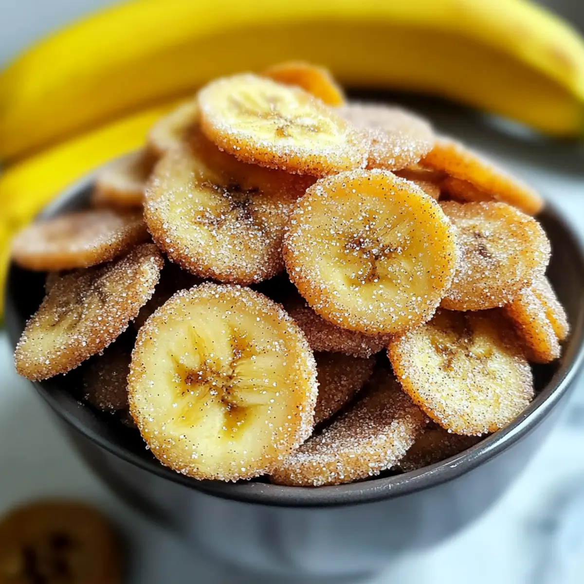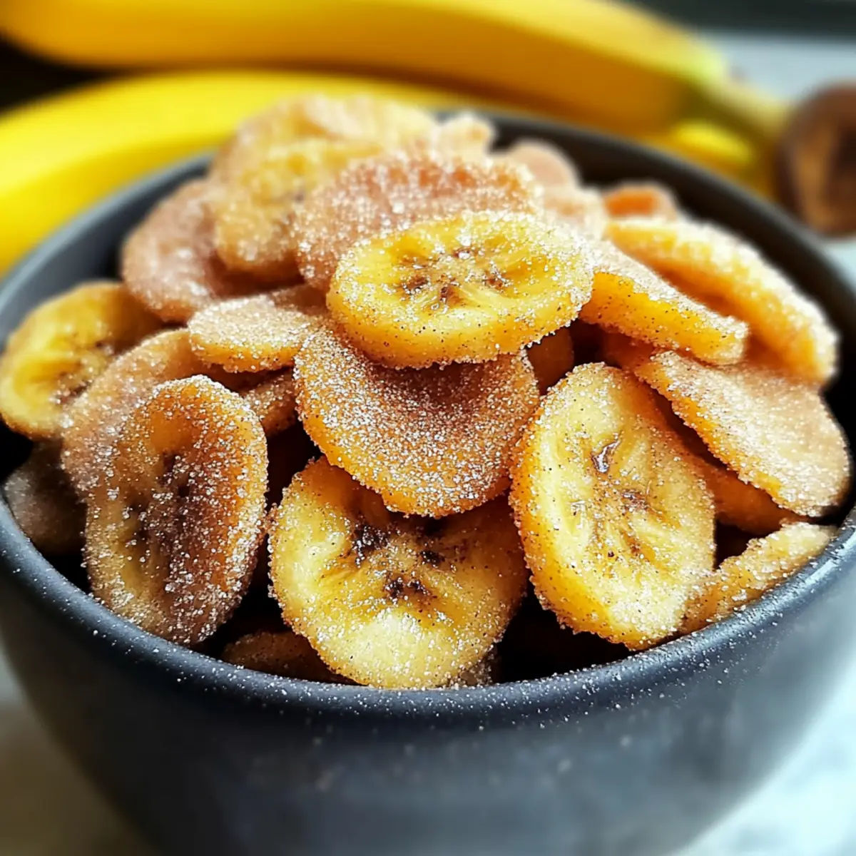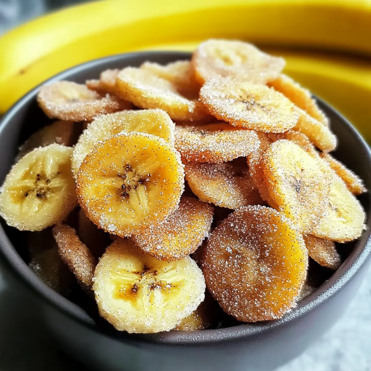 As the sweet aroma of cinnamon wafts through the kitchen, my mouth begins to water in anticipation. These Crispy Cinnamon Sugar Air Fryer Banana Chips are not just a treat; they’re a delightful solution for those of us wanting a scrumptious snack without the guilt. In just 22 minutes, you can turn ripe bananas into a crispy, healthy delight that’s perfect for any time of day. With their quick prep time and family-friendly appeal, it’s a recipe that proves you don’t have to sacrifice flavor for nutrition. Whether you’re looking for a fun way to keep the kids satisfied or just need a crunchy pick-me-up, these banana chips are your answer. Ready to discover how easy it is to make this guilt-free snack? Let’s dive in! Why Are These Banana Chips A Must-Try? Crispy Texture: The air fryer gives these banana chips their irresistibly crunchy texture, making each bite a joy. Guilt-Free Treat: Emphasizing health, this recipe proves that you can indulge without the guilt of typical snacks, fitting perfectly into a healthy lifestyle. Family-Friendly: Making it a great choice for families, kids will love the sweet, cinnamon flavor, and there’s no need for artificial additives. Quick and Easy: With just 22 minutes from start to finish, this recipe is perfect for those busy days when you crave something sweet yet wholesome. Versatile Flavors: Want to mix it up? Try adding cocoa powder or a drizzle of maple syrup for an exciting twist, just like you would with Cinnamon Sugar Cruffins or a hint of spice akin to Peanut Butter Banana! Cinnamon Sugar Air Fryer Banana Chips Ingredients • Here’s what you’ll need to create these delightful chips! For the Chips Ripe bananas – Choose bananas with brown spots for peak sweetness and fiber. Neutral oil – Essential for crispiness; consider coconut or avocado oil for a healthier swap. Granulated sugar – The sugar creates that irresistible sweetness; light brown sugar adds a rich flavor twist. Ground cinnamon – This spice elevates the flavor profile, giving your chips a cozy touch. Sea salt (optional) – A pinch can enhance the sweetness and balance flavors; feel free to skip it if preferred. Feel free to experiment with different flavors for your Cinnamon Sugar Air Fryer Banana Chips—the possibilities are endless! Step‑by‑Step Instructions for Cinnamon Sugar Air Fryer Banana Chips Step 1: Slice the Bananas Begin by peeling the ripe bananas and slicing them into thin discs, approximately 1/8 inch thick. This thickness is crucial for achieving that desired crispy texture. As you slice, arrange the banana pieces on a clean cutting board, ensuring a uniform cut. Aim for bananas with brown spots, as they yield the best flavor for your cinnamon sugar air fryer banana chips. Step 2: Mix Ingredients In a medium mixing bowl, combine the banana slices with the neutral oil, granulated sugar, ground cinnamon, and a pinch of sea salt if desired. Gently toss the mixture together until all the banana pieces are evenly coated with the oil and the sweet spice blend. This step ensures each bite of your cinnamon sugar air fryer banana chips bursts with flavor. Step 3: Preheat Air Fryer Set your air fryer to a temperature of 350°F (175°C) and preheat it for about 3 to 5 minutes. Preheating is essential as it helps create that perfect crunchiness once the banana slices begin cooking. While you wait, keep an eye on the air fryer indicator light, which will signal when it reaches the desired temperature and is ready for the banana chips. Step 4: Arrange in Air Fryer Carefully arrange the coated banana slices in a single layer within the air fryer basket. Be sure to avoid overlapping, as this allows the hot air to circulate around each chip for even cooking. If necessary, cook in batches to maintain proper airflow. This step is vital for creating the crispy texture that characterizes cinnamon sugar air fryer banana chips. Step 5: Air Fry Cook the banana slices in the air fryer for 10 to 12 minutes, flipping them halfway through the cooking time. As they cook, keep a close watch to avoid burning, especially as you approach the 8-minute mark. The chips will gradually turn golden brown and crispy, a visual indication that your cinnamon sugar air fryer banana chips are almost ready. Step 6: Cool and Serve Once the chips are golden and satisfyingly crispy, carefully remove them from the air fryer and allow them to cool on a wire rack for a few minutes. This cooling period enhances their crunch. If desired, sprinkle with a little extra cinnamon sugar before serving. Now, dig in and enjoy these deliciously healthy cinnamon sugar air fryer banana chips! What to Serve with Crispy Cinnamon Sugar Air Fryer Banana Chips Indulging in these sweet, crunchy delights opens up a world of pairing possibilities that enhance your snack experience. Creamy Yogurt: A bowl of Greek yogurt perfectly complements the crunchy sweetness, adding a creamy texture that balances each bite. Fresh Fruit Salad: Bright, juicy fruit like strawberries or blueberries brings a vibrant freshness, creating a delightful contrast with the crispy chips. Nut Butter Dip: Pair your chips with almond or peanut butter for a satisfying crunch and creaminess that elevates your snacking to the next level. Homemade Granola: Serve alongside a scoop of crunchy granola for an added layer of texture and nutty flavor; it’s a delightful twist! Cheese Platter: Combine them with soft cheeses, like goat cheese, for a sweet-savory combo that’s perfect for a sophisticated snack time. Herbal Tea: Sip on a warm cup of chamomile or mint tea to balance out the sweetness, creating a cozy and inviting afternoon snack. Chocolate Drizzle: Drizzling melted dark chocolate over the chips takes them to a whole new level of indulgence, merging sweet and rich flavors beautifully. Coconut Flakes: Sprinkle toasted coconut flakes for an exotic touch that pairs beautifully with the bananas and cinnamon, adding a delightful crunch too!