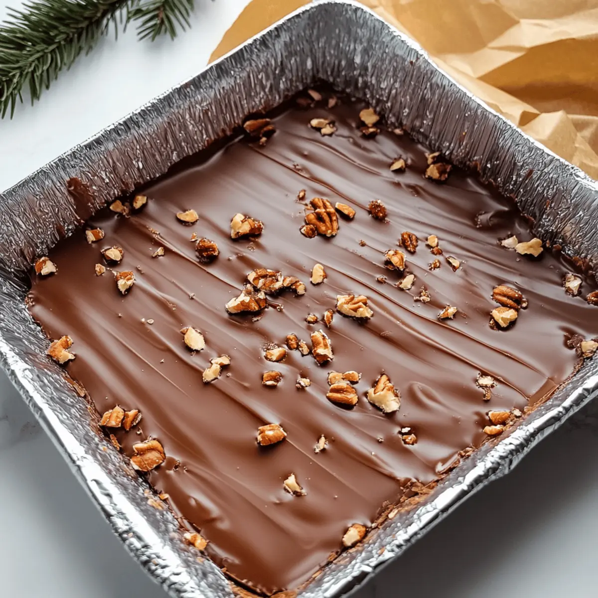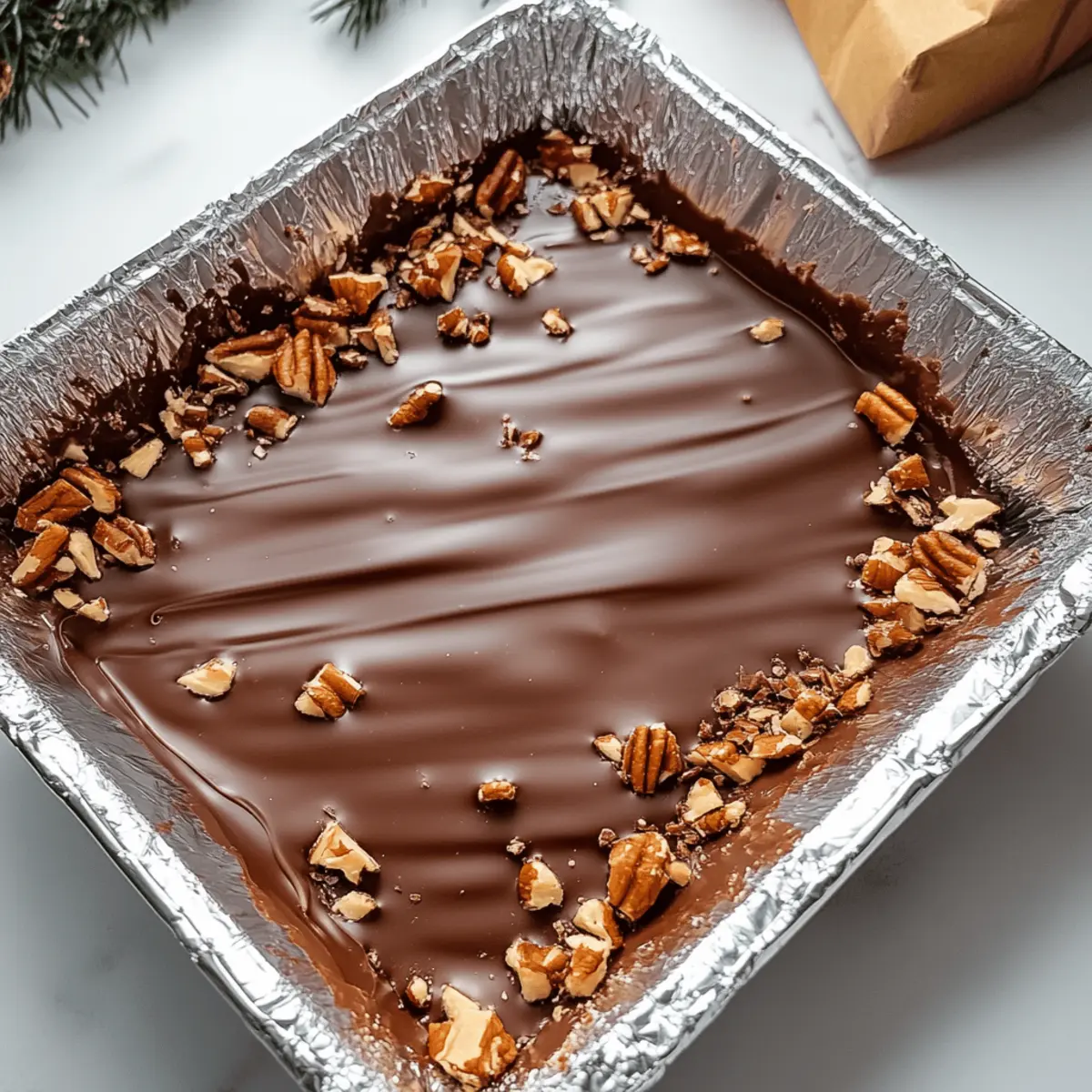 Begin by preheating your oven to 350°F (175°C). While it warms, line a 9×9 inch baking dish with parchment paper, ensuring it hangs over the edges for easy removal later. Evenly spread 1 cup of chopped pecans or almonds on the bottom; this will create a flavorful base for your Classic Christmas Toffee.