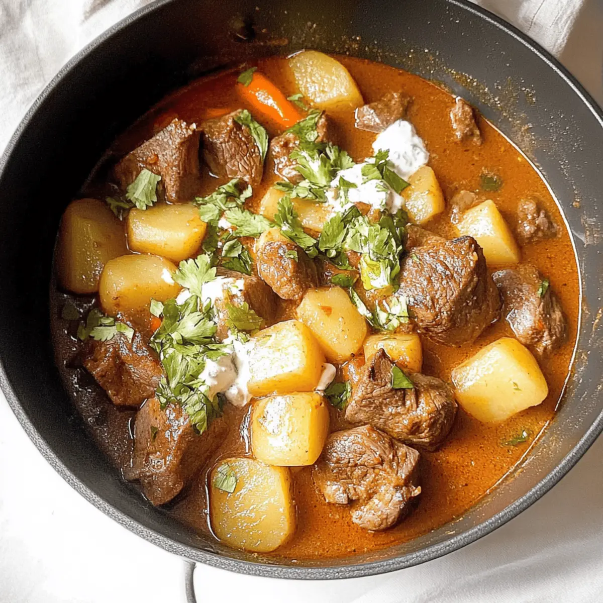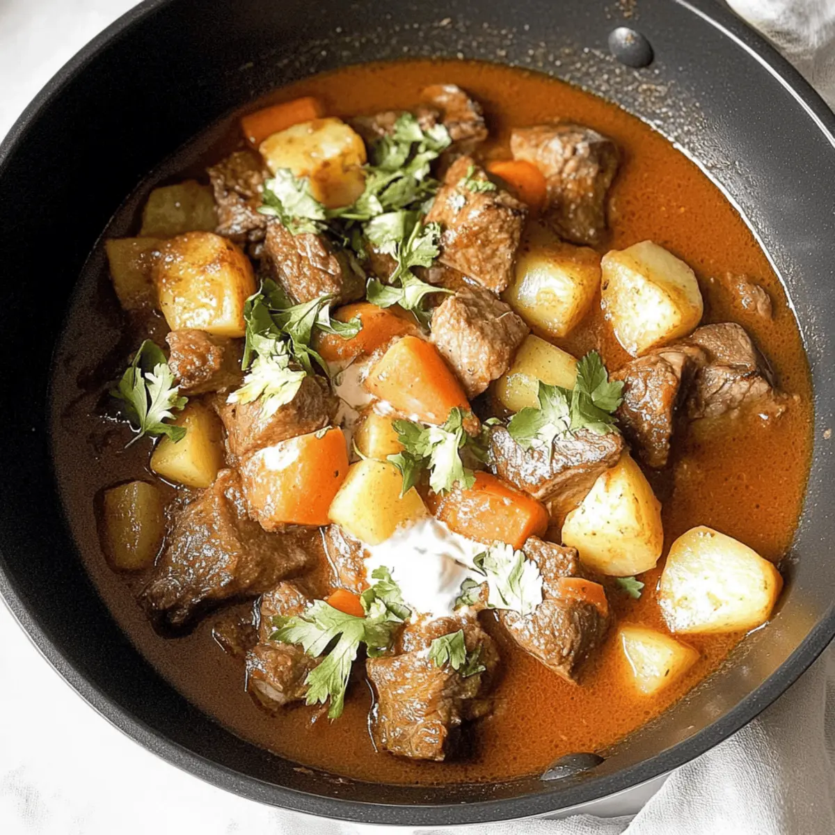 As I stirred the pot, the rich aroma of spices wafted through my kitchen, instantly transporting me to a cozy Southeast Asian market. This Hearty Coconut Lamb Curry is more than just a meal; it’s a comforting embrace on busy weeknights, ready to be savored with family or friends. Packed with tender lamb, creamy coconut milk, and vibrant vegetables, this one-pot wonder is incredibly versatile. You can effortlessly customize it with your favorite veggies or even make it in a slow cooker for that hands-off cooking experience we all crave. Plus, leftovers only get better, making it a perfect candidate for meal prep! Curious to dive into this aromatic fusion that will leave everyone asking for seconds? Let’s get cooking! Why Is Coconut Lamb Curry a Must-Try? Comfort in every bite: This Coconut Lamb Curry wraps you in a warm hug, combining tender lamb with creamy coconut milk for ultimate satisfaction. Easy one-pot goodness: With minimal cleanup, this recipe offers the convenience of a one-pot meal, making it perfect for busy weeknights. Customizable and versatile: Whether you prefer chickpeas or seasonal veggies, you can tailor it to suit your taste. Meal prep-friendly: Leftovers only get more flavorful, making this dish ideal for quick lunches throughout the week. Taste of Southeast Asia: Experience a delightful culinary escape with every spoonful, transporting your taste buds to a vibrant market scene. Don’t forget to check out my Spicy Maple Chicken for another crowd-pleasing dish! Coconut Lamb Curry Ingredients For the Curry • Vegetable Oil – Used for sautéing; feel free to substitute with olive oil for a different flavor. • Boneless Leg of Lamb or Lamb Shoulder (1 lb) – The main protein, bringing richness; can substitute with beef or chicken if desired. • Large Onion (1, finely chopped) – Adds sweetness and depth; shallots can be used for a milder flavor. • Garlic (1 tsp, minced) – Enhances aroma and flavor; fresh is recommended over pre-minced for the best results. • Garam Masala Powder (2 tsp) – A spice blend offering warmth and complexity; replace with curry powder if unavailable. • Yellow Curry Powder (1 tsp) – Adds color and flavor; can be omitted if using just garam masala. • Cumin Seeds (1 tsp) – Provides earthy flavor; ground cumin is a suitable alternative if whole seeds are not available. • Salt (1 tsp) – Essential for seasoning; use kosher or sea salt for the best results. • Coconut Milk (1 can, 400 ml) – Creates creaminess and richness; almond milk can be used for a lighter version, but the flavor will differ. • Tomato Paste (1 tbsp) – Adds depth and acidity; can substitute with fresh chopped tomatoes or tomato sauce. • Medium Potatoes (2, peeled and cut into 1-inch pieces) – Offers heartiness; feel free to swap with sweet potatoes or add extra carrots. • Medium Carrots (2, peeled and cut into 1-inch pieces) – Adds sweetness and color; other veggies like broccoli or cauliflower work beautifully too. For Garnish • Fresh Cilantro (1 tsp, finely chopped) – Adds brightness to the dish; substitute with parsley or omit if preferred. With these simple ingredients and a touch of love, you’re about to create a nourishing Coconut Lamb Curry that will delight your family and friends! Step‑by‑Step Instructions for Coconut Lamb Curry Step 1: Heat the Oil In a large skillet, heat 2 tablespoons of vegetable oil over medium heat until shimmering. This should take about 2 minutes. Once hot, prepare to add the lamb, ensuring that the oil is hot enough to prevent sticking. You’ll know it’s ready when a drop of water sizzles upon contact. Step 2: Brown the Lamb Carefully add the cubed boneless leg of lamb or lamb shoulder to the skillet. Cook the lamb for about 5-7 minutes, stirring occasionally until it’s beautifully browned on all sides. The meat should develop a rich, golden color, releasing its delicious aroma, indicating it’s sealing in those flavors. Step 3: Sauté the Aromatics Add the finely chopped onion and minced garlic to the skillet with the lamb. Sauté them together for about 2-3 minutes until the onions are soft and translucent. This step enhances the base flavor of your Coconut Lamb Curry, preparing for the spices to shine. Step 4: Add the Spices Stir in the garam masala, yellow curry powder, and cumin seeds, cooking for an additional minute. You’ll notice the spices releasing their warm, fragrant aromas. Keep stirring to combine them thoroughly with the lamb and onion mixture, allowing them to coat everything evenly. Step 5: Incorporate Coconut Milk and Vegetables Pour in the can of coconut milk along with 1 tablespoon of tomato paste, and add the chopped potatoes and carrots. Stir well to ensure everything is combined, and the vegetables are fully coated in the creamy mixture. This should take about 1-2 minutes. Step 6: Simmer on the Stovetop For stovetop cooking, reduce the heat to low and cover the skillet. Allow the curry to simmer gently for about 1 hour, stirring occasionally, until the lamb is tender and the vegetables are cooked through. Keep an eye on the sauce, which should thicken beautifully as it cooks. Step 7: Slow Cooker Option If you prefer using a slow cooker, transfer the entire mixture to your slow cooker after Step 5. Cover and cook on high for 4-6 hours or on low for 8-10 hours. This method allows the flavors of the Coconut Lamb Curry to deepen, resulting in a rich and harmonious dish. Step 8: Final Adjustments and Serve Check the curry’s consistency towards the end. If it seems too thick, gradually add a splash of water to reach your desired texture. Before serving, garnish the Coconut Lamb Curry with freshly chopped cilantro for a burst of freshness. This dish is now ready to be enjoyed alongside rice or naan! Make Ahead Options These Coconut Lamb Curry preparations are a lifesaver for busy weeknights! You can chop your vegetables and marinate the lamb up to 24 hours in advance, 