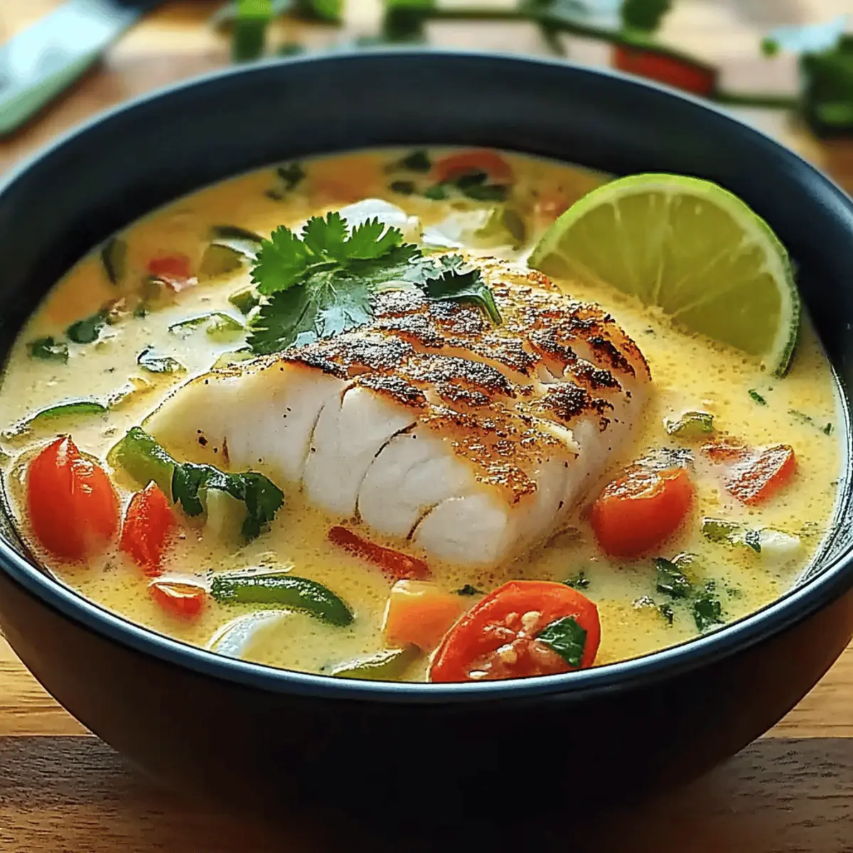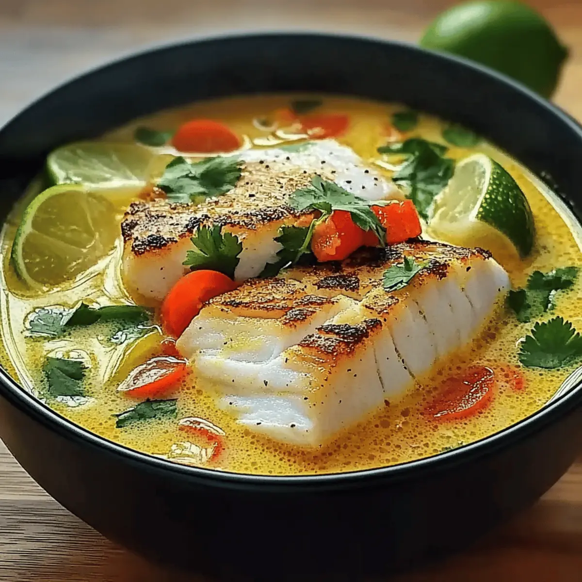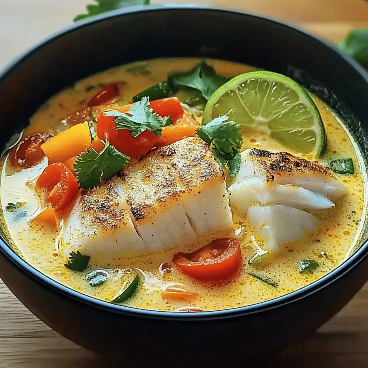 As I stirred the pot, the sweet aroma of coconut and zesty lime transported me to sun-kissed shores far away. Coconut Lime Fish Soup is my go-to for a quick and easy dinner that doesn’t skimp on flavor. With creamy coconut milk enveloping tender fish, this dish offers an inviting embrace of both comfort and freshness. It’s perfect for those evenings when you need a cozy meal without spending hours in the kitchen. Plus, it’s incredibly customizable! Whether you like it packed with seafood or prefer a spicy kick, this soup easily adapts to your taste. Are you ready to bring a taste of the tropics to your table? Let’s dive into this recipe together! Why Is Coconut Lime Fish Soup Awesome? Quick and Easy: This recipe comes together in about 30 minutes, making it the perfect weeknight meal. Tropical Flavor: Experience a burst of sunshine with creamy coconut milk and zesty lime that brighten up every bite. Customizable: Whether you’re a seafood lover or looking for a vegetarian twist, this soup easily adapts to your preferences—try using tofu or creating a seafood medley! Health-Conscious: Gluten-free and rich in nutrients, it’s a wholesome comfort food you won’t feel guilty about. Crowd-Pleaser: Perfect for family dinners or cozy gatherings, it impresses with its vibrant colors and delicious aroma. For a full experience, pair it with some warm crusty bread or jasmine rice! Coconut Lime Fish Soup Ingredients For the Soup Base • White fish fillets – A primary protein source; substitute with cod, halibut, or tilapia if desired. • Vegetable oil – Ideal for sautéing aromatics; coconut oil adds an extra tropical flavor. • Onion – Adds sweetness and depth; use yellow or white onions for the best results. • Garlic – Provides a robust flavor; fresh minced garlic is recommended for maximum taste. • Ginger – Imparts warmth and spice; use fresh grated ginger for the most vibrant flavor. • Vegetable or fish broth – Serves as the soup’s liquid base; opt for low-sodium broth to control saltiness. • Coconut milk – Creates a creamy, tropical flavor; full-fat coconut milk delivers the best texture. For the Vegetables • Cherry tomatoes – Bring sweetness and acidity; can be replaced with diced regular tomatoes if needed. • Bell pepper – Offers a sweet crunch; any color works, with green being more bitter and red sweeter. Flavor Enhancers • Fish sauce – Enhances umami flavor; omit for a delicious vegetarian version. • Lime juice and zest – Essential for brightness and acidity; fresh limes provide the most excellent flavor. • Salt and pepper – Season to taste; adjust based on the saltiness of the broth. For Garnishing • Fresh cilantro – Adds a fresh herbaceous note; can be exchanged with parsley for a different flavor profile. • Lime wedges – Serve alongside for extra citrus zing; perfect for enhancing the soup’s brightness! Each ingredient in this Coconut Lime Fish Soup contributes to a delightful and comforting dish, tailored to bring a taste of the tropics to your table! Step‑by‑Step Instructions for Coconut Lime Fish Soup Step 1: Prepare the Fish Begin by cutting your white fish fillets into bite-sized pieces, ensuring they are uniform for even cooking. Set the fish aside on a clean cutting board; this helps keep everything organized as you move forward to create the delightful Coconut Lime Fish Soup. Step 2: Heat the Oil In a large pot, heat a tablespoon of vegetable oil over medium heat for about 2 minutes until shimmering. This oil will be the foundation for your aromatic base. Once hot, you’ll be ready to add the onions, garlic, and ginger to create a fragrant environment for your soup. Step 3: Sauté the Aromatics Add the diced onion, minced garlic, and grated ginger to the pot, stirring occasionally for about 3-4 minutes. Cook until the onions become translucent and tender. The scents should fill your kitchen, indicating that it’s time to move on to the next flavorful step in your Coconut Lime Fish Soup. Step 4: Add the Broth Pour in the vegetable or fish broth, increasing the heat slightly to bring the mixture to a gentle simmer. Allow this to cook for about 5 minutes; you’ll notice the fragrance deepening as the flavors meld perfectly. This warm, savory base is essential for your delicious soup. Step 5: Incorporate the Coconut Milk Stir in the luscious coconut milk, blending it fully with the simmering broth for an even creaminess. This step brings the tropical essence of the Coconut Lime Fish Soup to life, so let it simmer together for an additional 2-3 minutes, allowing the soup to thicken slightly. Step 6: Add Vegetables Toss in the halved cherry tomatoes and sliced bell pepper, stirring them into the pot. Let this colorful mix simmer for 5 minutes, which softens the vegetables and adds vibrant flavors to your soup. You’ll begin to see the rich colors merging, making it even more appetizing. Step 7: Enhance with Seasonings Mix in the fish sauce, lime juice, and lime zest, then season with salt and pepper to taste. Stir everything together and let the soup simmer for another 2 minutes. This step is crucial for layering those tropical flavors that define your Coconut Lime Fish Soup. Step 8: Cook the Fish Gently add the prepared fish pieces to the pot, ensuring they are submerged in the flavorful broth. Allow the fish to cook for about 5-7 minutes, or until it becomes opaque and flakes easily with a fork. This is the moment where your soup truly comes together! Step 9: Final Touches Taste your Coconut Lime Fish Soup and adjust the seasoning if necessary, adding a pinch of salt or extra lime juice. Once perfectly balanced, prepare to serve this warm, comforting dish. The harmonious blend of flavors will surely delight your taste buds. Step 10: Serve and Garnish Ladle the soup into bowls and garnish with fresh cilantro and lime wedges for an added punch of flavor. Presenting this tropical Coconut Lime Fish Soup not on