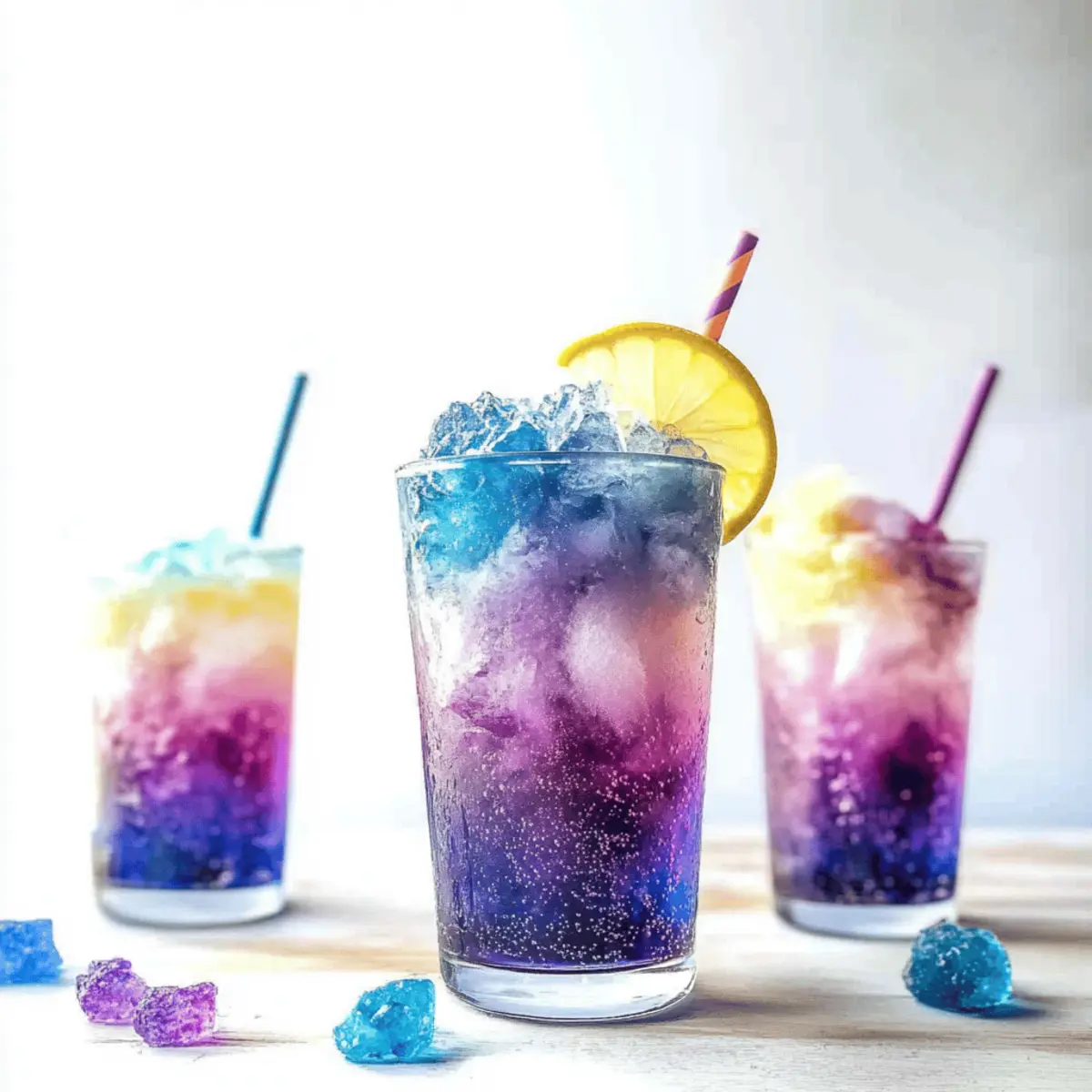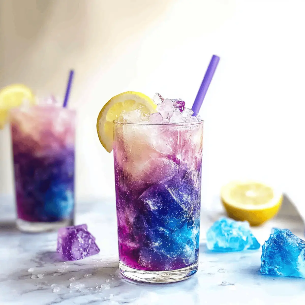 As the sun sets on another hot summer day, I find myself dreaming of a drink that not only quenches my thirst but also dazzles the eye. Enter the Color Changing Galaxy Lemonade—a delightful fusion of tart lemon and whimsical wonder. This easy-to-make summer drink captures the imaginations of both kids and adults alike, transforming before your eyes thanks to vibrant butterfly pea flower ice. The dual charm of refreshing flavor and stunning visuals makes this a perfect centerpiece for summer gatherings. Plus, it’s an incredibly fun way to introduce a bit of science to your family’s beverage repertoire! So, are you ready to impress your friends with a drink that’s as entertaining as it is delicious? Let’s dive into this magical recipe together! Why is Color Changing Lemonade So Special? Visual Delight: The Color Changing Galaxy Lemonade is more than just a drink; it’s an experience! The enchanting color shift captivates everyone at your gathering. Simple Yet Impressive: With easy-to-follow steps, this recipe even allows novice chefs to create a stunningly magical drink. Versatile Beverage: Whether you want it non-alcoholic for the kids or spiked for the adults, the options are limitless. Try it as a refreshing mocktail, or add a splash of vodka! Perfect for Summer Gatherings: This drink is an ideal centerpiece for summer parties and barbecues, guaranteed to impress your guests. Pair it with some Fruity Pebble Sugar cookies for a vibrant dessert! Fun for Everyone: Engaging for children and delightful for adults, it makes for a great science lesson about color changes, making it a fun hands-on recipe for family bonding. Color Changing Lemonade Ingredients • To create this magical drink, gather the right ingredients! For the Magic Ice Dried Blue Pea Flowers – Use about 25-30 flowers or 4-5 tea bags for a vibrant blue color and delightful color-changing effect in your lemonade. Boiling Water – This is essential for steeping the blue pea flowers to extract their bold color. For the Lemonade Lemon Juice – Freshly squeezed juice adds a tangy flavor and activates the color change when mixed with pea flower tea. White Sugar – This sweetens your lemonade; feel free to adjust to taste—about 1 ½ cups creates a lovely, tart syrup. Crushed Regular Ice – It serves as the perfect base when assembling the drink. Crushed Butterfly Pea Magic Ice – These whimsical ice cubes change color upon contact with lemon juice, enhancing the galaxy effect! For the Fizz Club Soda – This adds a refreshing fizz while diluting the lemon syrup for a perfectly balanced drink. Optional Alcohol – For an adult version, consider adding vodka, tequila, or gin for an extra kick in this Color Changing Lemonade! Step‑by‑Step Instructions for Color Changing Galaxy Lemonade Step 1: Make Magic Ice Cubes Begin by boiling 2 cups of water in a saucepan. Add 25-30 dried blue pea flowers or 4-5 tea bags to the boiling water, steeping for 20–30 minutes until the water becomes a deep, vibrant blue. Strain the liquid to remove the flowers, then pour the tea into ice cube trays and freeze overnight, preparing for the color-changing lemonade magic. Step 2: Prepare Lemon Syrup In another saucepan, combine 1 ½ cups of sugar with 1 cup of freshly squeezed lemon juice over medium heat. Stir continuously to dissolve the sugar, heat for about 10 minutes until the syrup thickens slightly. Once done, remove from heat and stir in an additional ¼ cup of lemon juice. Allow the syrup to cool, ensuring it’s ready for the lemonade assembly. Step 3: Assemble the Lemonade Grab your favorite tall glass and fill it halfway with crushed regular ice. Next, layer on top a generous amount of the crushed butterfly pea magic ice, creating a stunning visual effect. Pour in ¼ to ⅓ cup of your cooled lemon syrup, then top off the drink with club soda or your preferred soda for some added fizz, making the Color Changing Galaxy Lemonade come alive. Step 4: Serve and Enjoy To elevate the visual display, add a few more magic ice cubes on top for maximum impact. Serve your Color Changing Galaxy Lemonade with colorful stirring sticks, inviting your guests to mix and witness the enchanting color transformation. Enjoy this refreshing beverage while marveling at its stunning gradient of blues, purples, and pinks! Make Ahead Options These Color Changing Lemonade preparations are perfect for busy home cooks seeking to save time! You can make the lemon syrup and store it in the refrigerator for up to 1 week or freeze it for longer storage, while the butterfly pea magic ice can be frozen for several weeks until needed. Simply prepare the syrup by combining the lemon juice and sugar, then simmer for 10 minutes and cool. To serve, fill glasses with crushed ice, layer in the magic ice, pour in the syrup, and top with club soda right before serving for that refreshing fizz. This way, you’ll have everything ready to create a showstopping drink with minimal effort! Tips for the Best Color Changing Lemonade Maximize Color: Use fresh, deep blue butterfly pea flowers or quality tea bags to ensure a vibrant color change in your lemonade. Balance Sweetness: Adjust sugar in the lemon syrup to your taste for the perfect balance; start with less and add more if needed. Stir Before Serving: Encourage guests to stir their drinks gently before sipping, allowing the enchanting color transformation to be fully visible and appreciated. Chill Ingredients: Ensure all your ingredients are cold when assembling the drink for maximum refreshment, especially the club soda! Freshly Squeeze: Always opt for fresh lemon juice over bottled to enhance the taste and quality of your Color Changing Lemonade. How to Store and Freeze Color Changing Lemonade Lemon Syrup: Store your lemon syrup in an airtight container in the refrigerator for up to 1 week. For longer storage, you can freeze it in ice cube trays and transfer the cubes to a zip-top bag for up to 3 months. Magic I