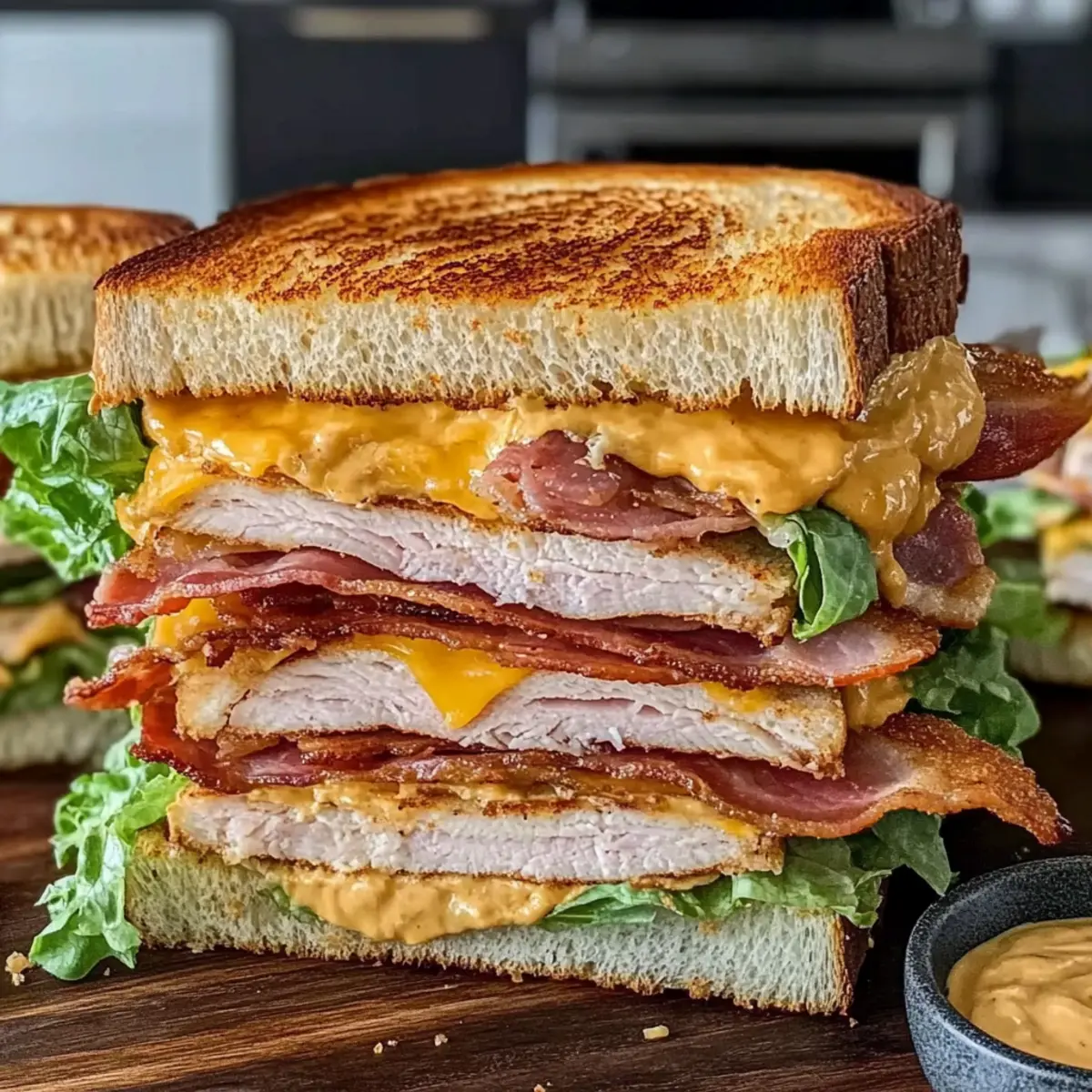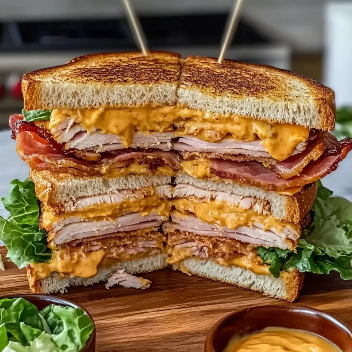 As I bit into that towering stack of crispy bread, the flavors of smoky turkey and sizzling bacon transported me straight to my grandparents’ picnic table. This Hearty Cowboy Club Sandwich Recipe isn’t merely a meal; it’s a delicious nod to cherished family gatherings and game day feasts. With its crunchy texture and fresh tomatoes, it’s the perfect antidote to those fast-food cravings. The best part? You can easily customize this sandwich to your liking—think gluten-free bread and dairy-free options that keep things inclusive for everyone at the table. Ready to whip up something satisfying and versatile? Let’s dive into deliciousness that will have your taste buds dancing! Why is this Cowboy Club Sandwich special? Flavor-packed and customizable: This Cowboy Club Sandwich invites your creativity! Swapping meats like smoked turkey for chicken or a plant-based option opens a world of flavors. Time-saving and easy: Perfect for a busy week, this meal preps without fuss. Just assemble your favorite ingredients in a few quick steps! Crowd-pleaser: Whether for family gatherings or game day, this sandwich caters to all tastes—make it gluten-free or dairy-free for dietary preferences! Unique twist: The signature cowboy mayo adds a delightful smoky touch, ensuring every bite is a flavor explosion, just like a classic club should be! Cowboy Club Sandwich Ingredients • Discover key ingredients for a flavor-packed delight! For the Bread Sourdough or Texas Toast – Offers a sturdy base that resists sogginess. For the Meats Smoked Turkey – Delivers juicy protein, but feel free to swap it out for chicken or roast beef. Ham – Adds savory richness; other deli meats can be used as substitutes. Crispy Bacon – Brings a satisfying crunch—turkey bacon makes for a lighter alternative. For the Cheese Sharp Cheddar Cheese – Infuses a robust flavor; you can replace it with Swiss or pepper jack for variety. For the Vegetables Fresh Vegetables (lettuce, tomato, etc.) – Provide freshness and texture; summer tomatoes shine, or use roasted peppers in colder months. For the Sauce Cowboy Mayo – A smoky mix of mayo, smoked paprika, and chipotle that heightens the flavor profile; swap with ranch dressing if desired. Step‑by‑Step Instructions for Cowboy Club Sandwich Recipe Step 1: Prep Ingredients Start by gathering all your ingredients for the Cowboy Club Sandwich. Rinse and pat dry your fresh vegetables like lettuce and tomatoes. Cook the bacon in a skillet over medium heat for about 8-10 minutes until it’s perfectly crispy, and set it aside on a paper towel to absorb any excess grease. Step 2: Toast Bread Next, take slices of sourdough or Texas toast and toast them until they reach a golden brown, roughly 3-4 minutes per side in a toaster or on a skillet. Keep an eye on them to prevent burning, as the toast will provide the sturdy base your sandwich needs to hold all the delicious fillings. Step 3: Prepare Cowboy Mayo In a small bowl, combine mayonnaise with smoked paprika and a dash of chipotle to create your smoky cowboy mayo. Mix well until all ingredients are thoroughly blended. This flavorful spread will add that unique twist to your Cowboy Club Sandwich, enhancing its rich and savory profile. Step 4: Layer Ingredients On the first slice of toasted bread, spread a generous layer of cowboy mayo. Then, layer on sliced smoked turkey, ham, crispy bacon, and sharp cheddar cheese. Add fresh vegetables like lettuce and tomato to introduce a refreshing crunch and vibrant colors. Step 5: Top and Repeat Place another slice of toasted bread on top of your filling, and repeat the layering process with more mayo, turkey, ham, bacon, cheese, and vegetables. This double-decker approach is key to achieving that classic Cowboy Club Sandwich look and flavor that’s sure to impress. Step 6: Final Assembly Finish the sandwich with a third piece of toast on top. For cleaner cuts, chill the assembled sandwich in the refrigerator for 5-10 minutes, allowing the layers to settle. This will also help maintain its structure when you slice into it, revealing the beautifully stacked ingredients. Make Ahead Options These Cowboy Club Sandwiches are perfect for busy home cooks looking to save time during the week! You can prepare the Cowboy Mayo and chop your fresh vegetables (like lettuce and tomatoes) up to 3 days in advance, ensuring their crispness by storing them in airtight containers in the refrigerator. Additionally, you can cook the bacon up to 24 hours ahead; just refrigerate it in a sealed container to maintain its crunchy texture. When you’re ready to serve, simply layer the prepped ingredients between toasted bread, and enjoy a sandwich that tastes just as delicious with minimal effort. This prep-ahead approach allows busy cozinheiros to savor the hearty flavors of the Cowboy Club Sandwich without the stress! What to Serve with Hearty Cowboy Club Sandwich? Enjoying a hearty meal starts with the perfect accompaniments that enhance your flavor experience! Crispy Sweet Potato Fries: These offer a delightful contrast to the savory sandwich, with a sweet touch and satisfying crunch. The natural sweetness complements the smoky flavors beautifully, making every bite a taste adventure. Classic Coleslaw: A refreshing side that adds crunch and tang, coleslaw balances the richness of the sandwich nicely. Toss in a hint of apple or raisins for a touch of sweetness to further elevate this classic pairing. Zesty Pickle Chips: A pop of acidity from pickles cleanses the palate and cuts through the rich layers of your Cowboy Club Sandwich. Choose dill for a classic approach or spicy varieties to suit your flavor preference. Mixed Green Salad: Lightly dressed greens brighten your plate and provide a refreshing contrast. With cherry tomatoes and tangy vinaigrette, this salad complements the sandwich while adding a healthful crunch. Grilled Corn on the Cob: The smoky char from the grill creates a delicious compani