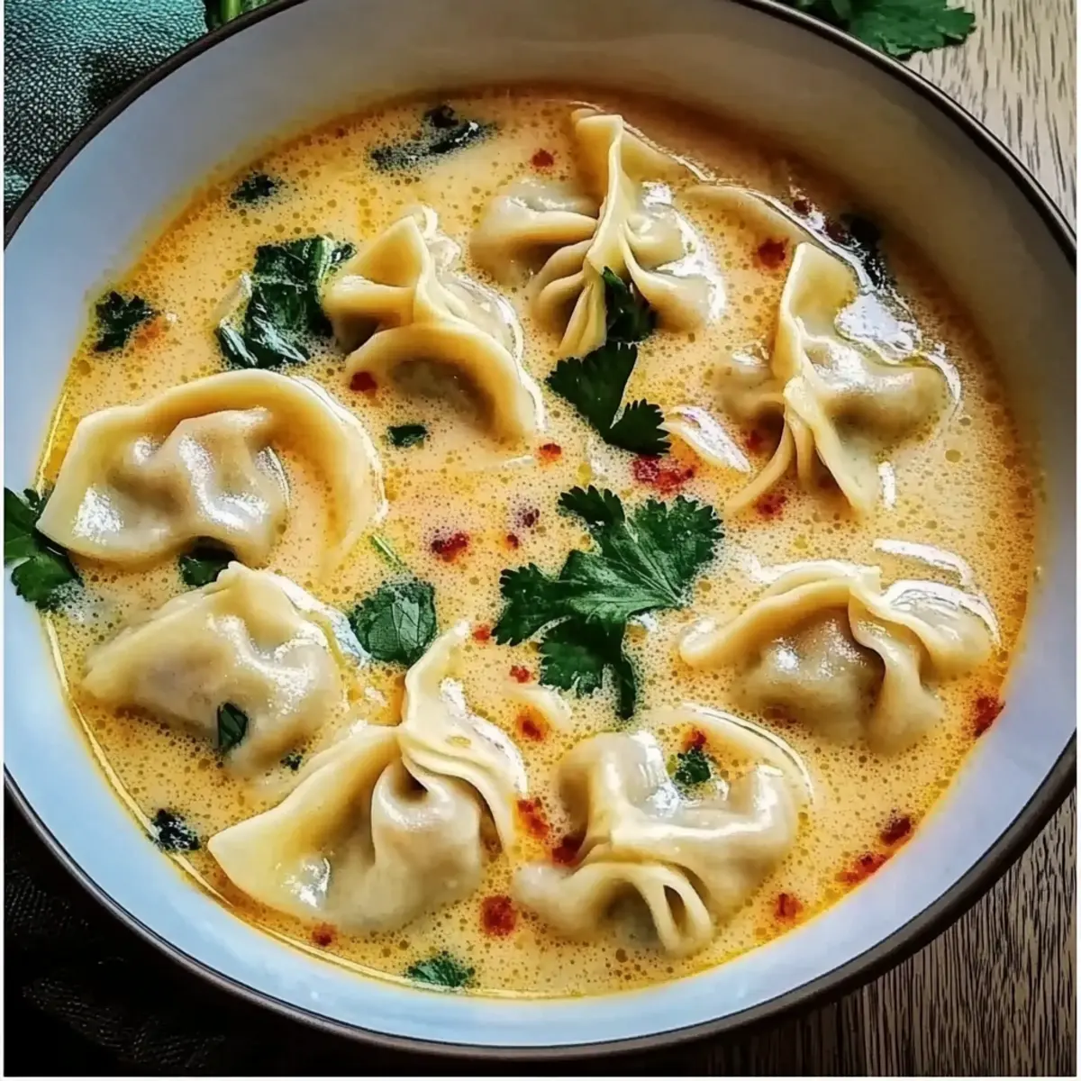 Comforting, cozy flavors: The Creamy Thai Dumpling Soup delivers a hug in a bowl with its rich coconut milk and fragrant spices.