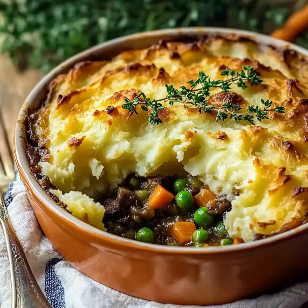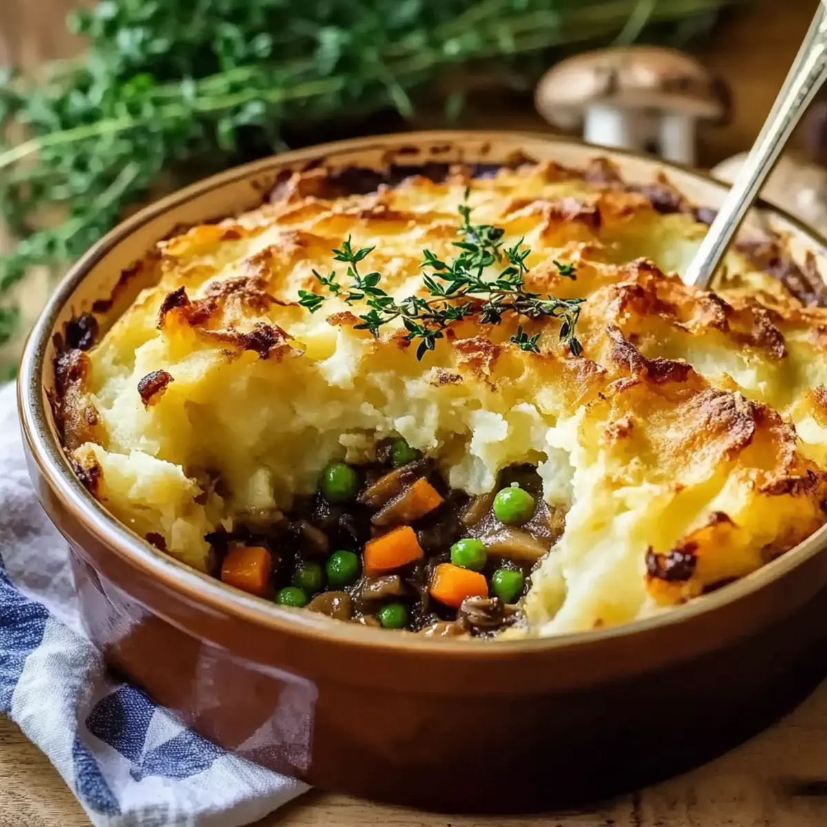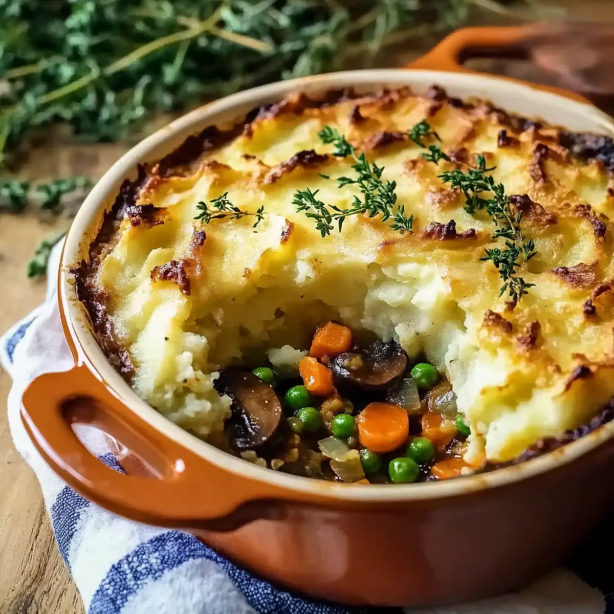What if I told you that comfort food can be just as satisfying without a single meat ingredient? This Creamy Vegetarian Shepherd’s Pie is proof that a hearty, plant-based meal can steal the spotlight at any dinner table. Packed with earthy mushrooms and sweet vegetables enveloped in a velvety mashed potato topping, this dish is an uncomplicated one-pot wonder that delights both vegetarians and meat-lovers alike. Beyond its crowd-pleasing appeal, this recipe offers a quick prep time and a comforting aroma that fills your kitchen, inviting everyone to gather around the table. So, are you ready to transform your weeknight meals with this cozy recipe? Let’s dive in! Why is Vegetarian Shepherd’s Pie a Must-Try? Comforting and Satisfying: This creamy vegetarian shepherd’s pie is a cozy, hearty dish that pleases everyone at the table. Flavor-Packed: The rich combination of earthy mushrooms and sweet vegetables creates a taste explosion that rivals any traditional meat-based meal. Easy Preparation: With simple, straightforward steps, you can whip up this one-pot wonder in no time. Customizable: Feel free to mix and match veggies or even add protein like lentils for a nutritional boost. Gather Everyone: Perfect for family dinners or gatherings, this recipe encourages shared moments around the table. If you love vibrant, flavorful meals, you might also enjoy our tasty Cajun Chicken Pasta or a delightful Crab Pasta Salad. Creamy Vegetarian Shepherd’s Pie Ingredients For the Mashed Topping Yukon Gold Potatoes – The base for the topping; ensure they’re creamy and fork-tender for the best texture. Greek Yogurt – Adds a tangy creaminess; sour cream is a great substitute if you need one. Butter – Elevates the flavor; opt for high-quality butter for a richer taste. For the Vegetable Filling Olive Oil – A healthy fat for sautéing; extra virgin adds the best depth of flavor. Shallots – Enhance the filling with mild sweetness; onions can also work well. Carrots – Bring natural sweetness and a pop of color; you can mix in parsnips for variety. Mushrooms (Cremini or Button) – Provide great texture and umami; mixing varieties can deepen the flavor profile. Tomato Paste – Intensifies the savory notes; canned tomatoes can be an alternative if desired. Red Wine – Adds richness to the gravy; omit it for a non-alcoholic option if preferred. Flour – Thickens the filling; use gluten-free flour for a gluten-free version. Vegetable Broth – For added moisture and flavor; opt for low-sodium to control salt levels. Frozen Peas – Offer sweetness and a pop of green; fresh peas can be used if in season. Fresh Rosemary and Thyme – Infuse flavorful herbal notes; dried herbs can substitute if fresh aren’t available. Note: All these ingredients come together to create a comforting dish of Creamy Vegetarian Shepherd’s Pie that’s perfect for any occasion! Step‑by‑Step Instructions for Creamy Vegetarian Shepherd’s Pie Step 1: Prepare Mashed Potatoes Begin by peeling and quartering your Yukon Gold potatoes, placing them in a large pot. Fill the pot with water and bring it to a boil over medium-high heat. Cook the potatoes for about 15-20 minutes or until fork-tender. Once cooked, drain them thoroughly and return them to the pot. Mash the potatoes until smooth, then blend in butter and Greek yogurt, seasoning with salt to taste. Set aside. Step 2: Sauté Shallots In a Dutch oven, heat a couple of tablespoons of olive oil over medium heat. Add the finely chopped shallots and sauté for 3-4 minutes until they become translucent, stirring occasionally to prevent sticking. As they soften, the shallots will release a sweet aroma, indicating they’re ready for the next ingredients. Step 3: Add Carrots and Mushrooms Next, toss in the diced carrots and chopped mushrooms into the pot with the shallots. Continue to sauté the mixture for about 5-7 minutes, stirring occasionally, until the mushrooms are tender and have released their moisture. This step is crucial for developing the rich flavor of the vegetable filling in your creamy vegetarian shepherd’s pie. Step 4: Incorporate Tomato Paste and Flour Stir in the tomato paste and flour, ensuring they evenly coat the vegetables. Toast the mixture for about 1 minute, stirring constantly to prevent burning. This will help develop a deep, savory flavor that acts as the base of the gravy in your shepherd’s pie. Step 5: Deglaze with Red Wine Pour in the dry red wine, using a wooden spoon to scrape up any flavorful brown bits from the bottom of the pot. Allow the mixture to simmer for 1-2 minutes, letting the wine reduce slightly and enrich the filling’s flavor without having an alcoholic taste. Step 6: Make the Gravy Gradually whisk in the vegetable broth, stirring continuously until the mixture thickens—this should take about 3-5 minutes. The filling will transform into a luscious gravy, coating the vegetables beautifully. Keep the heat on low as you prepare for the next step. Step 7: Mix in Peas and Transfer Once the gravy is thickened, remove the pot from the heat and stir in the frozen peas, allowing them to warm through. Remove the fresh herbs, if used, and transfer the vegetable filling into a greased baking dish, spreading it out evenly to form a base for your creamy vegetarian shepherd’s pie. Step 8: Top with Mashed Potatoes Spread the prepared mashed potatoes evenly over the vegetable filling using a spatula. To create a rustic texture, use a fork to form peaks and valleys on the surface. This helps them develop a nice crust as they bake in the oven. Step 9: Bake Until Golden Preheat your oven to 350°F (175°C) and bake the assembled shepherd’s pie for about 15 minutes, allowing the layers to meld and heat through. For a touch of extra golden color, switch to broil for a couple of minutes, keeping a close eye to avoid burning the top. Step 10: Cool Before Serving Once baked to a beautiful golden brown, remove the creamy vegeta