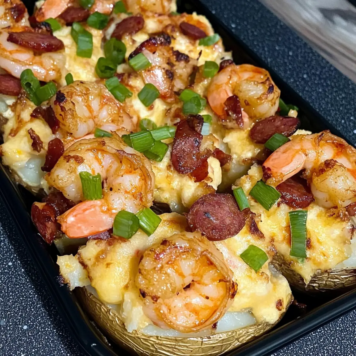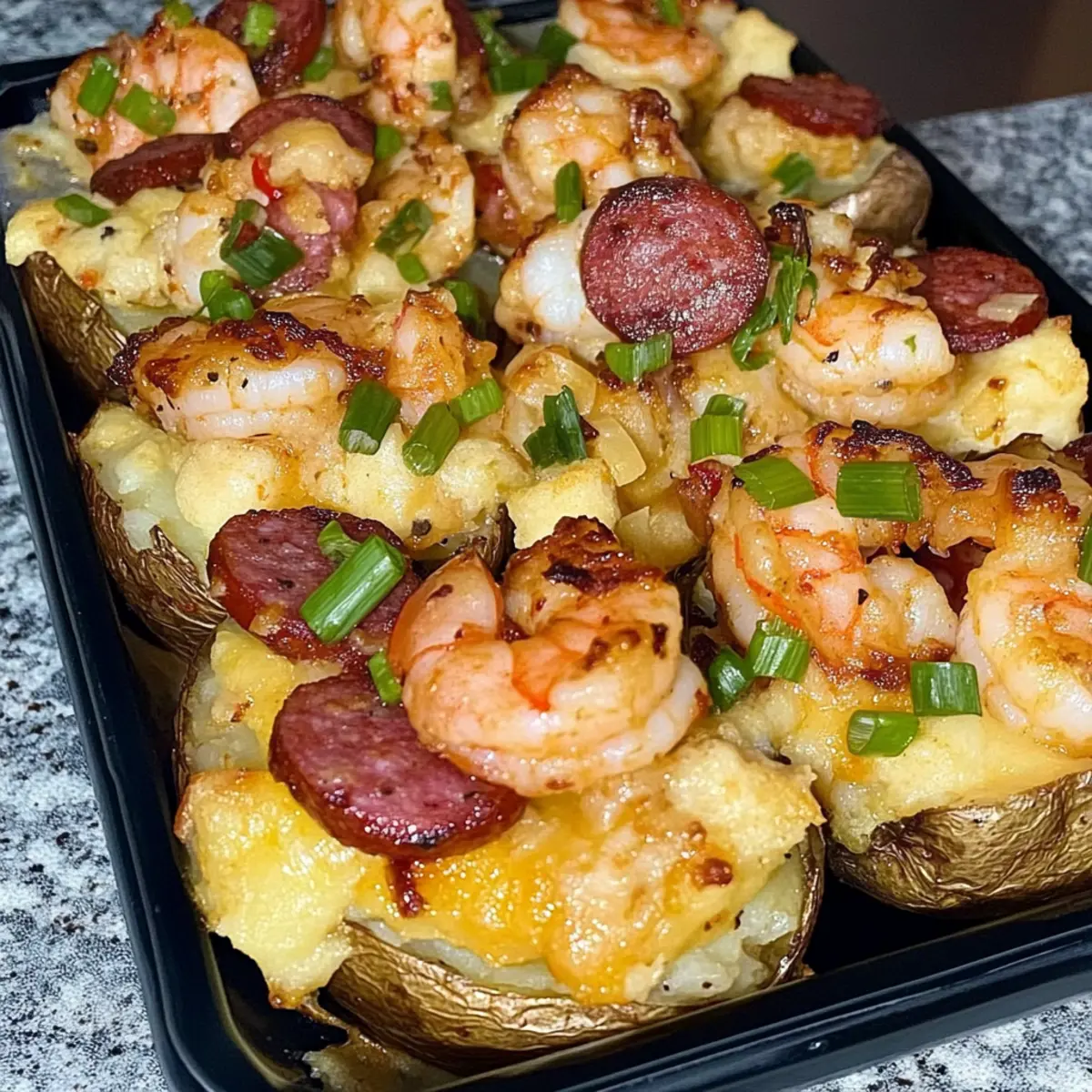 As I stood in my kitchen, the enticing aroma of sautéed shrimp and savory kielbasa enveloped me like a warm hug—this was my cue that dinner was about to get extraordinary. Welcome to the world of Creamy Creole Loaded Potatoes, where Southern charm meets hearty comfort food in one delightful dish! Packed with juicy seafood and rich flavors, this meal not only satisfies hunger but also brings a festive spirit to any dinner table. In just under an hour, you can create a culinary masterpiece that your friends and family will rave about for days. Whether you’re looking to impress your guests or simply treat yourself, these loaded potatoes are perfect for a quick yet indulgent cooking experience. Curious how to bring this treasure to life in your own kitchen? Let’s dive in! Why Choose Creamy Creole Loaded Potatoes? Unforgettable flavor: Each bite is a symphony of bold southern spices, juicy shrimp, and savory kielbasa that transforms ordinary potatoes into a southern feast. Comfort in every spoonful: The creamy texture and hearty filling mean this dish is not just food; it’s a warm hug on a plate that’s perfect for family gatherings. Quick and easy: Ready in under an hour, you can have a gourmet meal without spending all day in the kitchen. Perfect for busy weeknights or surprise guests! Versatile base: Feel free to experiment! You can swap proteins or add extra veggies for a personalized touch. For a different twist, try the Garlic Butter Chicken and Potatoes Skillet for another flavor-packed delight! Great for leftovers: If there are any leftovers, they’re just as tasty the next day and easy to reheat. Enjoy with a side salad or cornbread for a complete meal! Creamy Creole Loaded Potatoes Ingredients For the Potatoes • Russet Potatoes (5 large) – Form the hearty base of this delicious dish; swap for Yukon gold for a creamier finish. For the Filling • Colossal Shrimp (20, peeled) – Juicy seafood that adds a rich flavor; choose fresh or frozen for best results. • Kielbasa Sausage Link (14 ounces, cubed) – Brings a smoky, savory element to the dish; can be substituted with any smoked sausage or omitted for a seafood-only version. • Red Pepper (1/2 small, diced) – Adds sweetness and color; feel free to substitute with any bell pepper variety. • Olive Oil – Used for sautéing and keeping things moist; substitute with vegetable oil if you prefer. • Butter (1 stick) – Imparts richness to the creamy filling; vegan butter can be used if desired. For the Creamy Mixture • Sour Cream (1/2 cup) – Offers creaminess and tang; Greek yogurt is a great health-conscious alternative. • White Cheddar Cheese (1 cup, shredded) – Provides a delightful creaminess; swap with any melty cheese for similar results. • Milk (1 cup) – Essential for achieving that luscious, creamy texture; use any milk alternative for a lactose-free version. • Tony’s 30-Minute Seafood Marinade (4 tablespoons) – Elevates shrimp flavor beautifully; can be replaced with a similar seafood marinade if needed. • Tony’s Creole-Style Ranch Dressing (1 tablespoon) – Adds a unique twist; regular ranch can be a good substitute if you don’t have this on hand. • Tony’s Alfredo Sauce (1/3 cup) – Enriches the filling with additional creaminess; a homemade version works just as well. • Tony’s More Spice Seasoning – Provides depth of flavor, use to taste for your perfect spice level. For Garnish • Green Onions or Chives (sliced, to taste) – Brightens up the dish and adds fresh flavor; any fresh herb could work beautifully here. Dive into this Creamy Creole Loaded Potatoes adventure and enjoy the delicious flavor profiles as they dance together on your plate! Step‑by‑Step Instructions for Creamy Creole Loaded Potatoes Step 1: Preheat the Oven Begin by preheating your oven to 400°F (200°C), which sets the stage for perfectly baked potatoes. This temperature ensures a crispy exterior while creating a tender inside. Gather your ingredients and line a baking sheet with parchment paper for easy cleanup. Once the oven is ready, it’s time to prep your potatoes. Step 2: Prepare the Potatoes Wash five large Russet potatoes thoroughly under running water. Cut them in half lengthwise, or into quarters, depending on your preference for serving. Place the halved potatoes cut side down on the prepared baking sheet, and bake for about 45 minutes or until they are fork-tender, signaling that they’re ready for the next steps. Step 3: Sauté the Fillings While the potatoes are baking, heat a tablespoon of olive oil in a large skillet over medium heat. Add ½ small diced red pepper and 14 ounces of cubed kielbasa sausage. Sauté for about 5–7 minutes until the sausage is browned and the peppers are tender, releasing their flavors and creating a delightful base for your Creamy Creole Loaded Potatoes. Step 4: Mix the Creamy Filling In a large mixing bowl, combine the sautéed sausage and pepper with 1 stick of butter, ½ cup of sour cream, 1 cup of milk, and 1 cup of shredded white cheddar cheese. Next, stir in 4 tablespoons of Tony’s 30-Minute Seafood Marinade, 1 tablespoon of Tony’s Creole-Style Ranch Dressing, and ⅓ cup of Tony’s Alfredo Sauce. Season with Tony’s More Spice Seasoning to taste, mixing until smooth and creamy. Step 5: Hollow the Potatoes Once the potatoes are baked and cool enough to handle, carefully scoop out some of the flesh, leaving a sturdy shell to hold the filling. Take the removed potato flesh and mix it into the creamy mixture, ensuring not to waste any delicious bits. This will enhance both flavor and texture, making your Creamy Creole Loaded Potatoes truly indulgent. Step 6: Stuff the Potatoes Fill each hollowed potato half generously with the creamy filling, pressing down gently to pack it well. Arrange the filled potatoes back on the baking sheet for a second round of baking. Ensure they’re evenly spaced to allow for even cooking and melting of t