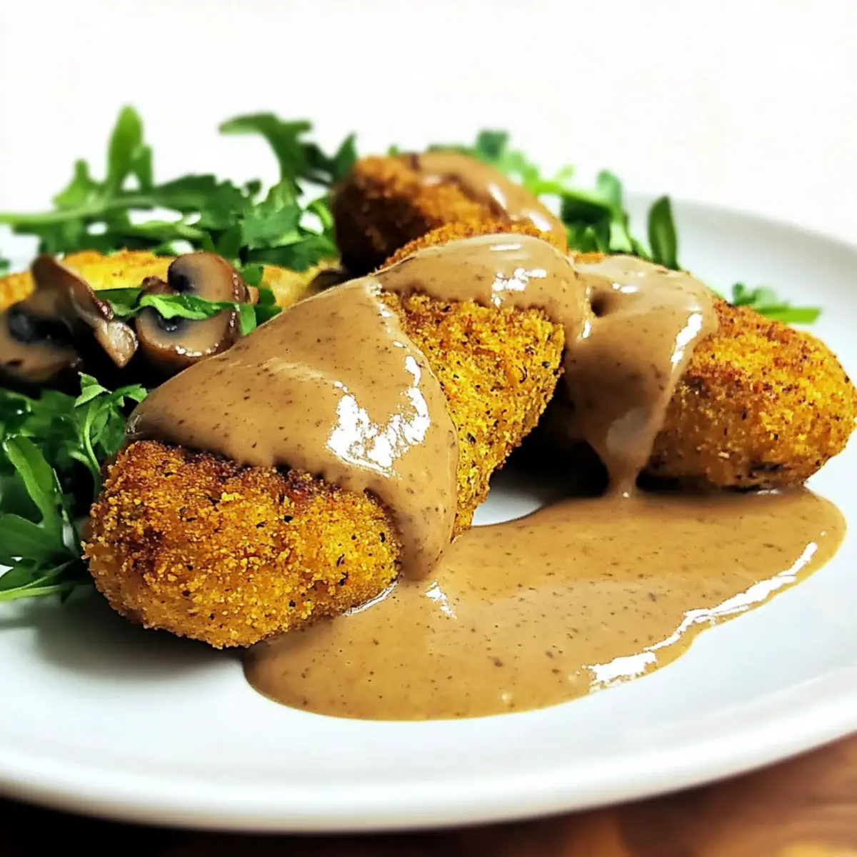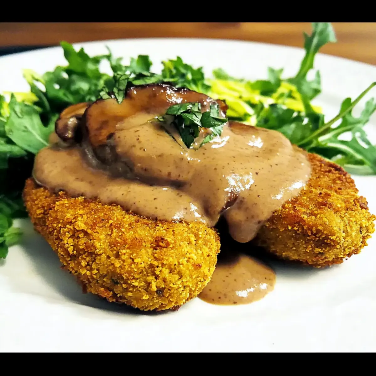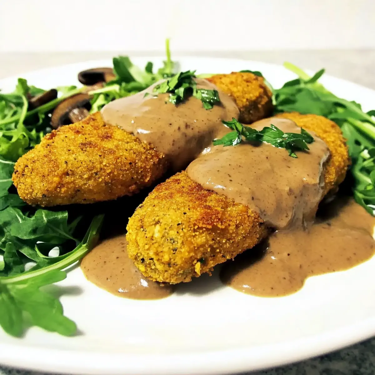 There’s an undeniable charm in the crispy crunch of perfectly baked chickpea cutlets, especially when they’re topped with a rich, velvety mushroom gravy. This delightful dish brings the heart of comfort food straight to your home, and the best part? These Crispy Breaded Chickpea Cutlets are not just vegan and gluten-free; they’re a true crowd-pleaser that everyone can enjoy. With minimal prep time, these baked wonders are perfect for those hectic weeknight dinners or leisurely weekend feasts, seamlessly blending wholesome goodness with a satisfying texture. Whether you’re a seasoned home cook or someone looking to elevate your weeknight meals, these cutlets are bound to become a new favorite. Curious about the secret to achieving that perfect crisp? Let’s dive into this mouthwatering recipe! Why are these cutlets so irresistible? Crispy Perfection: These breaded chickpea cutlets boast an unbeatable crunch on the outside, making every bite a delight! Savory Mushroom Gravy: The rich and luscious gravy elevates the dish, adding an umami-packed flavor that pairs perfectly with the cutlets. Vegans and Meat-Lovers Alike: This recipe is crafted to please everyone at the table, proving that plant-based meals can be equally satisfying. Quick Preparation: In just a few simple steps, you’ll have a delicious meal ready, freeing up your time for what truly matters! Versatile Serving Options: Pair with a refreshing salad or serve over quinoa for a wholesome experience – the possibilities are endless! Whether you’re looking to impress guests with your culinary skills or simply indulge in comfort food, these Crispy Breaded Chickpea Cutlets will make a delightful centerpiece for any meal. Crispy Breaded Chickpea Cutlets Ingredients For the Cutlets • Chickpeas – the primary protein source that provides a meaty texture; use canned or cooked for ease. • Almond Flour – acts as a breading agent for that perfect crispy exterior; can replace with gluten-free breadcrumbs if desired. • Aquafaba – an amazing egg replacer that binds ingredients and adds moisture; substitute with flax or chia seed gel if necessary. • Nutritional Yeast – lends a cheesy flavor and boosts B vitamins; essential for that savory taste profile. • Flaxseed – not only binds ingredients but also adds a nutty flavor; chia seeds can serve as a suitable substitute. • Sea Salt – enhances flavor; feel free to adjust it to your liking. For the Mushroom Gravy • Mushrooms – the star ingredient for the gravy, adding rich umami goodness; any variety will enhance the flavor profile. • Olive Oil – for greasing the pan and adding richness; optional for spraying on cutlets to achieve extra crispness. • Arrowroot Powder – acts as a thickening agent in the gravy; if unavailable, cornstarch can be an effective substitute. Step‑by‑Step Instructions for Crispy Breaded Chickpea Cutlets Step 1: Prepare Chickpea Mixture In a food processor, blend 1 can of drained chickpeas, nutritional yeast, flaxseed, and sea salt until you achieve a smooth consistency, around 1-2 minutes. Gradually incorporate almond flour until the mixture is soft yet not sticky; it should be moldable. If the dough feels too wet, a little extra flour can be added to achieve the right consistency. Step 2: Shape Cutlets Take small portions of the chickpea mixture and form them into oval-shaped cutlets, roughly half an inch thick. Place the shaped cutlets on a parchment-lined tray, ensuring they don’t touch to allow for even cooking. This step is crucial for achieving that irresistible crunch on your Crispy Breaded Chickpea Cutlets. Step 3: Breading Process Dip each cutlet in aquafaba, ensuring it’s fully coated for optimal sticking power. Next, gently roll the cutlet in the remaining almond flour and nutritional yeast mixture, pressing lightly to adhere. Once breaded, place the cutlets back onto the parchment-lined tray. If desired, lightly spray them with olive oil to enhance crispness during baking. Step 4: Bake Cutlets Preheat your oven to 400°F (200°C) and bake the cutlets for 20-30 minutes. Keep an eye on them as they bake, looking for a golden brown color and crisp edges. Halfway through, flip the cutlets to ensure even browning on both sides; the aroma wafting from the oven will be delightful! Step 5: Make Gravy In a medium saucepan, heat a bit of olive oil over medium heat and sauté sliced mushrooms for about 10 minutes until tender. Stir in your favorite seasonings, then add remaining ingredients except for arrowroot powder. Allow the mixture to simmer, developing rich flavors while you wait for your cutlets to finish baking. Step 6: Thicken Gravy Once the mushrooms have softened, stir in the arrowroot powder and cook for an additional 2-3 minutes, stirring constantly until the gravy thickens. The gravy should be creamy and smooth, ideal for drizzling over your Crispy Breaded Chickpea Cutlets. Adjust seasoning if needed for that perfect savory balance. Step 7: Serve Once the chickpea cutlets are crispy and golden, remove them from the oven. Plate the cutlets generously topped with the luscious mushroom gravy. Enjoy while warm, perhaps alongside a fresh salad or your choice of grain for a wholesome meal that’s as satisfying as it is delicious! What to Serve with Crispy Breaded Chickpea Cutlets Enhance your dining experience by pairing these delightful cutlets with complementary sides that elevate the whole meal. Creamy Mashed Potatoes: The smoothness and richness of mashed potatoes provide a wonderful contrast to the crispy cutlets, offering a comforting bite. Garlicky Green Beans: Crisp-tender green beans sautéed in garlic add a burst of color and flavor, balancing the richness of the gravy. Fresh Mixed Greens Salad: A vibrant salad topped with a zesty vinaigrette adds a refreshing crunch and lightness to your plate. Savory Quinoa Pilaf: Nutty quinoa cooked with herbs and spices enhances the flavors of the cutlets while pr