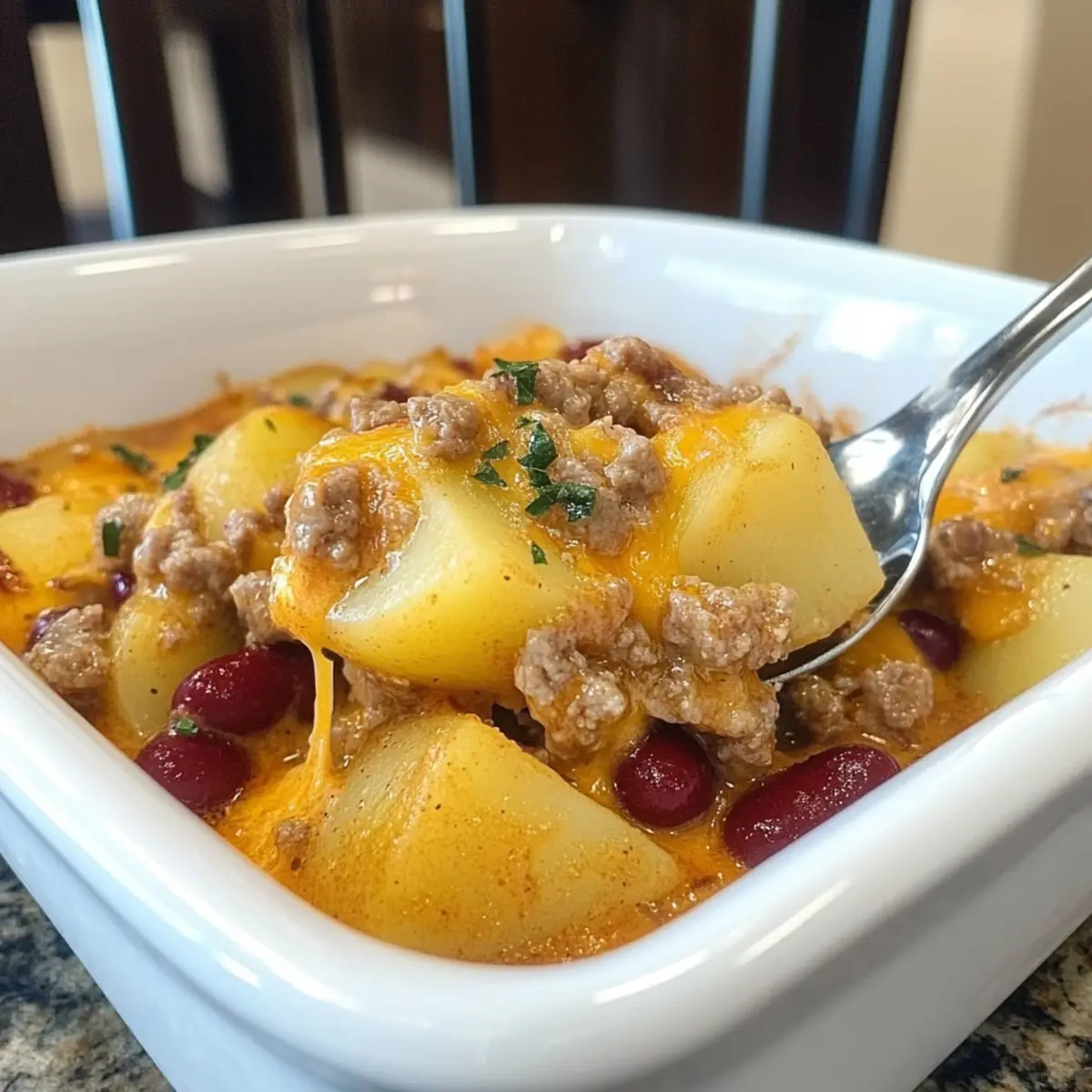 There’s nothing quite like the smell of dinner wafting through the house, but when the temperature drops, comfort food really calls to me. Enter the Hearty Crock Pot Cowboy Casserole—a one-pot wonder that wraps you in warmth with every spoonful. This satisfying dish combines the rich flavors of ground sausage and tender potatoes, topped with a gooey layer of melted cheese, making it the ultimate choice for family gatherings or cozy nights in. Plus, it’s a breeze to whip up in your slow cooker, which means less time in the kitchen and more time relaxing with loved ones. Trust me, this is not just another meal; it’s a heartfelt hug on a plate. Ready to dig into a bowl of comfort? Let’s dive into the recipe! Why is This Casserole a Must-Try? Hearty, satisfying meal: This Crock Pot Cowboy Casserole is a delicious fusion of flavors that will have your family asking for seconds. Effortless preparation: With minimal prep work and just one pot, you can enjoy a delicious, home-cooked meal without the hassle. Crowd-pleaser: Perfect for family gatherings or weeknight dinners, this dish is sure to please everyone, from kids to adults. Versatile ingredients: Feel free to customize with your favorite veggies or swap the protein to suit your dietary needs, ensuring a dish everyone can enjoy. Meal prep friendly: Ideal for busy weeks, leftovers store well in the fridge and reheat beautifully, just like our delicious Ham Cheese Casserole or Hashbrown Breakfast Casserole. Crock Pot Cowboy Casserole Ingredients For a perfect hearty meal, let’s gather what you need! For the Base Onion – Adds sweetness and depth to the flavor; use yellow or white onions for best results. Garlic – Provides aromatic flavor; fresh is preferable, but garlic powder can be a substitute. Ground Pork (or Sausage) – The hearty base that adds richness and protein; ground beef can be used as an alternative. Potatoes – Main carbohydrate source that gives a hearty texture; leave the skin on for added nutrients. Red Kidney Beans – Adds fiber and protein, making the dish more filling; drain and rinse before adding. Diced Tomatoes (with green chilis) – Provides necessary moisture and tanginess; substitute with homemade stewed tomatoes if available. For Cooking Water – Helps to cook the ingredients evenly; adjust based on desired casserole thickness. Salt and Pepper – Essential seasonings to enhance flavors; adjust to taste. For the Topping Shredded Cheddar Cheese – Topped at the end for melty convenience; can substitute with a blend of your favorite cheeses. Step‑by‑Step Instructions for Crock Pot Cowboy Casserole Step 1: Prep Vegetables Begin by preparing your ingredients for the Crock Pot Cowboy Casserole. Chop one onion into small pieces and mince three cloves of garlic, releasing their wonderful aromas. This step is essential, as the onions will sweeten and the garlic will infuse the dish with flavor as it cooks. Set these aside for layering later. Step 2: Brown Meat In a skillet over medium heat, add one pound of ground sausage or ground pork. Cook until it’s browned and fully cooked, about 8-10 minutes. Make sure to break it apart while cooking for even browning. Once done, drain any excess fat before transferring the meat to the crock pot. This ensures a healthier and less greasy casserole. Step 3: Layer Ingredients In your 6-quart crock pot, start layering the ingredients for the Crock Pot Cowboy Casserole. First, add the chopped potatoes, followed by the seasoned onions and garlic. Then, layer in the cooked sausage, one can of drained red kidney beans, and one can of diced tomatoes with green chilis. These layers will create a hearty base full of flavor. Step 4: Add Liquid Pour in one cup of water over the layered ingredients in the crock pot. This liquid is crucial for ensuring even cooking and moisture throughout the casserole. Season the mixture with salt and pepper to taste, allowing the flavors to meld beautifully as the slow cooker works its magic. Step 5: Cook Cover your crock pot and set it to cook on low for 7-8 hours. During this time, the potatoes will soften and the flavors will intensify, creating a comforting and hearty mix. Keep an eye out for the rich aroma that will fill your kitchen, promising a delicious family meal. Step 6: Add Cheese In the last 15 minutes of cooking, carefully remove the lid and sprinkle about one cup of shredded cheddar cheese evenly over the top of the casserole. Cover the crock pot again to allow the cheese to melt completely. This gooey topping will be the crowning glory of your Crock Pot Cowboy Casserole, enhancing its deliciousness just before serving. Expert Tips for Crock Pot Cowboy Casserole Prep Ahead: Consider chopping your vegetables and browning the sausage the night before. This makes assembly a breeze when you’re ready to cook! Layer Wisely: Layer the potatoes on the bottom to ensure they cook evenly and soak up all that delicious flavor. Avoid mixing too much to maintain texture. Watch the Water: If using homemade stewed tomatoes, omit the water to prevent a soggy casserole. The tomatoes add all the moisture needed! Customize Protein: Feel free to swap the ground pork for ground turkey or chicken, making this Crock Pot Cowboy Casserole a lighter option while still being satisfying. Add Veggies: Sneak in extra veggies like bell peppers, corn, or zucchini for added nutrition. Just ensure they are chopped evenly for even cooking. What to Serve with Crock Pot Cowboy Casserole Nothing complements a hearty dish like some carefully chosen sides that elevate the entire meal experience! Crusty Bread: The perfect vehicle for scooping up the savory casserole, its crunchy exterior and soft center contrast wonderfully with the dish’s textures. Garden Salad: A vibrant mix of greens and crunchy vegetables adds freshness, lightening up the rich flavors of the casserole while providing a delightful crunch. Creamy Coleslaw: Its tangy and creamy elements pro
