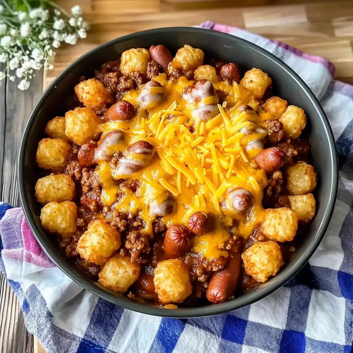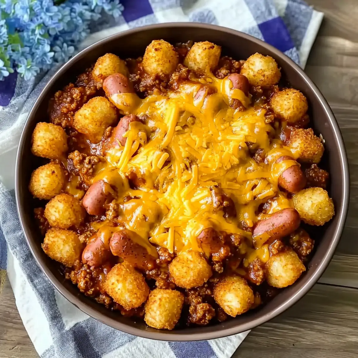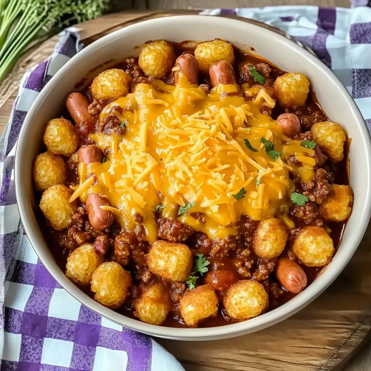As I stirred the ingredients for my latest creation, the aroma of savory beef franks mingled with rich chili and crispy tater tots transformed my kitchen into a comforting haven. This Crockpot Chili Dog Casserole is more than just a meal; it’s a family-friendly dish that turns busy weeknights into moments of joy. The beauty of this recipe lies in its simplicity—just assemble everything in your slow cooker, set it, and let it work its magic while you tackle other tasks. With minimal prep and a satisfying blend of flavors, this is the perfect solution for anyone craving comfort food without the fuss. Who could resist a hearty casserole topped with melted cheese and crispy goodness? Are you ready to make dinner time effortless and delicious? Let’s dive in! Why Is This Crockpot Chili Dog Casserole a Must-Try? Easy Preparation: Simply layer your ingredients in the slow cooker, and let it do the work—perfect for busy evenings! Family-Friendly Delight: Everyone will adore this comforting meal, making it a go-to for family gatherings or casual dinners. Savory Goodness: The combination of cheesy, chili-infused hot dogs and crispy tater tots creates a mouthwatering experience that you won’t forget. Versatile Options: Customize it to your liking with different hot dogs or homemade chili for a fresh twist. Time-Saving Meal: With this dish, you can spend less time in the kitchen, allowing you to enjoy precious moments with your loved ones. For even more hearty options, check out my Ham Cheese Casserole or the classic Chicken Waffle Casserole. Crockpot Chili Dog Casserole Ingredients Get ready to make this family-friendly meal! For the Casserole Beef Franks – Provides savory protein and flavor; feel free to substitute with turkey dogs, chicken sausages, or any preferred hot dog. Sharp Cheddar Cheese – Adds richness and creaminess; try Monterey Jack for a different flavor twist. Chili (canned or homemade) – Serves as a flavorful sauce; opt for a thick chili to prevent excess moisture. Frozen Tater Tots – Acts as the base and topping for the casserole, providing that delightful crispy texture; homemade tater tots or hash browns can be used as alternatives. Optional Toppings Sour Cream – Adds creaminess and tanginess; a must for serving for that extra touch! Green Onions – For garnish, providing both flavor and a beautiful color contrast. With these simple ingredients, you’re one step closer to enjoying a comforting Crockpot Chili Dog Casserole that the whole family will love! Step‑by‑Step Instructions for Crockpot Chili Dog Casserole Step 1: Prep the Ingredients Start by slicing the beef franks into bite-sized rounds. This will enhance their flavor distribution throughout the dish. Next, grease the inside of your crockpot with butter or cooking spray to prevent sticking and ensure easy serving later on. Step 2: Mix the Chili and Franks In a large mixing bowl, combine the sliced franks with the chili. Stir thoroughly to ensure that all the franks are evenly coated with the chili, creating a rich flavor that will permeate the casserole. This step should only take a few minutes but sets the stage for an amazing Crockpot Chili Dog Casserole. Step 3: Layer the Ingredients Begin layering the crockpot by spreading half of the frozen tater tots evenly at the bottom. Pour half of the chili and franks mixture over the tater tots, followed by half of the sharp cheddar cheese. Repeat the layering process with the remaining tater tots, chili-franks mixture, and cheese, creating a delightful stack of flavors. Step 4: Cook the Casserole Cover the crockpot with its lid and set it to cook on low for 3.5 to 4 hours. During this time, the flavors will meld beautifully, and the tater tots will become crispy and delicious. Avoid lifting the lid too often to maintain the ideal cooking temperature and moisture level. Step 5: Finish and Broil For an extra touch, you can broil portions in oven-safe bowls with some additional cheddar cheese for about 2-3 minutes until bubbly and golden. Alternatively, for a fun twist, serve the casserole spooned into toasted hot dog buns for a casual and unique dining experience. Step 6: Garnish and Serve Before serving your delicious Crockpot Chili Dog Casserole, add optional toppings like a dollop of sour cream and a sprinkle of green onions for a fresh flavor contrast. These finishing touches will elevate your dish and make it even more appealing to the family at your next meal! Crockpot Chili Dog Casserole Variations Feel free to get creative and customize this delicious casserole to match your taste buds! Vegetarian: Swap out beef franks for plant-based hot dogs or sausages for a meatless delight. This variation keeps the casserole wholesome while embracing a fresh twist. Homemade Chili: Use your recipe for homemade chili instead of canned. Not only will it taste fresher, but it will also add a personal touch to your dish. Cheese Fusion: Experiment with different cheese choices like pepper jack or gouda. The added flavors can enhance the warmth of the casserole, making each bite a new adventure. Spicy Kick: Add diced jalapeños or a splash of hot sauce for some heat. This is great for those who love a bit of spice in their comfort food. Loaded Toppings: Top off with crispy bacon bits and diced tomatoes for a loaded version. These toppings provide an exciting crunch and burst of flavor that your family will adore. Additional Veggies: Toss in bell peppers, corn, or black beans while mixing the franks with the chili. This adds more texture and nutrition, creating a more vibrant casserole. Tater Tot Swap: Use seasoned curly fries or sweet potato fries instead of tater tots for a fun twist on the texture. Both options lend a unique flavor that can surprise your family. If you’re looking for more comforting casseroles, check out my Cheesy Hamburger Casserole or treat yourself to a Hashbrown Breakfast Casserole. How to Store and Freeze Crockpot Chili Dog Casserole Fri