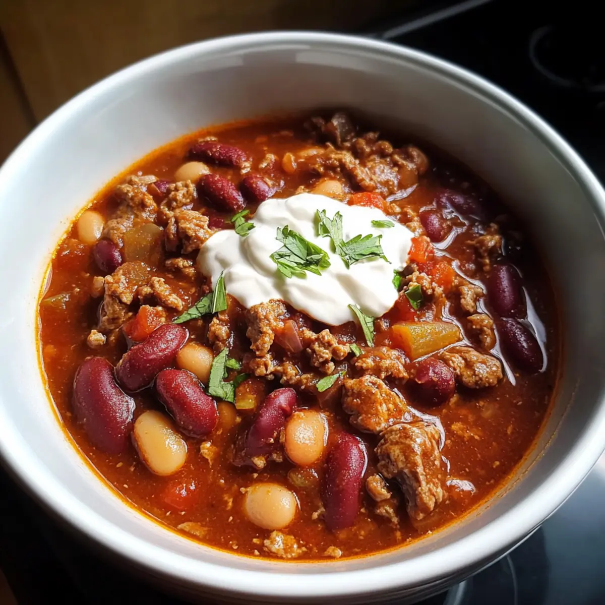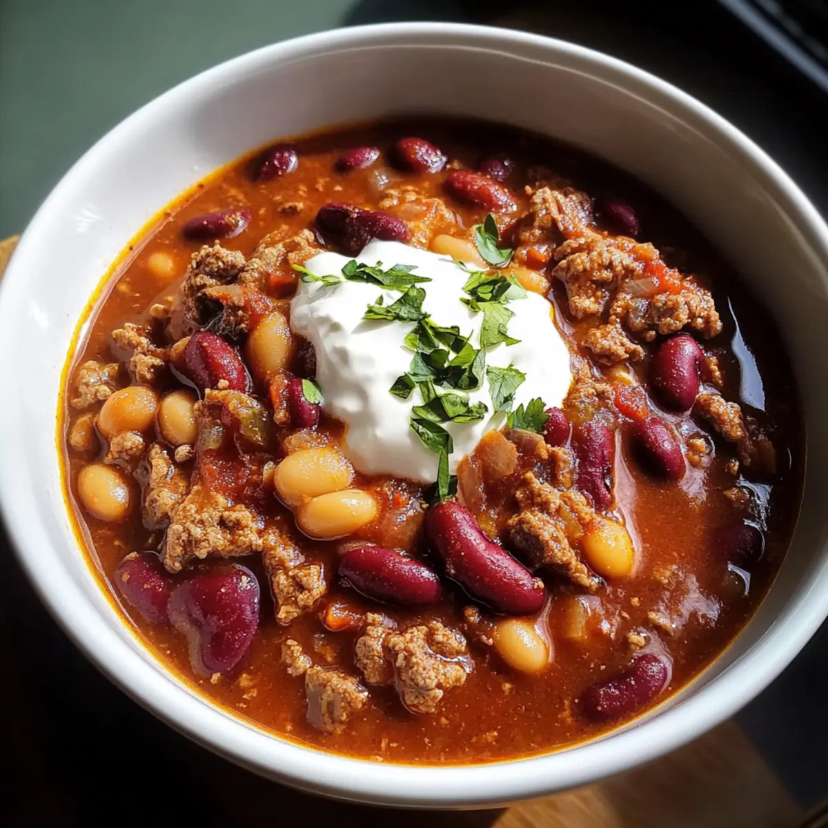 As the sun begins to set and the first chill of evening creeps in, my slow cooker hums softly, filling the air with the warm, inviting aroma of my favorite crockpot chili recipe. This Hearty Beef Chili is a delightful mix of savory beef, tender beans, and a zing of spices that warms both the body and soul. It’s the ultimate comfort food that not only makes for an easy prep on busy days, but is also a perfect meal for hearty leftovers that get better overnight! Whether you’re huddled around the table with family or enjoying a cozy night in, this chili is sure to be a hit. Ready to dive into flavors that will leave you craving more? Let’s get cooking! Why Is This Chili So Special? Hearty, Comforting Flavors: This crockpot chili recipe is filled with a savory blend of beef, beans, and spices, making each bite taste like home. Set It and Forget It: Enjoy the simplicity of tossing everything into your slow cooker and letting it work its magic while you focus on your day. Versatile Variations: Whether you prefer ground turkey, lentils, or explore different beans, this recipe adapts to your taste and dietary preferences. Crowd-Pleasing Meal: Great for gatherings! Prepare a big batch and watch as family and friends dive into this hearty dish, guaranteed to spark joy. Perfect Leftovers: Enhance flavors overnight, making it even better for tomorrow’s lunch or dinner. Pair it with cornbread or baked ziti for a complete meal! Crockpot Chili Ingredients For the Chili Ground Beef – Provides protein and a rich, meaty base for the chili; substitute with ground turkey for a leaner option. Onion – Adds sweetness and depth of flavor; can use shallots as a substitution for similar flavor. Garlic – Enhances overall taste and aroma; fresh garlic is preferred; use 1/4 teaspoon garlic powder as a substitute. Bell Peppers (Red/Green) – Contribute sweetness and a slight crunch; swap with zucchini for a vegetable-forward option. Canned Tomatoes (Diced or Crushed) – Forms the chili’s base and provides acidity; fire-roasted diced tomatoes can add a smoky flavor. Beans (Kidney/Black) – Adds texture and fiber; feel free to mix different beans or skip for a bean-free chili. Chili Powder – Key spice that gives the dish its signature heat and flavor; adjust the amount to taste or substitute with taco seasoning. Cumin – Offers a warm, earthy flavor that complements the chili powder; coriander can serve as a substitute. Salt and Pepper – Essential for seasoning the dish, adjust to personal taste. Olive Oil – Used for browning beef, adds richness; coconut oil can be a healthier alternative. Optional Toppings Cheese – Adds creaminess; shredded cheddar or crumbled queso blanco works well. Sour Cream – Provides a tangy contrast; a dollop on top balances the spice of the chili. Fresh Herbs – Chopped cilantro or green onions bring freshness; try parsley for a milder flavor. With this cozy crockpot chili recipe, you’ll have the perfect meal ready to share or enjoy with leftovers the next day! Step‑by‑Step Instructions for Slow Cooker Hearty Beef Chili Step 1: Brown the Beef Start by heating a tablespoon of olive oil in a large skillet over medium-high heat. Once hot, add the ground beef, diced onion, and minced garlic. Cook for about 5-7 minutes, stirring frequently, until the beef is browned and the onions are softened. This step builds the base flavor for your crockpot chili recipe. Step 2: Combine Ingredients Transfer the beef mixture from the skillet to your slow cooker. Add in the canned diced tomatoes, drained kidney or black beans, and chopped bell peppers. Next, sprinkle in the chili powder, cumin, salt, and pepper. Stir everything well so the spices evenly coat all the ingredients for a burst of flavor in your chili. Step 3: Slow Cook Cover the slow cooker with its lid and set it to cook on low for 6-8 hours or on high for 3-4 hours. The chili will be ready when it becomes thick and the vegetables are tender, allowing all the flavors to meld beautifully together, leaving your kitchen smelling heavenly. Step 4: Finish and Serve Once the cooking time is up, give your chili a good stir. Taste and adjust seasonings as needed. If desired, you can garnish with shredded cheese, a dollop of sour cream, or fresh herbs for added flavor. Your delicious slow cooker hearty beef chili is ready to be ladled into bowls and enjoyed warm. What to Serve with Slow Cooker Hearty Beef Chili As you savor each comforting bite of this delicious dish, consider serving it with delightful sides that enhance your meal experience. Creamy Cornbread: This classic pairing adds a subtly sweet flavor and soft texture, ideal for soaking up every last bit of chili. Crisp Green Salad: A light salad with fresh greens offers a refreshing crunch, balancing the rich, hearty nature of the chili beautifully. Cheesy Garlic Bread: Golden, buttery garlic bread not only complements the chili’s spice but also makes for a satisfying dipping experience. Savory Rice: A bowl of fluffy rice acts as a neutral base for the bold flavors of the chili, providing a filling and comforting touch. Avocado Slices: Fresh avocado enhances the flavors and gives a creamy, nutritious element that pairs wonderfully with the heat of the chili. Chilled Limeade: A refreshing drink, limeade cuts through the heaviness of the chili and brings a zesty, tart kick to your meal. Chocolate Brownies: End on a sweet note! Decadent, fudgy brownies provide the perfect contrast to the savory chili, making for an indulgent dessert. Each addition enhances the cozy feel of your meal, turning a humble chili night into a delightful gathering. Expert Tips for the Best Crockpot Chili • Flavor Boosting: Let your chili sit overnight in the fridge; this enhances the flavors and makes the chili even tastier the next day. • Bean Caution: If using dry beans, make sure to undercook them slightly before adding to the slow cooker. This prevents mushiness in your crockpot ch
