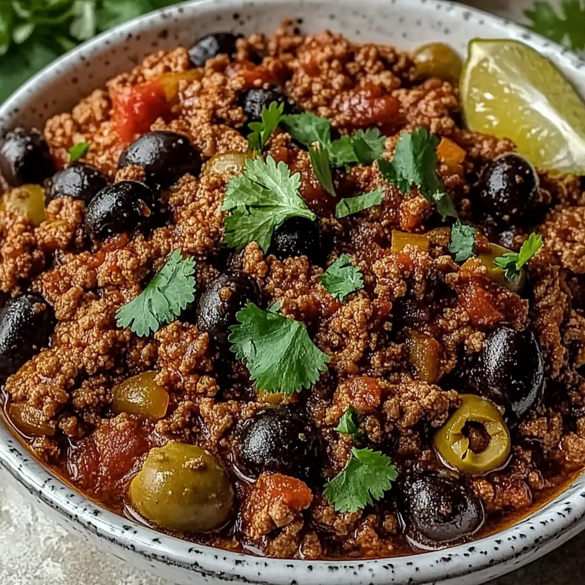 Cuban Beef Picadillo is a comforting family recipe featuring savory ground beef, sweet raisins, and briny olives, perfect for quick weeknight dinners.